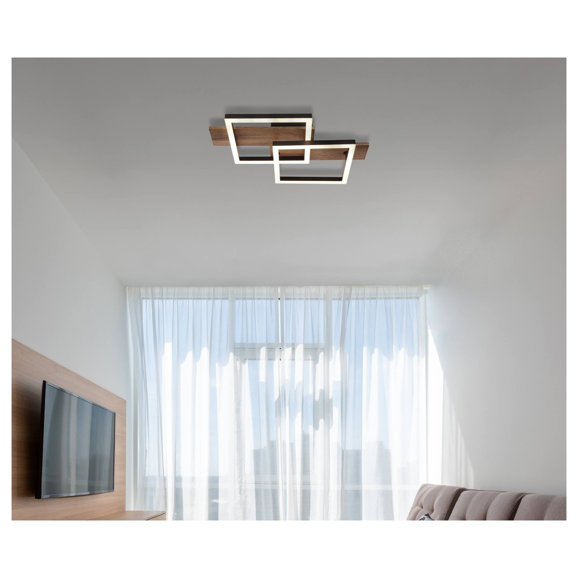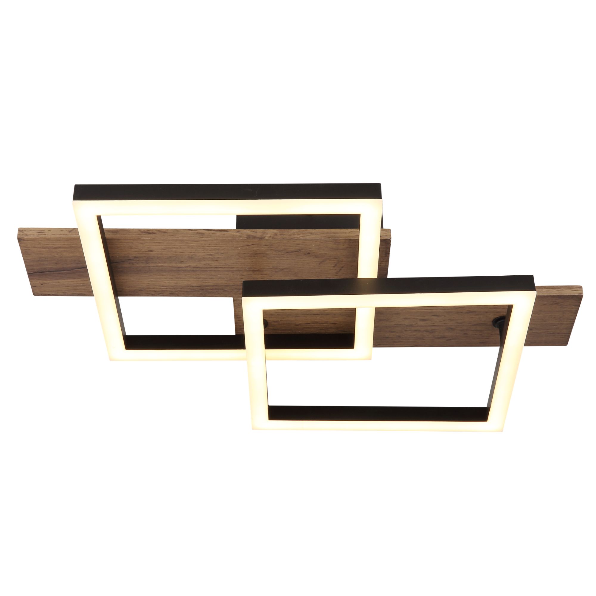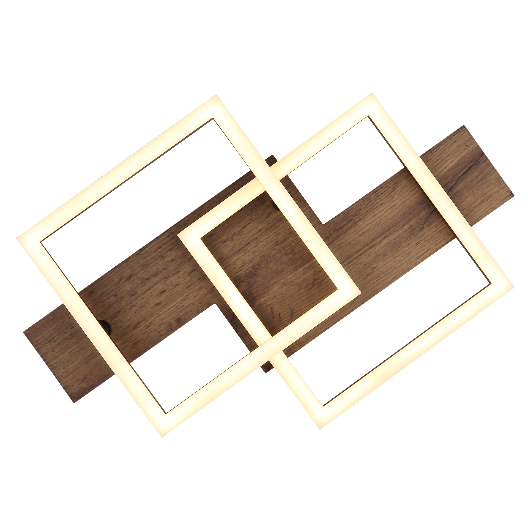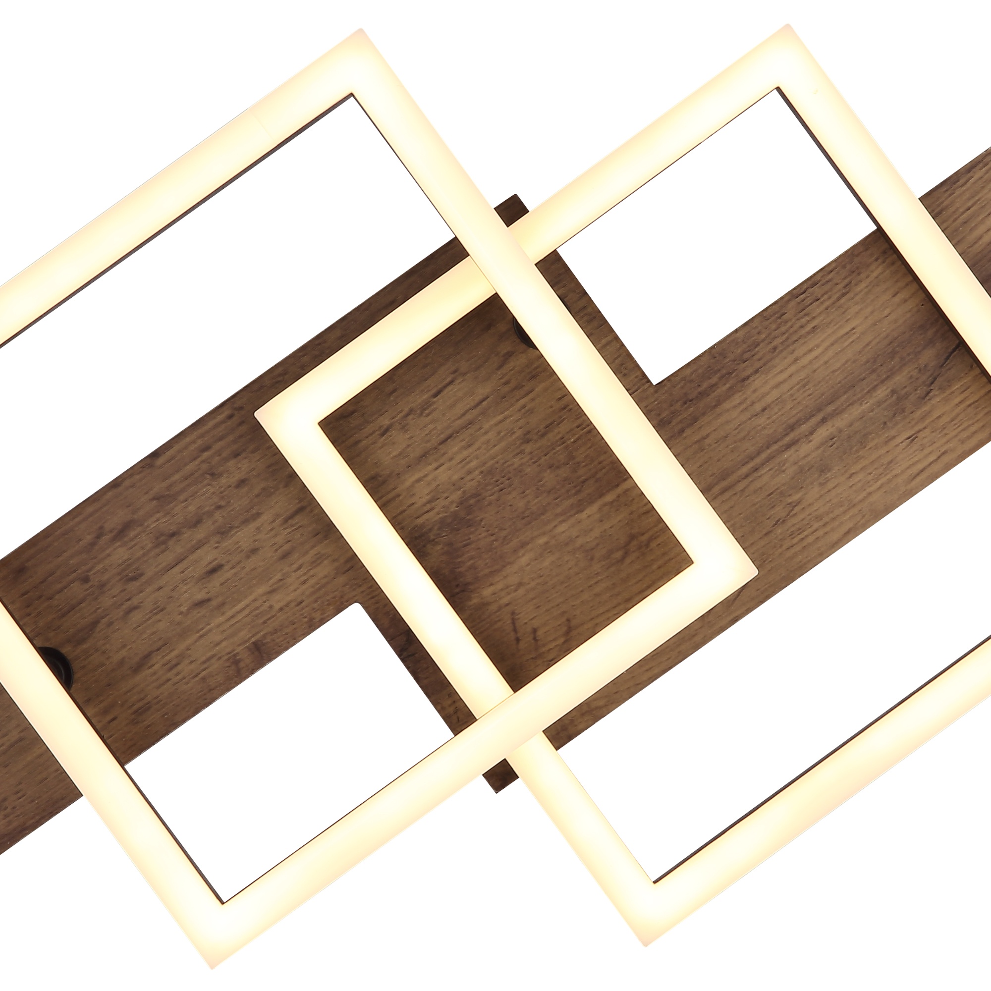 Zaujme na prvý pohľad svojím pútavým dizajnom. Na čiernej kovovej konštrukcii je umiestnená drevo-vláknitá MDF doska s dekorom tmavého dreva. Tá dodá miestnosti nádych prírody. Doska je doplnená o 2 štvorce s integrovaným LED svetelným zdrojom s maximálnym príkonom 16W. Má svetelný tok 900 lúmenov s teplotou svetla 3000 kelvinov, ktorá sa označuje ako teplá biela. Teplá biela vytvorí v miestnosti útulnú atmosféru a nebude dráždiť vaše oči. Je teda ideálne do obývacej izby, spálne či jedálne.