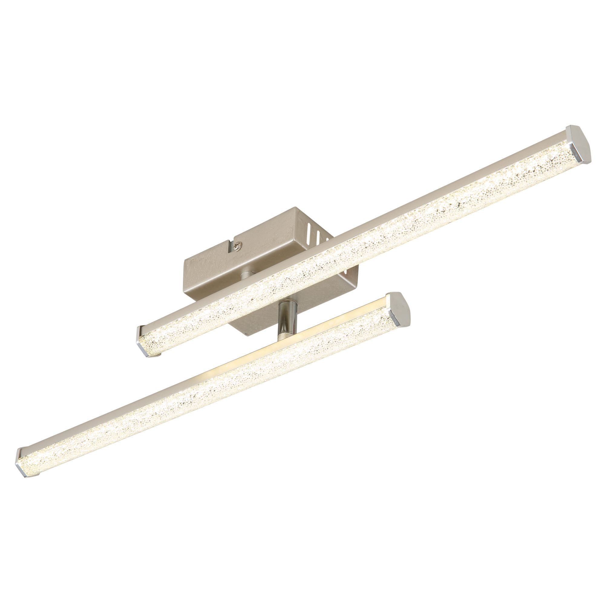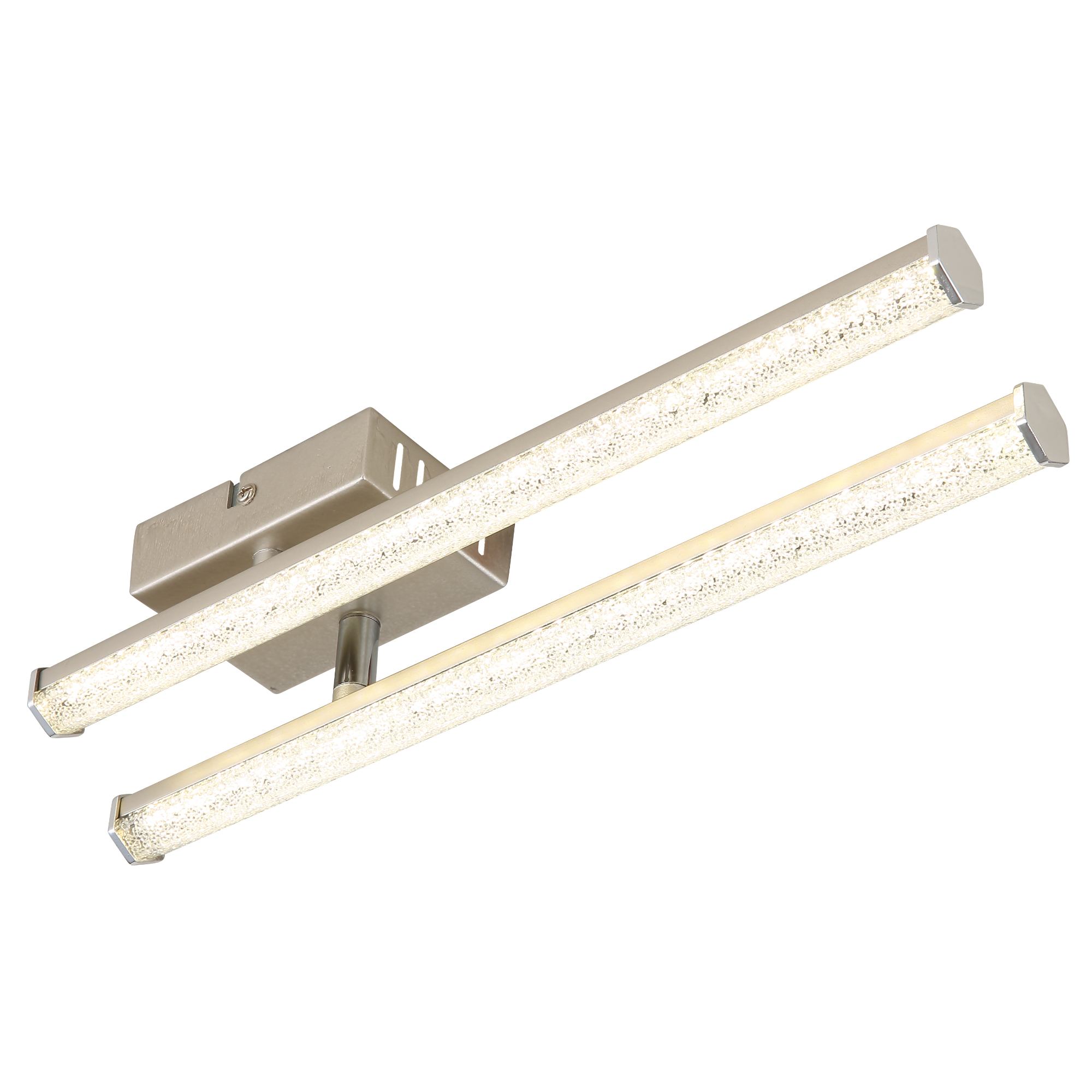 Zaujme svojimi 2 tienidlami, za ktorými sa nachádzajú plastové kryštáliky, vytvárajúce krásny svetelný efekt pripomínajúci kvapky vody. Spodné tienidlo možno navyše pomocou otočného úchytu nastaviť podľa vašich preferencií. Jeho elegantný vzhľad dotvárajú štýlové prvky v farbe chrómu.