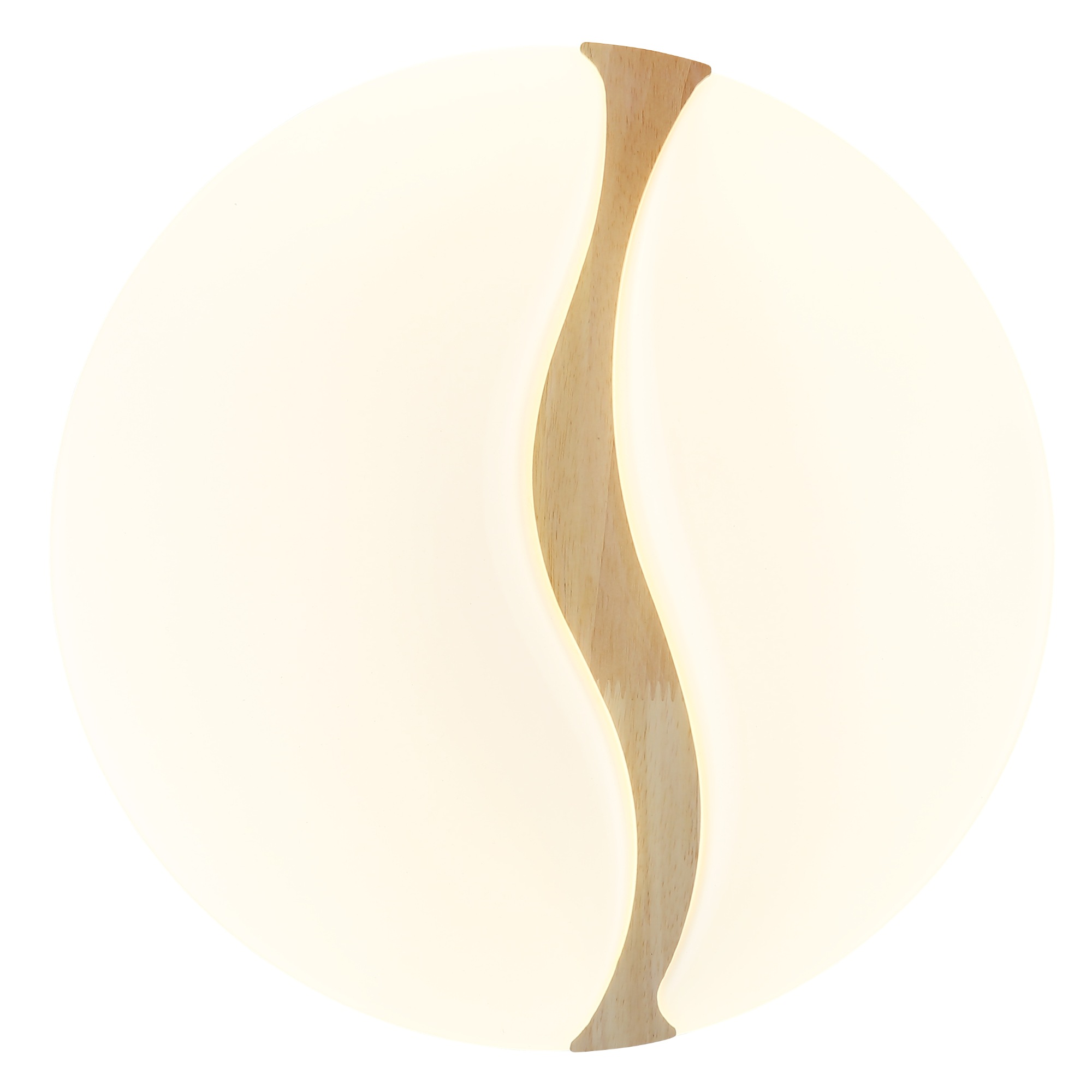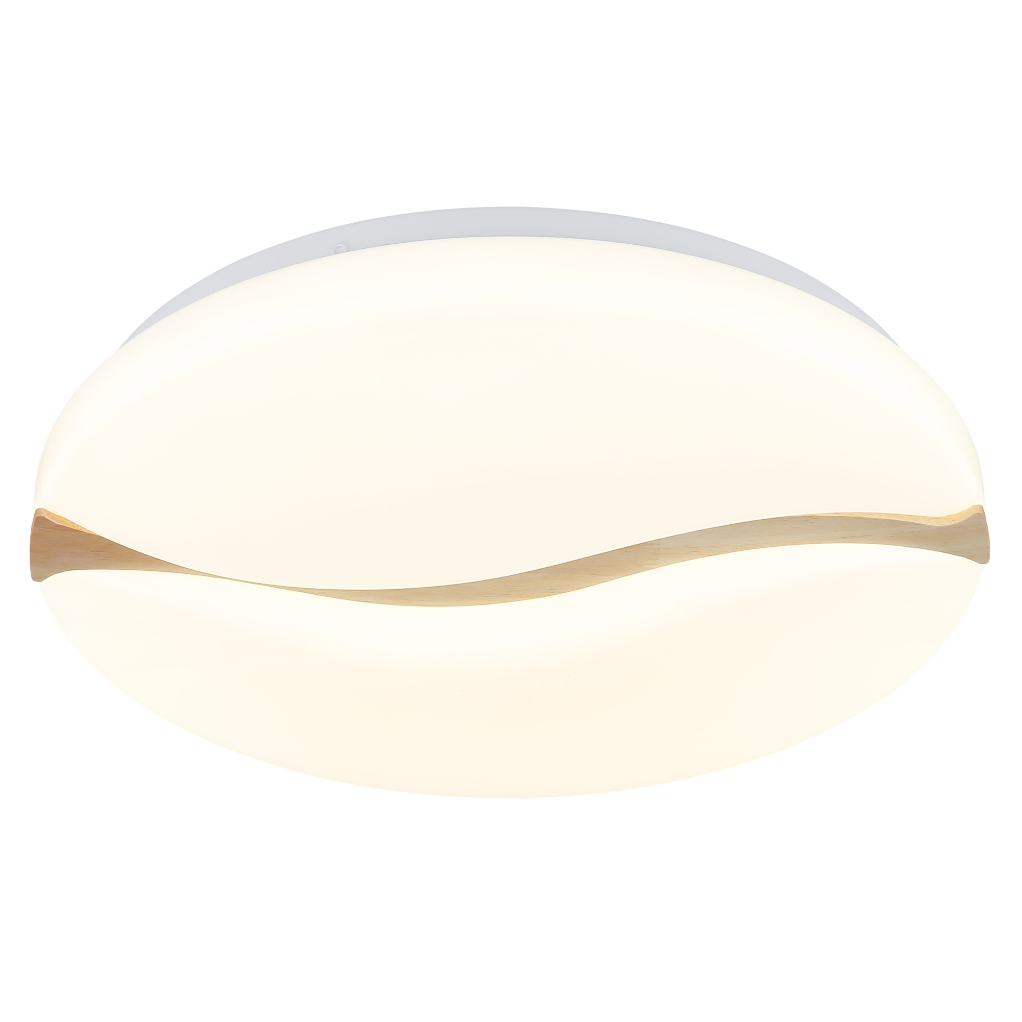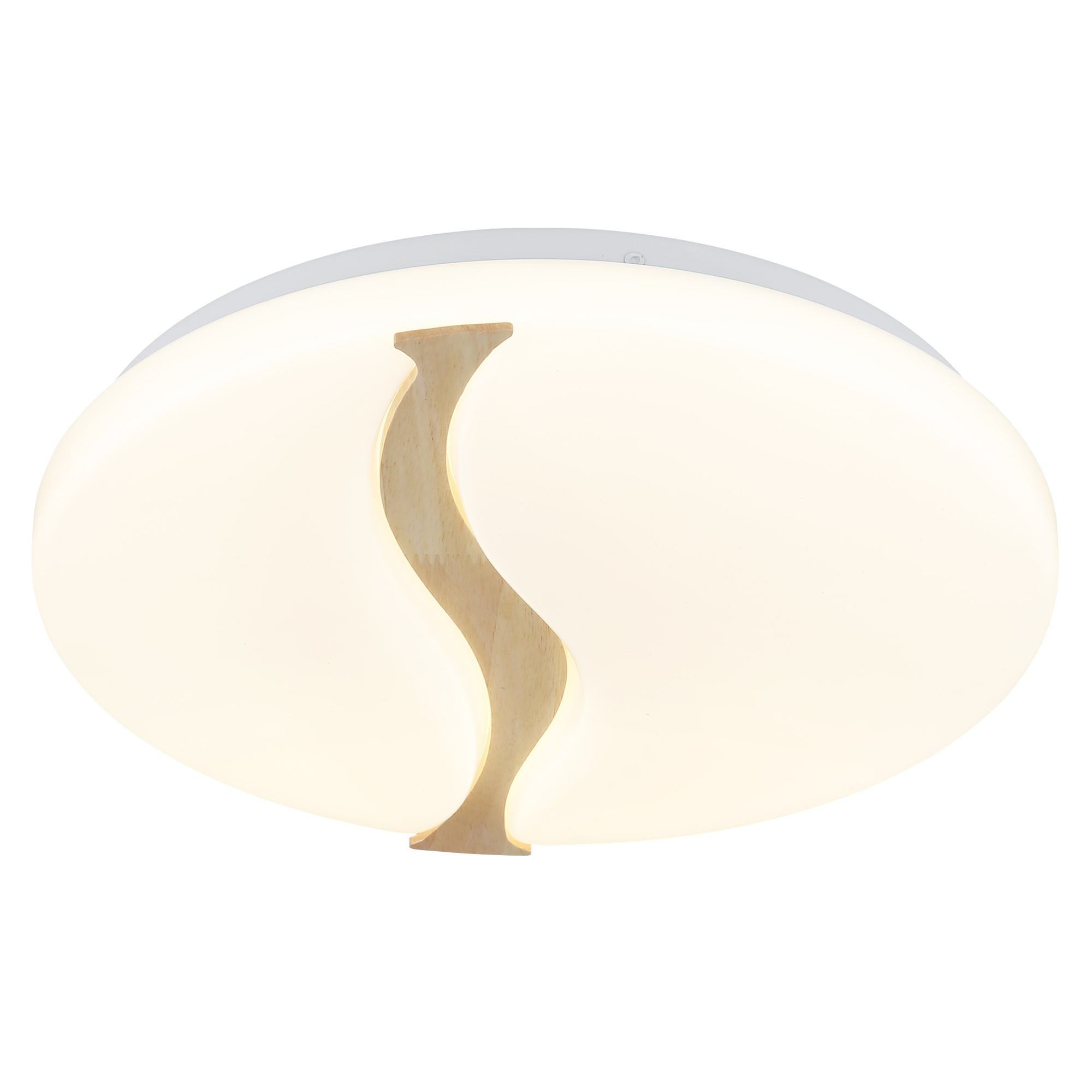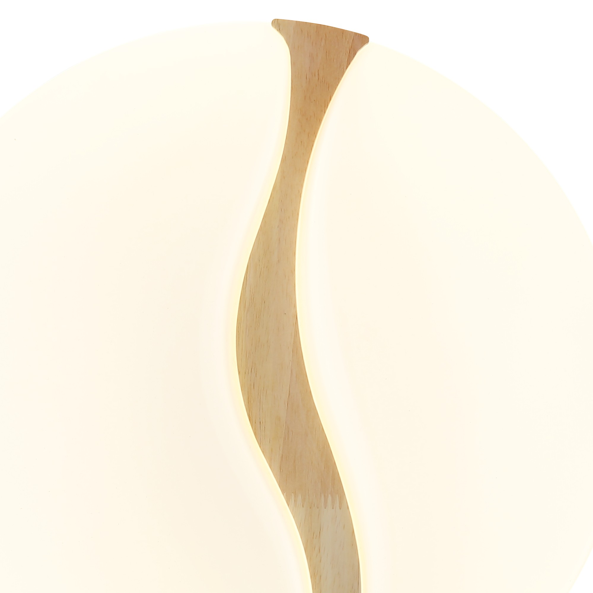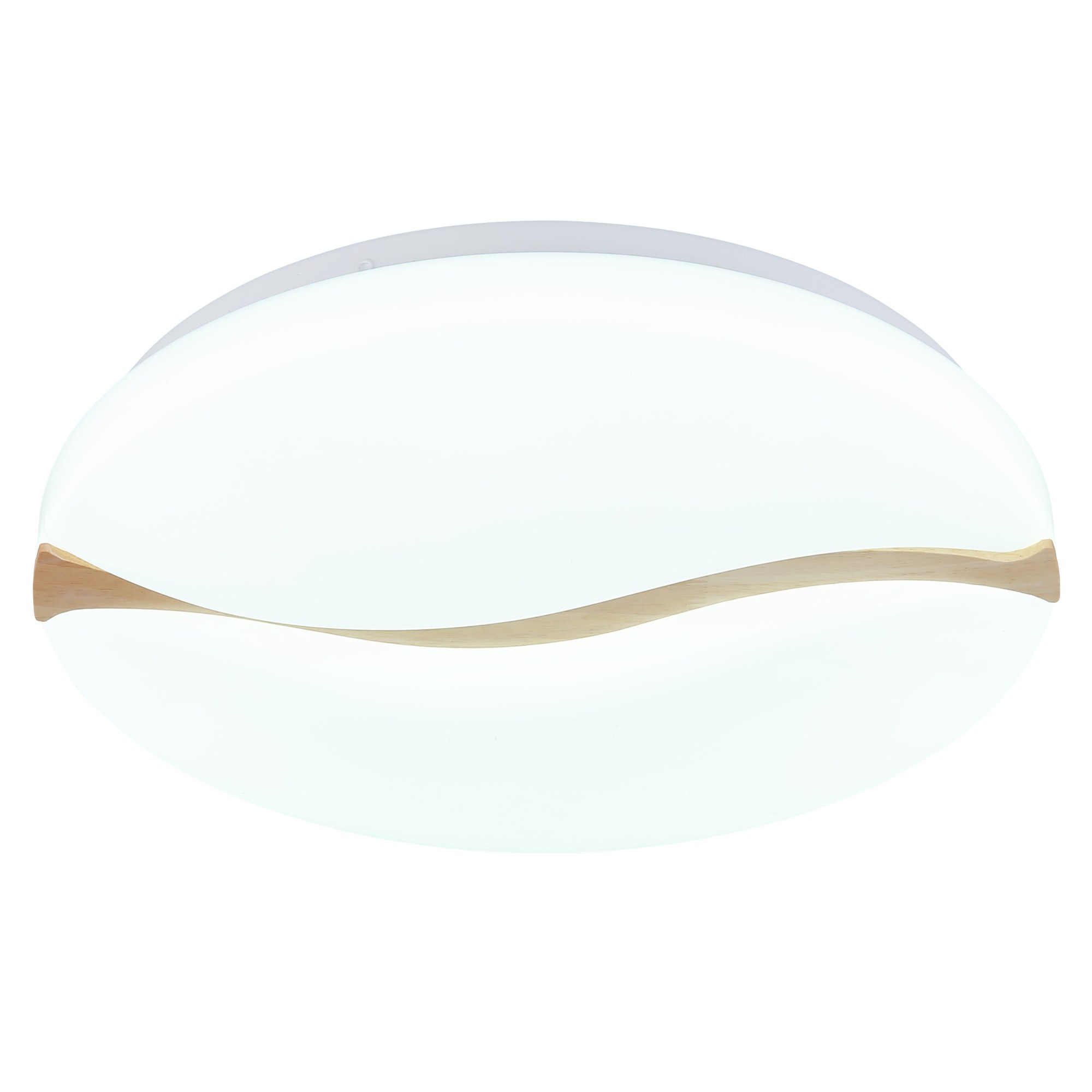Má kovovú konštrukciu, na ktorej je umiestnené biele plastové tienidlo, ktoré zabezpečuje optimálne rozptýlenie svetla v miestnosti. To je doplnené dreveným dekorom vo vlnitom tvare, ktorý dodáva svietidlu prírodný nádych a zároveň formuje jeho elegantný dizajn.