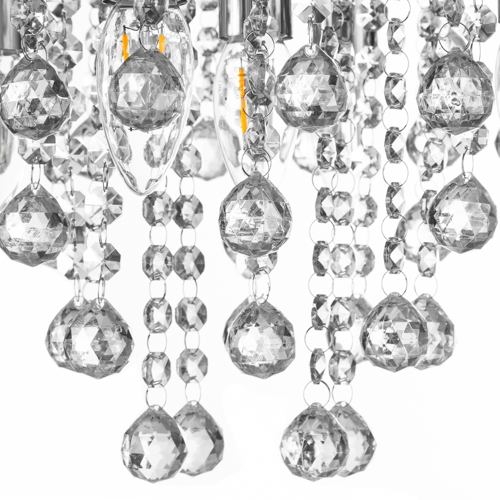 Má kovovú konštrukciu s priemerom 46 cm v chrómovej farbe v jednoduchom modernom prevedení. Svietidlo na prvý pohľad zaujme svojím tienidlom, na ktorom sú zavesené plastové kryštály. Tie pri rozsvietení vytvárajú krásny svetelný efekt vďaka odrazu svetla. Je ideálnou ozdobou do spálne alebo nad konferenčný či jedálenský stôl.