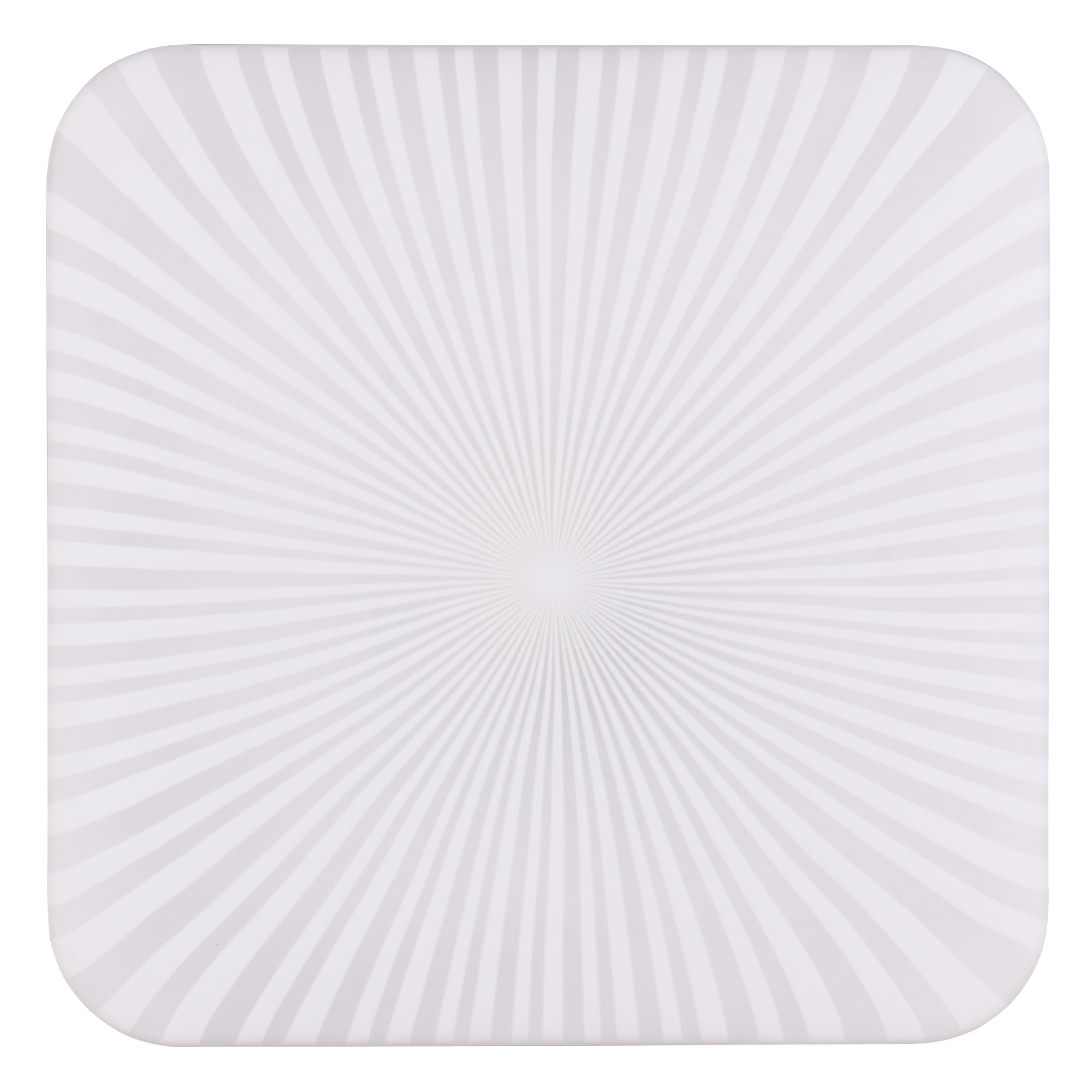 Stredom pozornosti je tu štvorcové tienidlo so šírkou 27 cm. Je vyrobené z plastu v matnej bielej farbe a zdobené jemnými líniami. Vďaka jednoduchému, no štýlovému vzhľadu sa bude ľahko kombinovať s ďalšími doplnkami v interiéri.