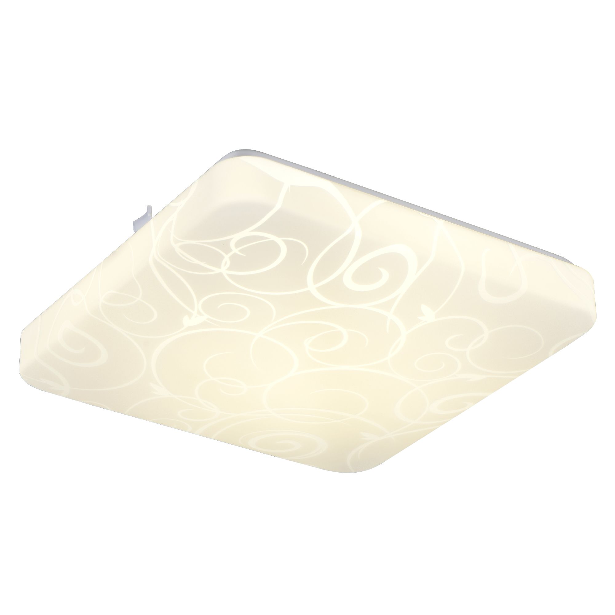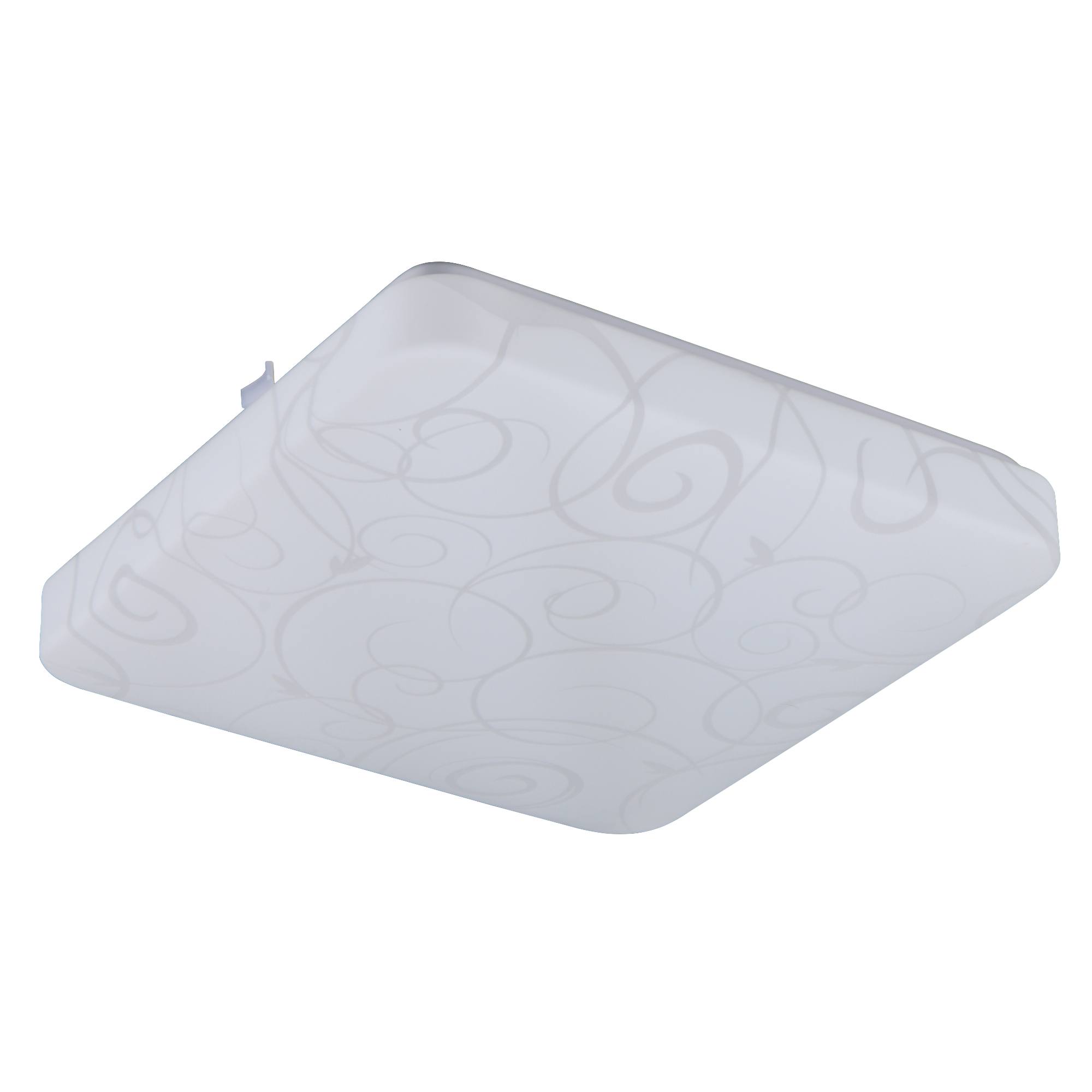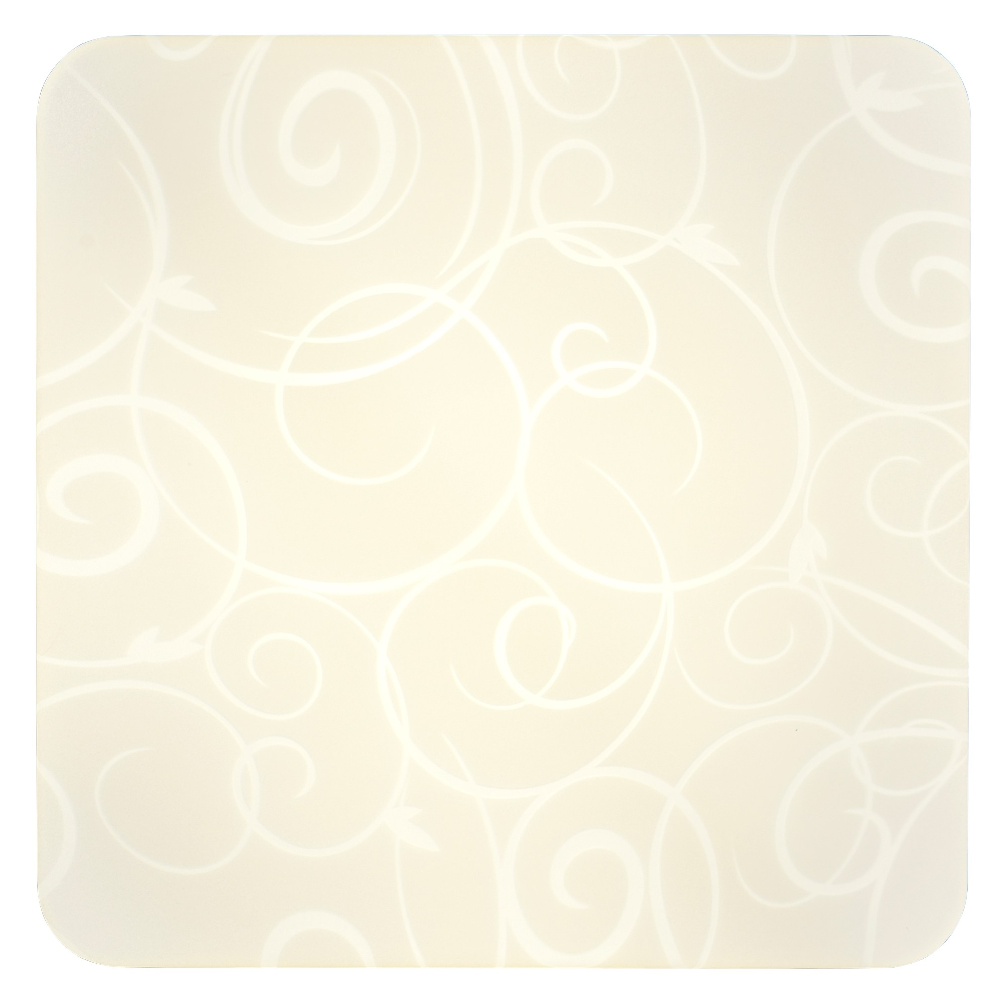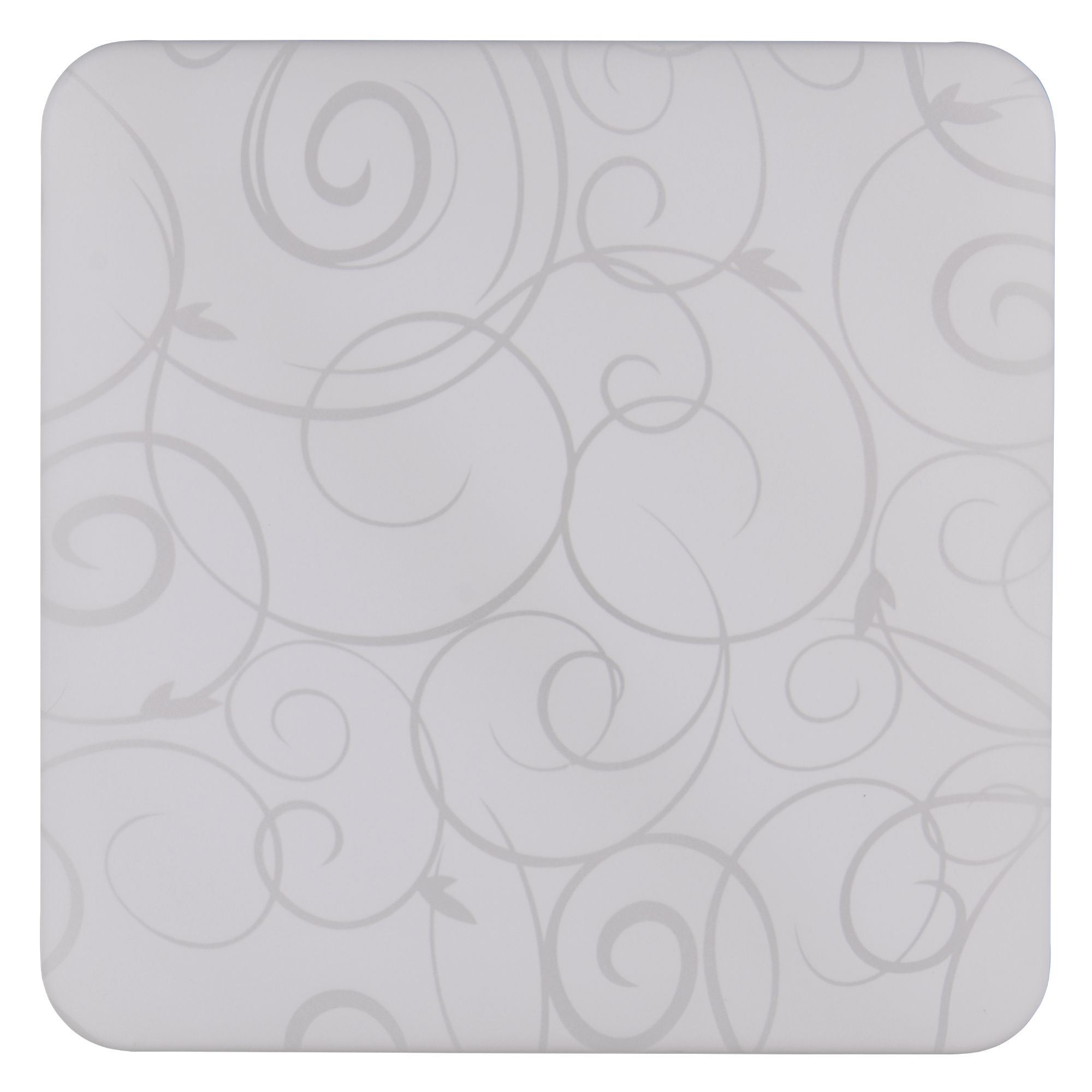 Stredom pozornosti je tu štvorcové tienidlo so šírkou 27 cm. Je vyrobené z plastu v matnej bielej farbe a zdobené elegantnými špirálami. Vďaka jednoduchému, no štýlovému vzhľadu sa bude ľahko kombinovať s ďalšími doplnkami v interiéri.