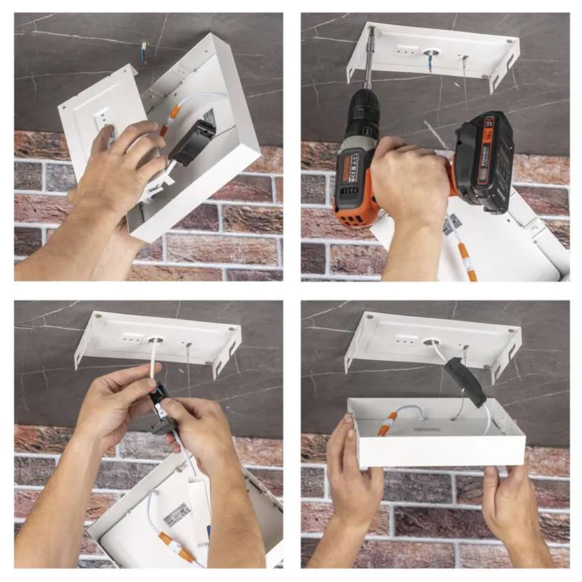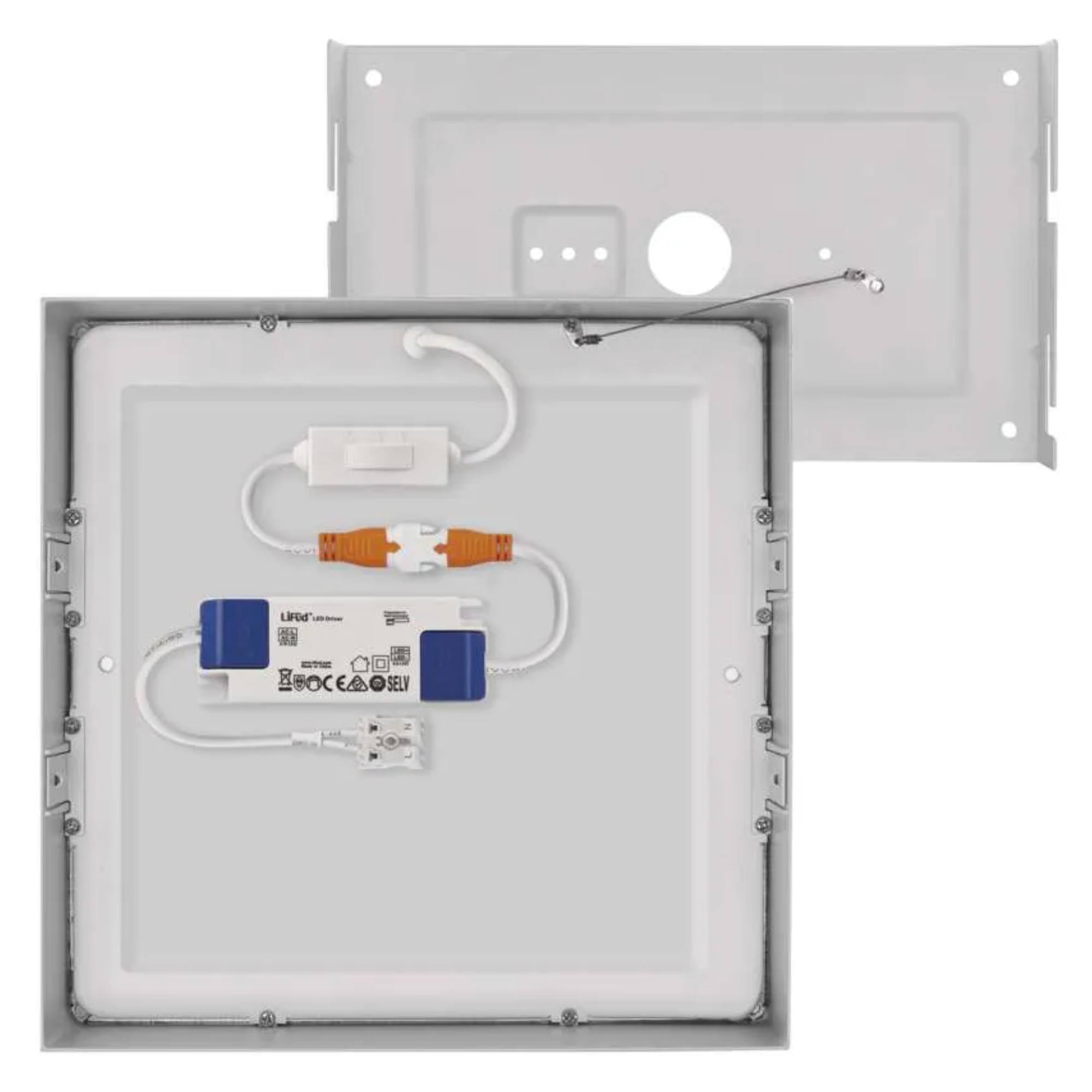 Má bielu kovovú konštrukciu v štvorcovom tvare so šírkou 22,5 cm. Za plastovým tienidlom sa nachádza integrovaný LED svetelný zdroj s maximálnym príkonom 21 W. Zdroj má svetelný tok 1900 lúmenov s voliteľnou teplotou svetla 3000, 3500 a 4000 Kelvinov, ktorú zvolíte pri montáži svietidla. Výhodnou vlastnosťou zdroja je dlhá životnosť, ktorá poskytuje až 30 000 hodín osvetlenia.