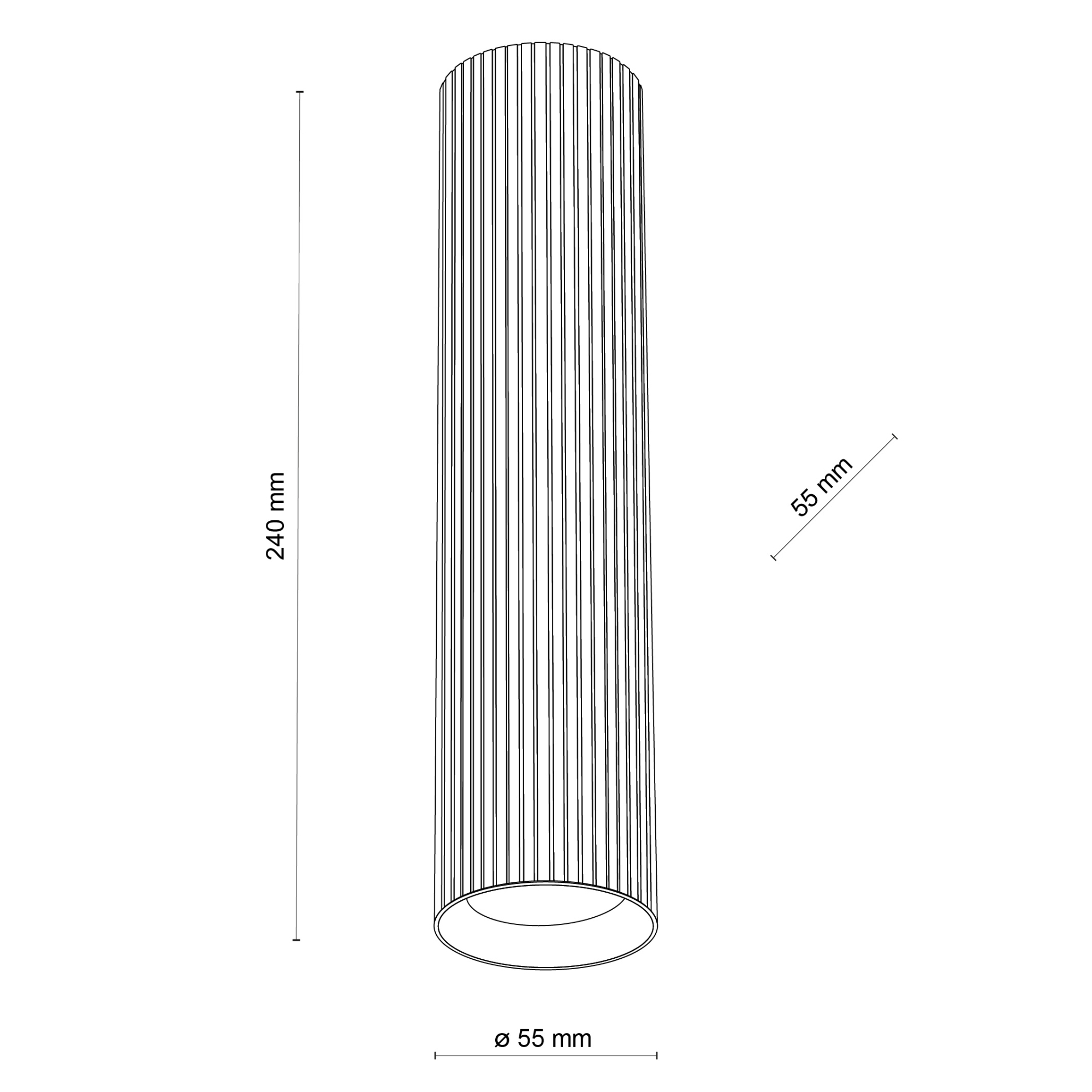 Je vyrobené z kovu v tvare valca s výškou 24 cm. Táto jednoduchá konštrukcia je oživená jemnými prúžkami, ktoré dodávajú svietidlu štipku elegancie. Nenarúša dizajn miestnosti, ale prirodzene splynie s prostredím a dokonale doladí minimalistický aj moderný interiér.