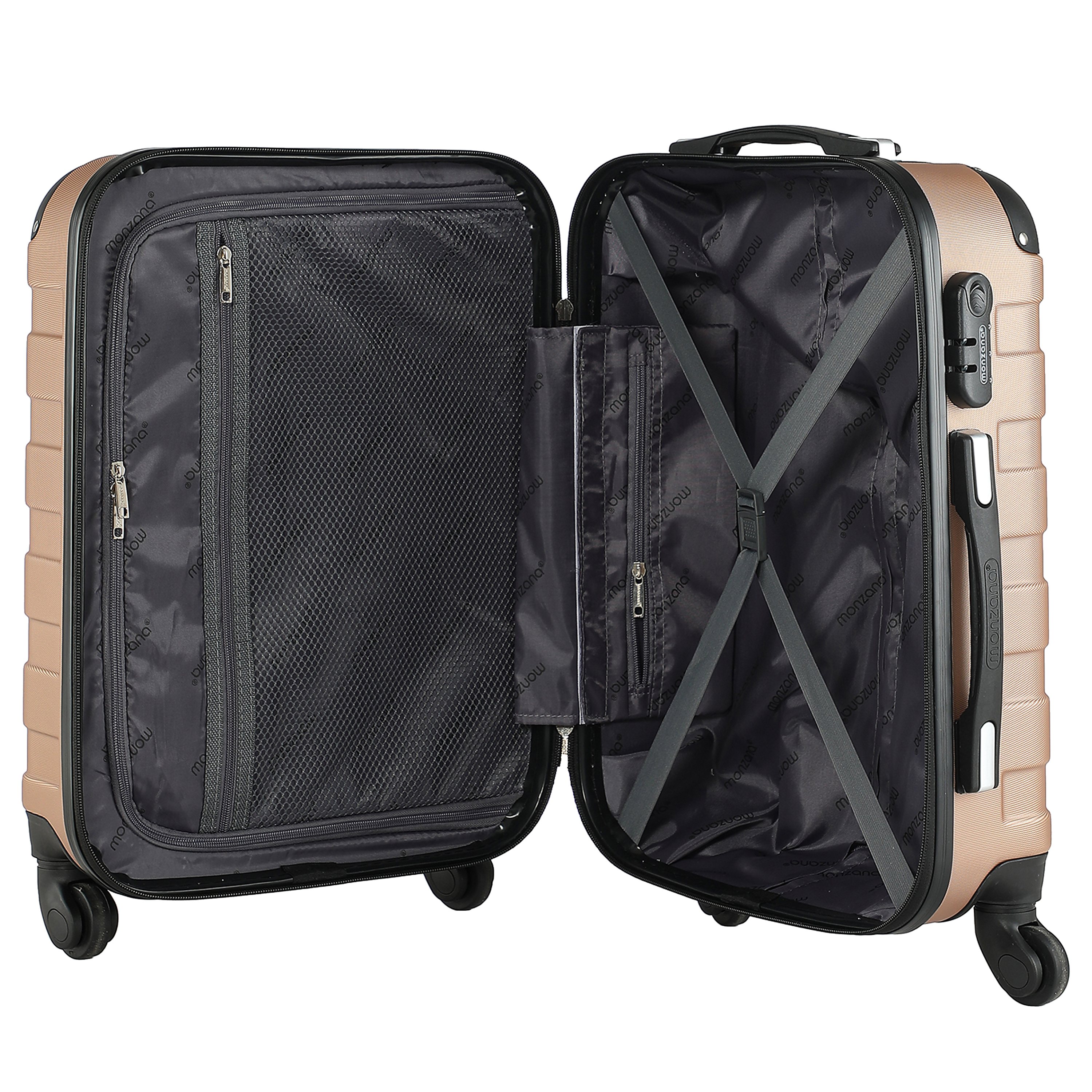S tromi rôznymi veľkosťami (M, L, XL) a kozmetickým kufrom budete perfektne vybavení na akúkoľvek cestu. Vystužená tvrdá škrupina z ABS je odolná a pre dodatočnú ochranu proti nárazom sú chránené aj rohy. Obsahujú tiché a plynulo sa otáčajúce kolieska o 360° pre jemné a jednoduché premiestňovanie. Vybavené sú oceľovou teleskopickou rukoväťou, ktorá uľahčuje manipuláciu kufrov. Vnútorné vrecká vyrobené z vysoko kvalitného polyesteru sú ideálne na uloženie menších predmetov. Na kufroch nájdete aj štandardný zámok pre ešte väčšiu ochranu.