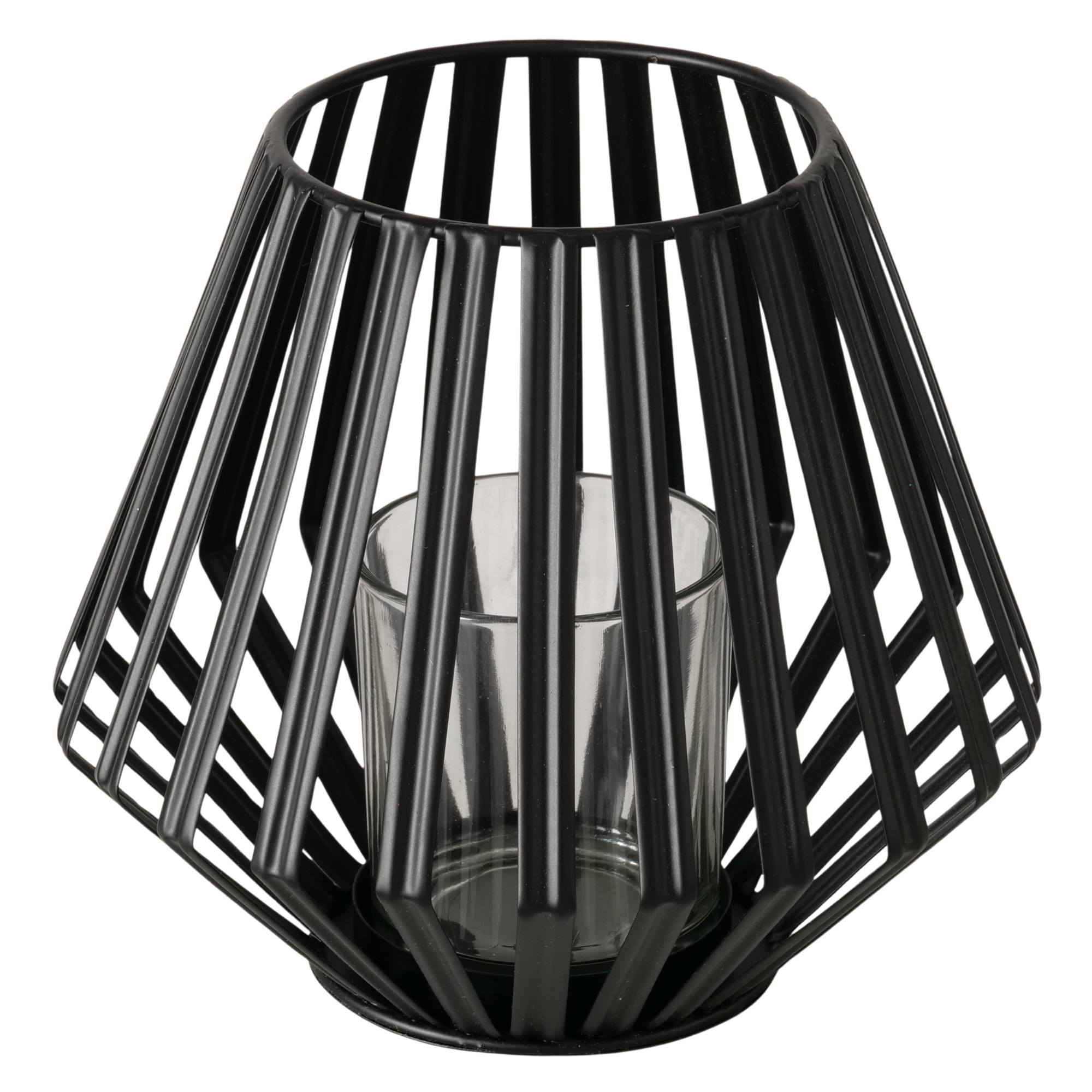 Zaujme svojou kovovou konštrukciou v čiernej farbe, ktorá jemne rozptýli svetlo po miestnosti a dodá čarovný efekt k romantickej večeri alebo k čítaniu obľúbenej knihy počas chladných zimných večerov. Je vhodný na čajovú sviečku. Bude skvelým doplnkom do industriálneho aj moderného interiéru.