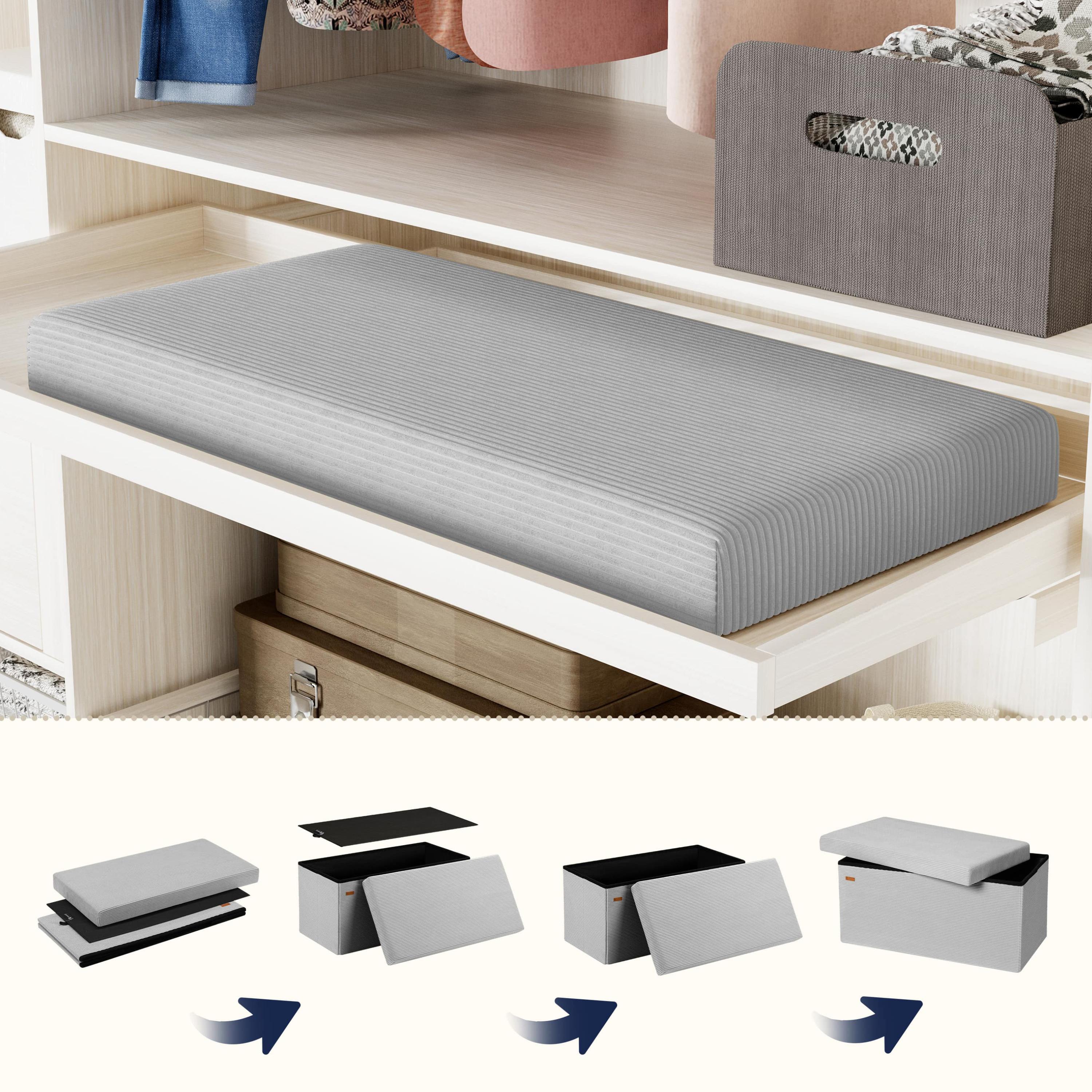 Hrubo polstrované veko s jadrom z polyuretánovej peny poskytuje pohodlné sedenie a zároveň ukrýva praktický úložný priestor s objemom 100 litrov, ktorý je ideálny na uloženie diek, vankúšov, hračiek alebo ďalších drobností. Taburet je navyše možné veľmi jednoducho rozložiť a uskladniť, ak ho práve nepotrebujete. Vďaka tomu je praktickým riešením aj pre menšie priestory.