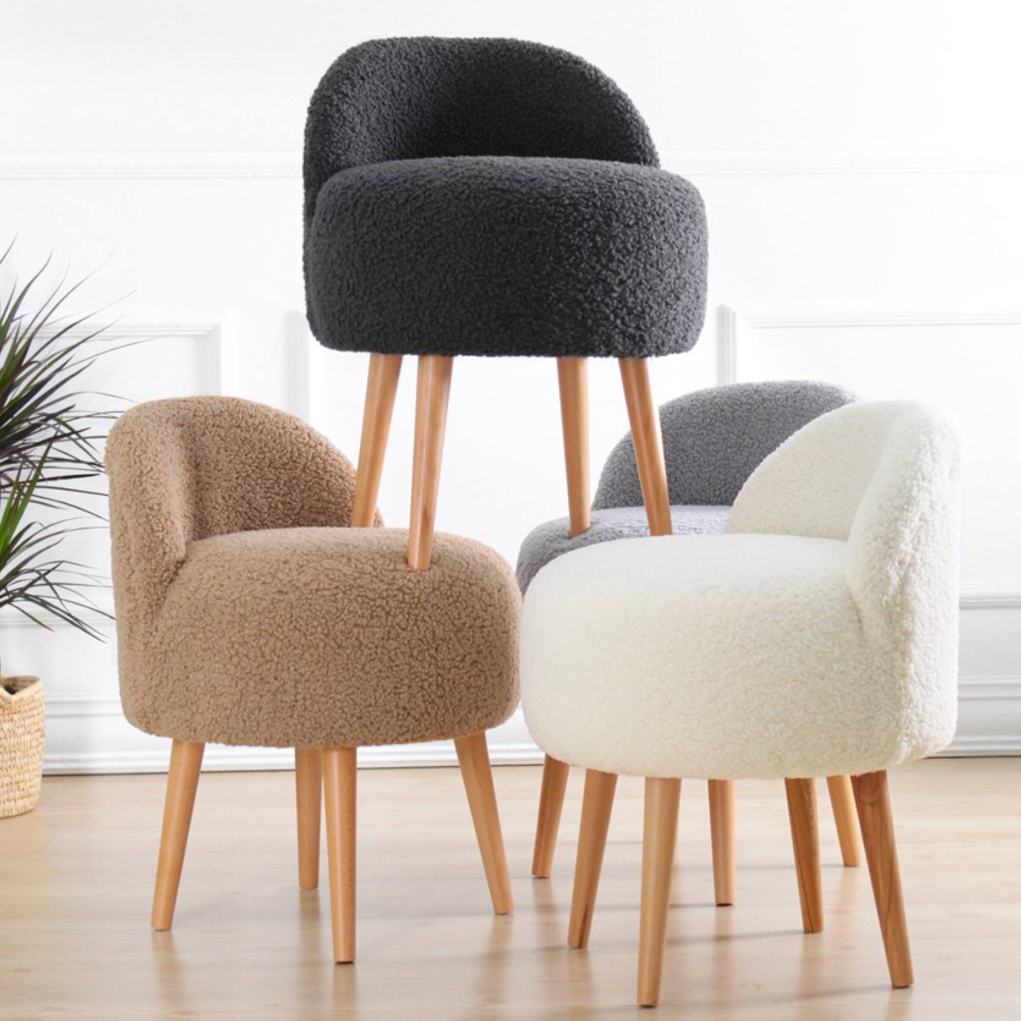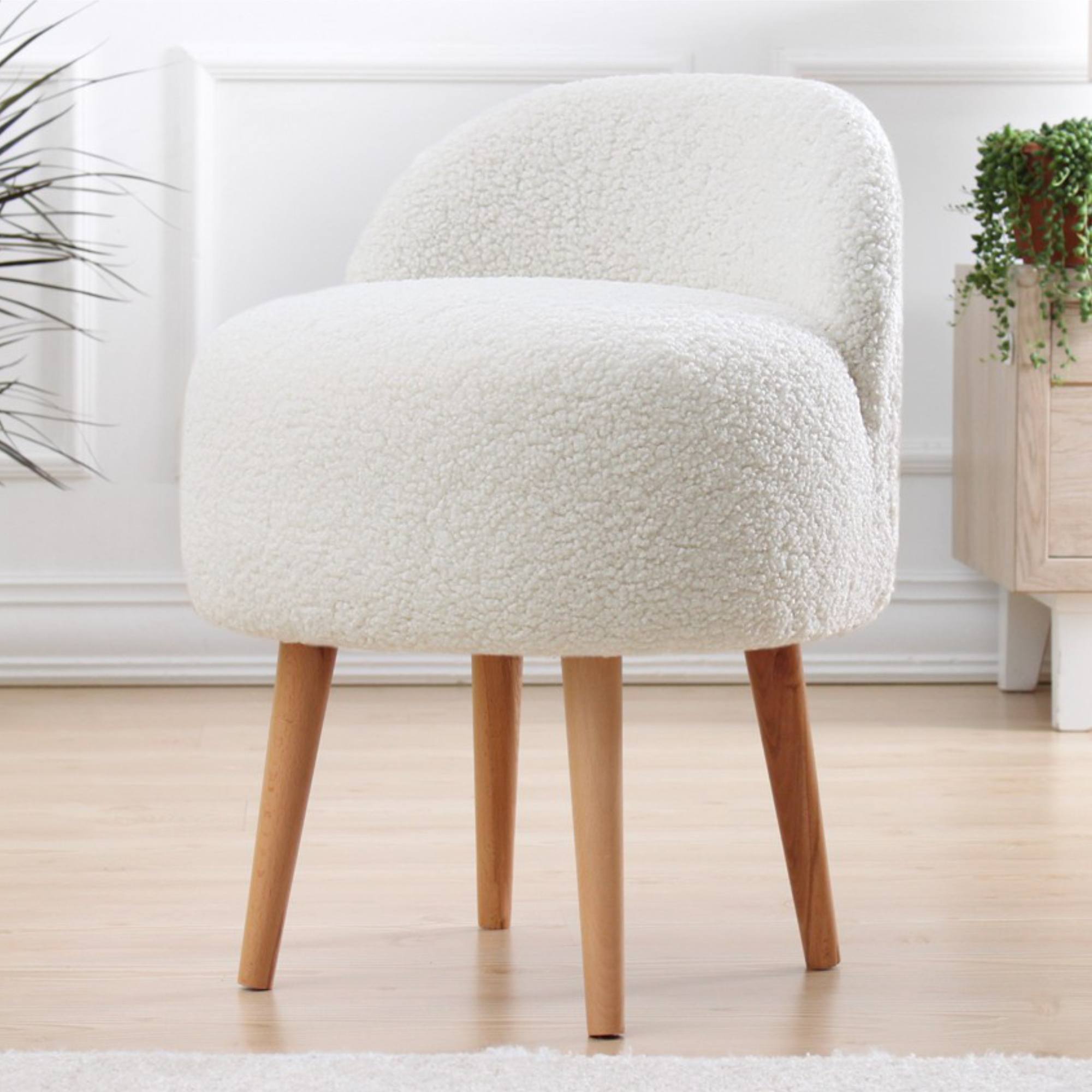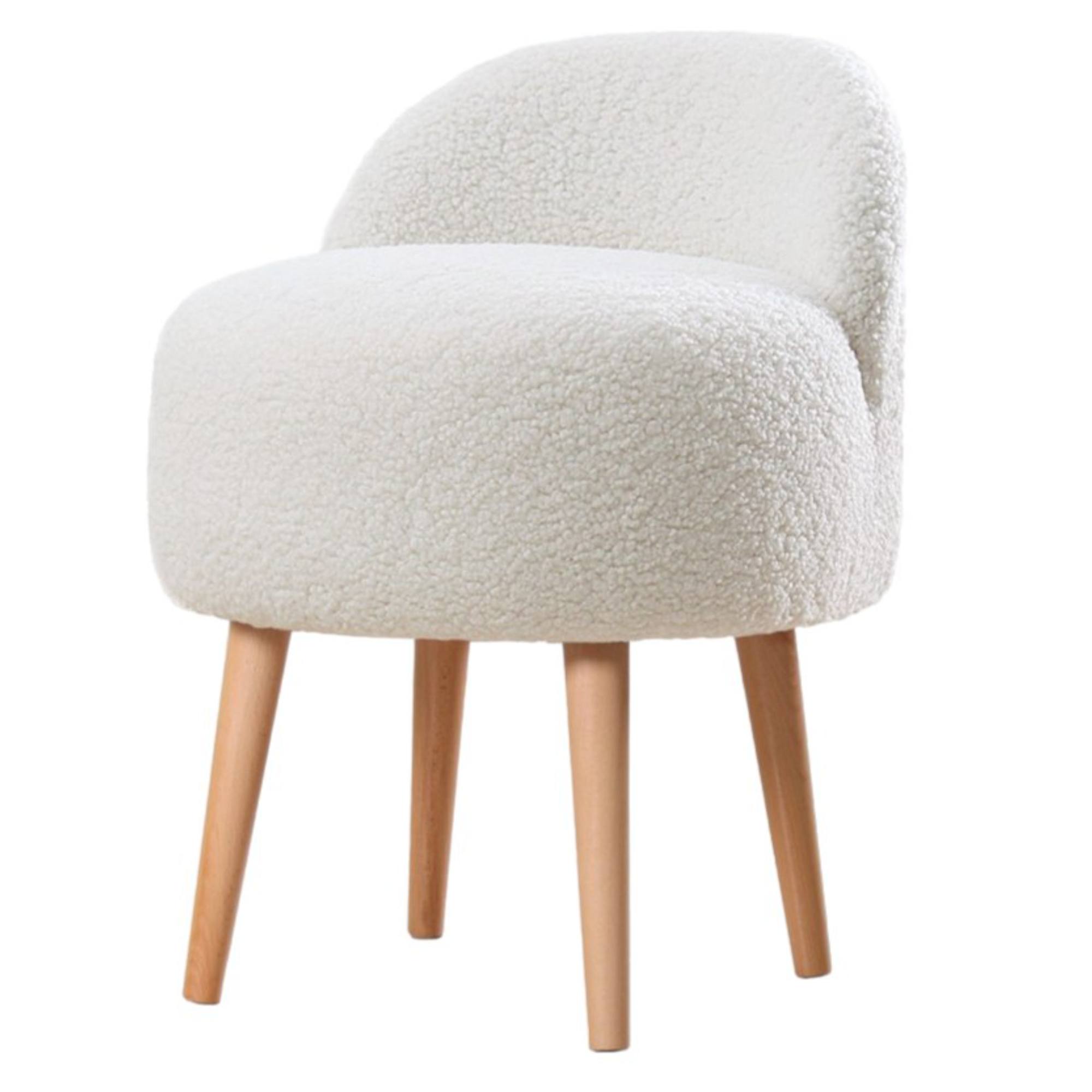 Čalúnenie je zo 100% umelej kožušiny, ktorá je príjemná na dotyk. Nohy sú vyrobené z masívneho dreva a dodávajú taburetu na stabilite.