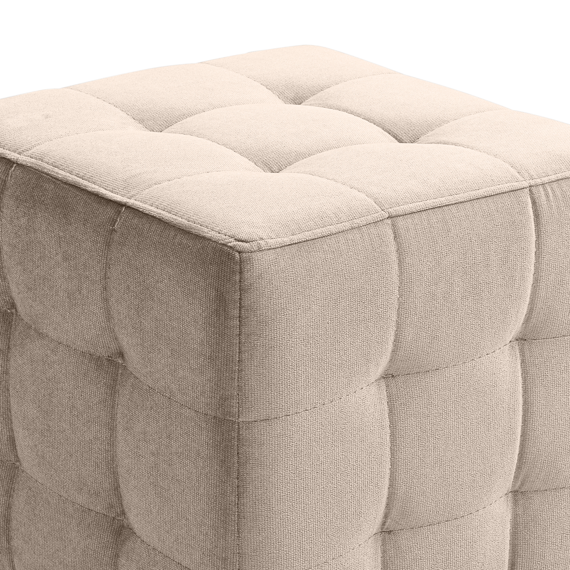 Je potiahnutý príjemnou látkou so zamatovým vzhľadom zo 100 % polyesteru. Vďaka krátkemu hladkému vlasu má jemný trblietavý odlesk. Taburet zaujme svojím elegantným prešívaním, ktoré v kombinácii s látkou vytvára luxusný nádych taburetu. Pohodlie zabezpečuje mäkká penová výplň, ktorá vám poskytne maximálny komfort. Je doplnený malými nožičkami.