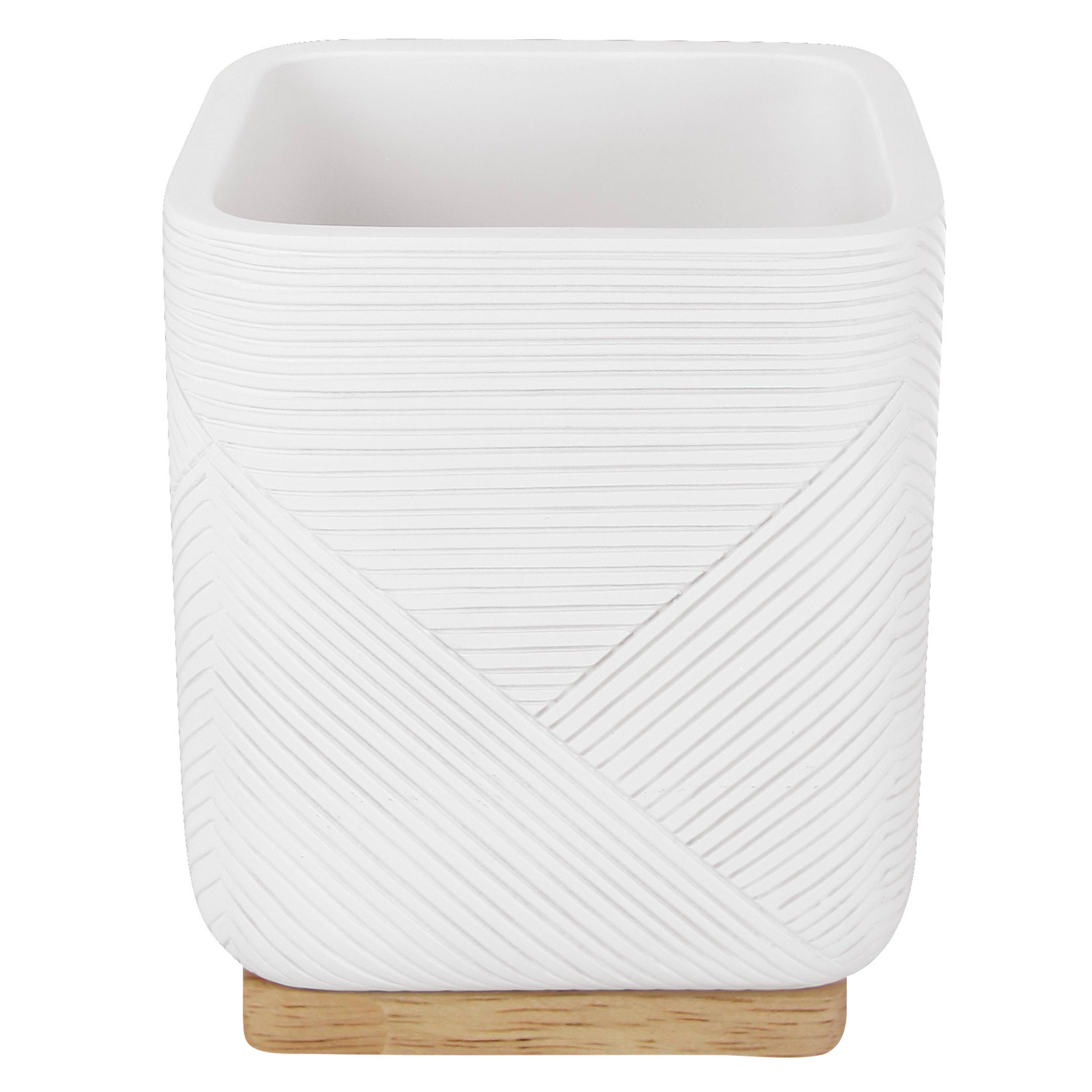 Je vyrobený z polyresinu, ktorý lepšie odolá mechanickému poškodeniu a v kombinácii s bambusom, sú ideálnym materiálom do vlhkého prostredia kúpeľne. Nádoba disponuje jemnou textúrou, ktorú dopĺňa prírodná kresba bambusu na podstavci, dotvárajúca jednoduchý dizajn téglika.