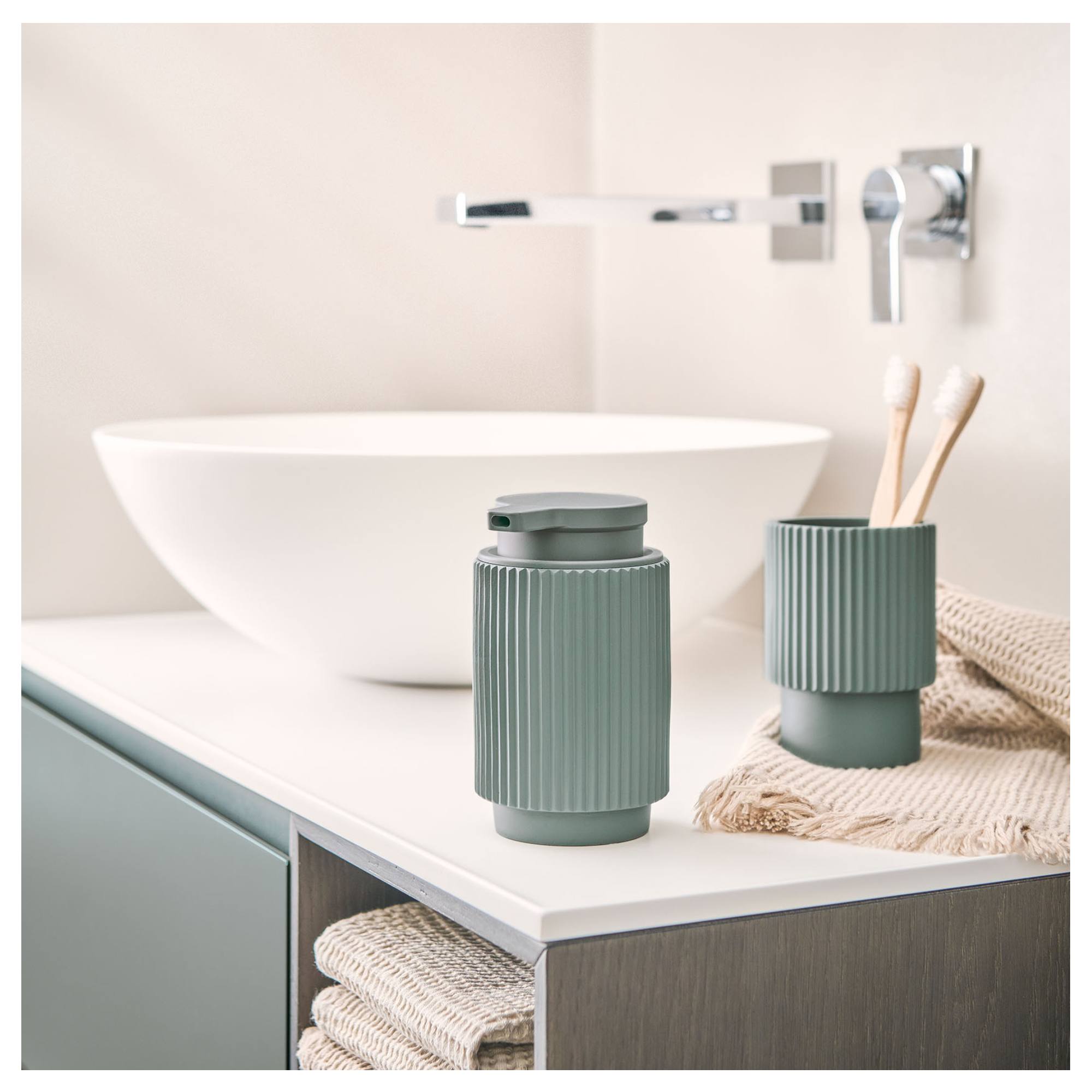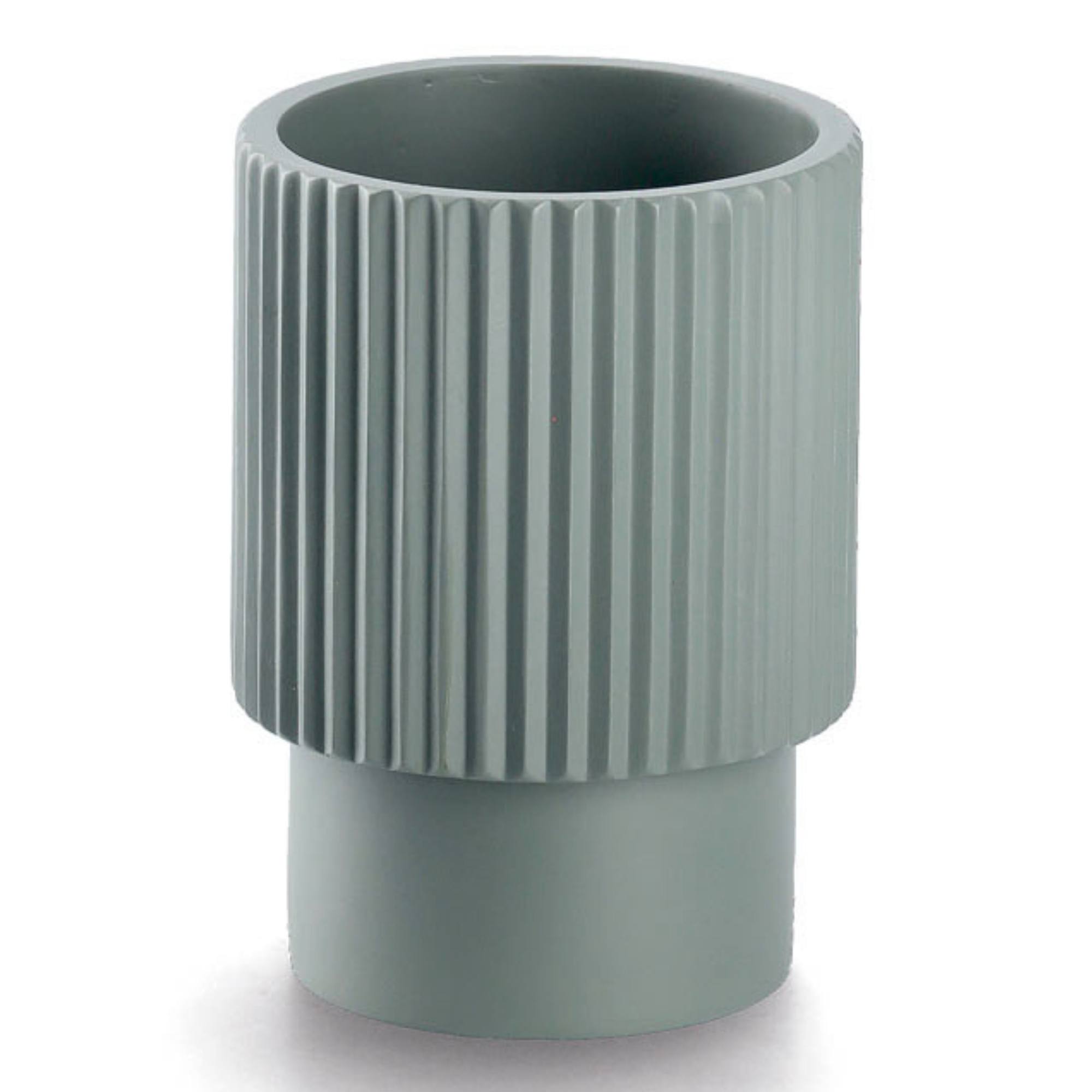 Je vyrobený z polyresinu v zelenej farbe, ktorý lepšie odolá mechanickému poškodeniu a je ideálnym materiálom do vlhkého prostredia kúpeľne. Vďaka jeho veľkosti poskytuje dostatok miesta na štandardné kefky a zubnú pastu.