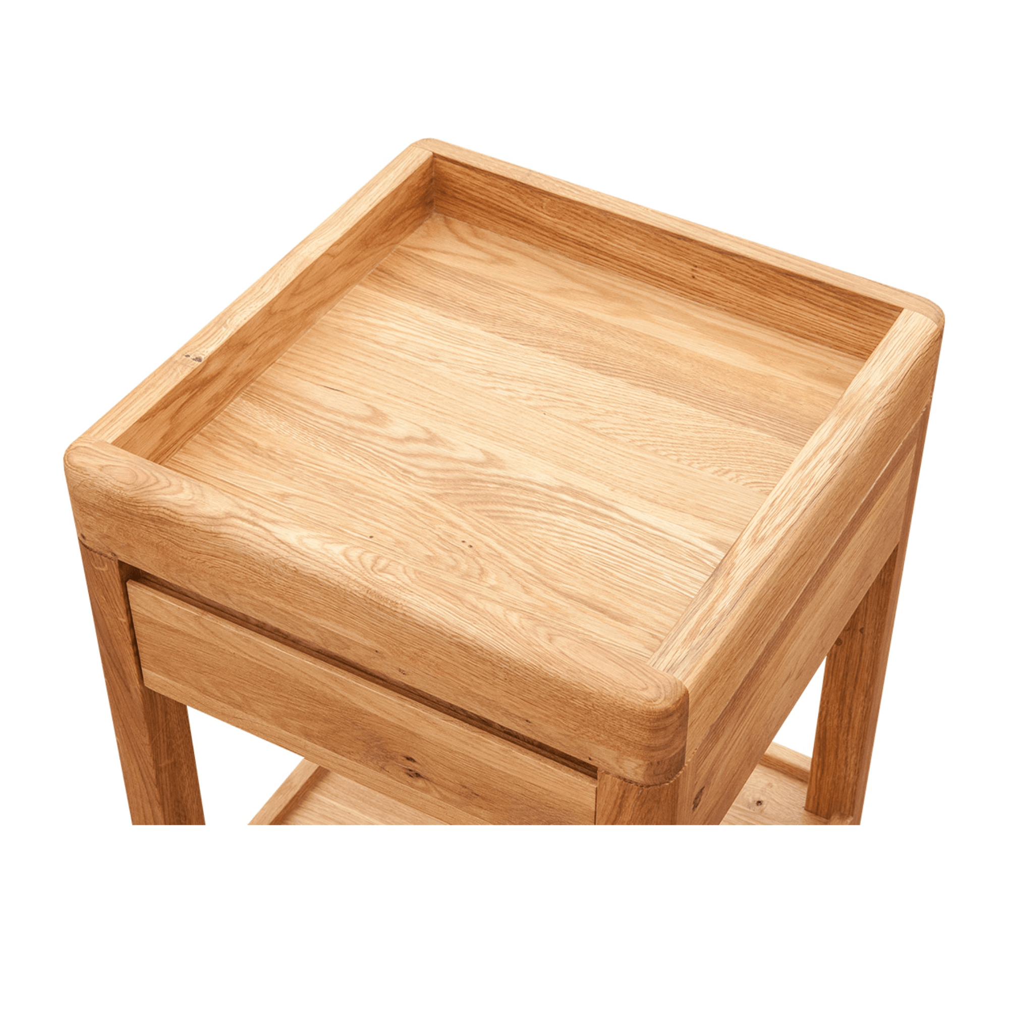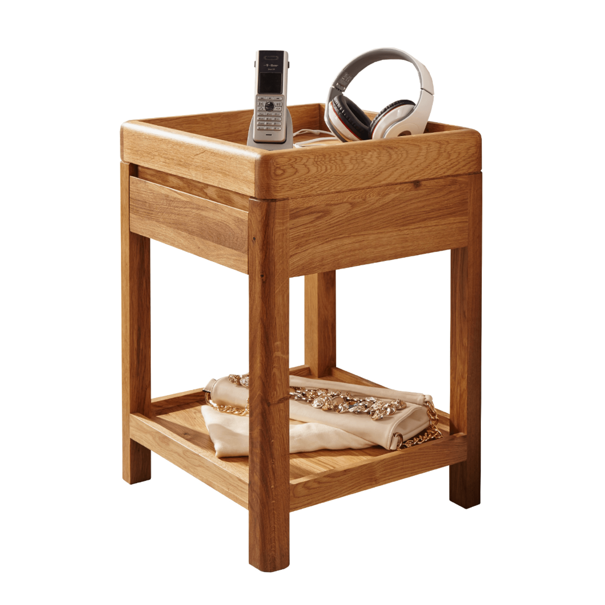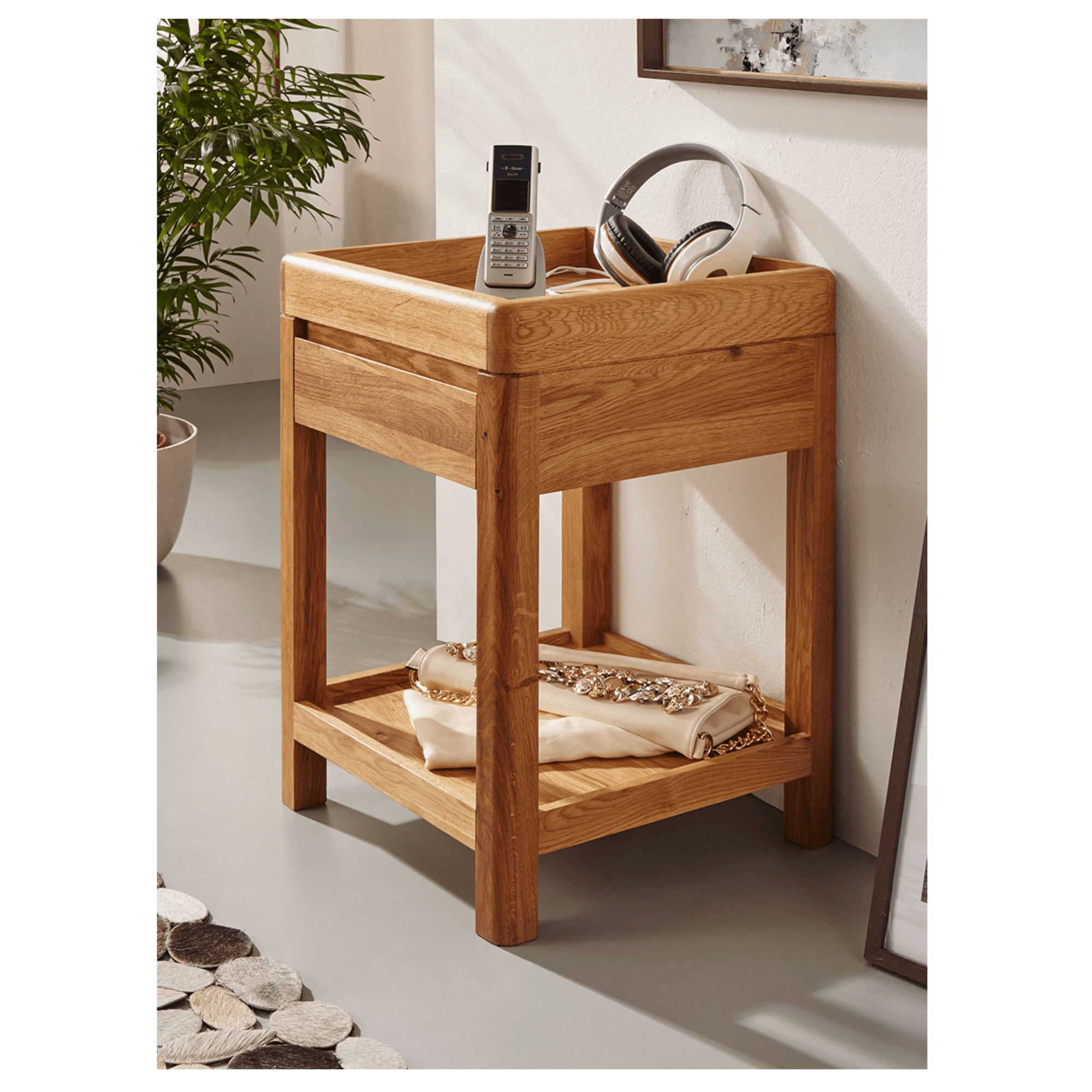 Vyrobený je z masívneho dubového dreva s výraznou kresbou, ktoré do interiéru vnesie kus prírody. Dostatočný odkladací priestor zaisťuje okrem hlavnej dosky tiež zásuvka a spodná polica. Stolík GIA vďaka svojej univerzálnosti nájde uplatnenie naprieč celou domácnosťou.