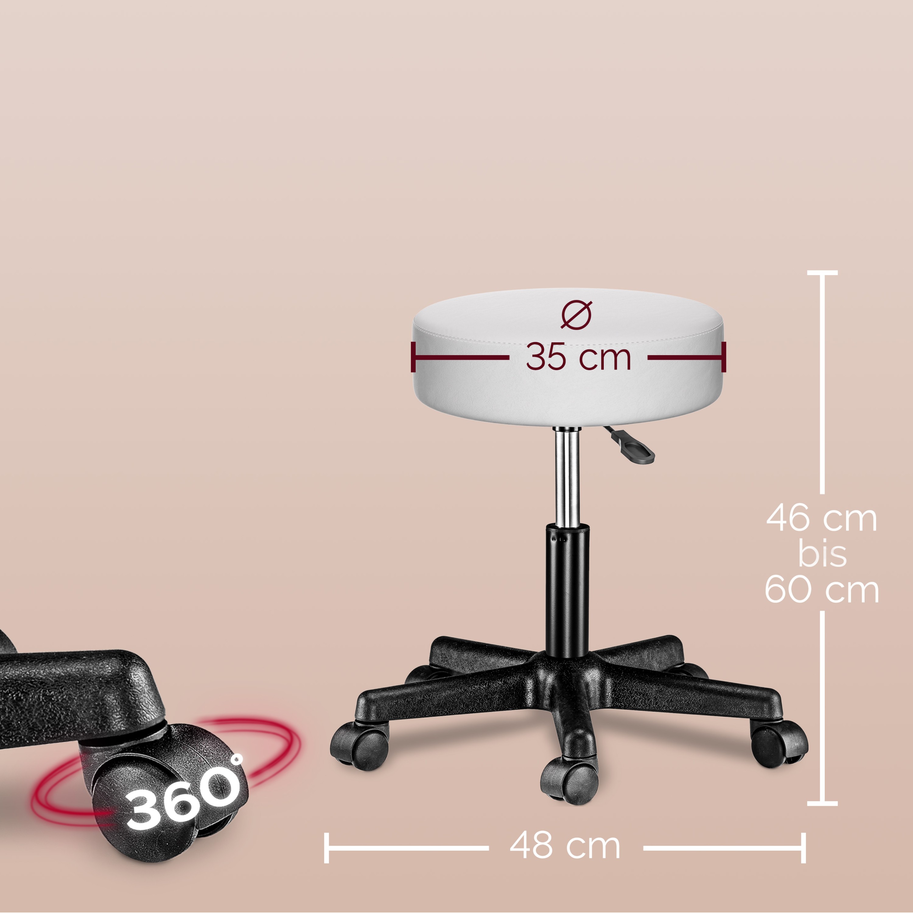 Stolík sa dodáva vrátane pohodlnej stoličky na kolieskach s otočnou základňou pre jednoduchú manipuláciu na rôznych typoch podláh. Jej výška je nastaviteľná v rozmedzí 46–60 cm a sedák je čalúnený poťahom z polyuretánu.