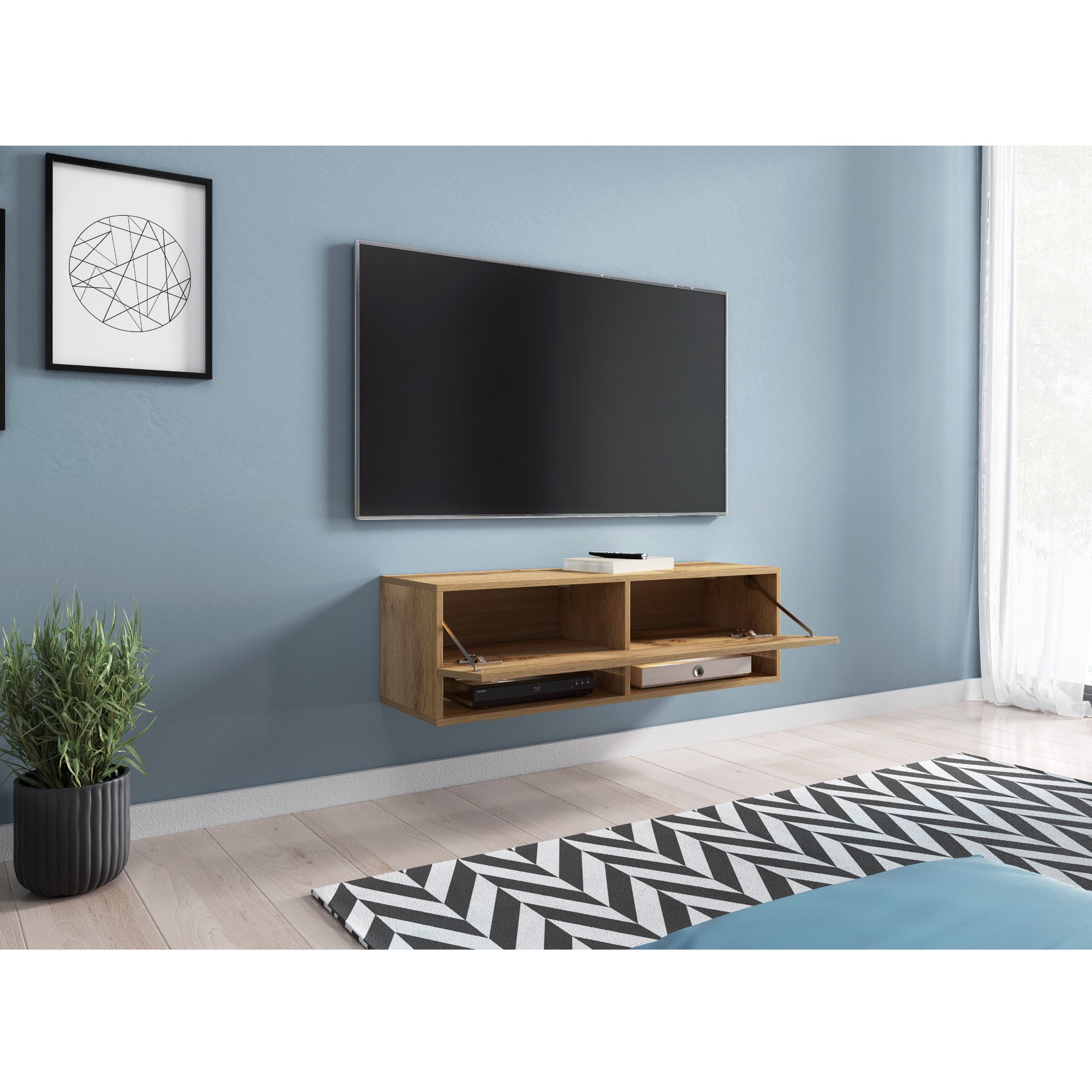 TV komodu AGATHE 100 môžete umiestniť na zem alebo zavesiť na stenu.