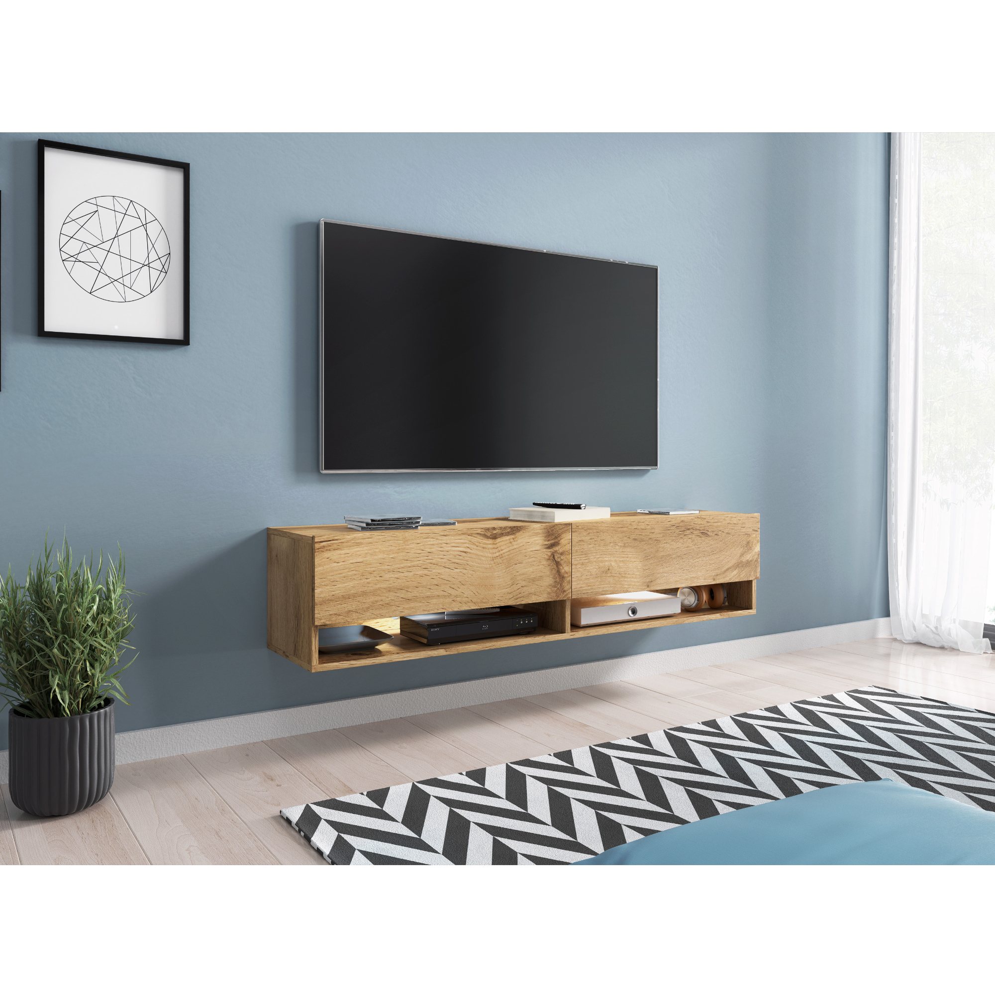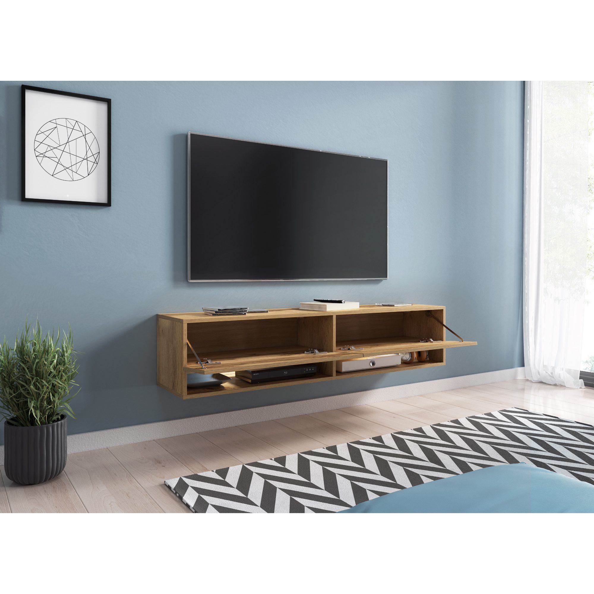 TV komodu AGATHE 140 môžete umiestniť na zem alebo zavesiť na stenu.