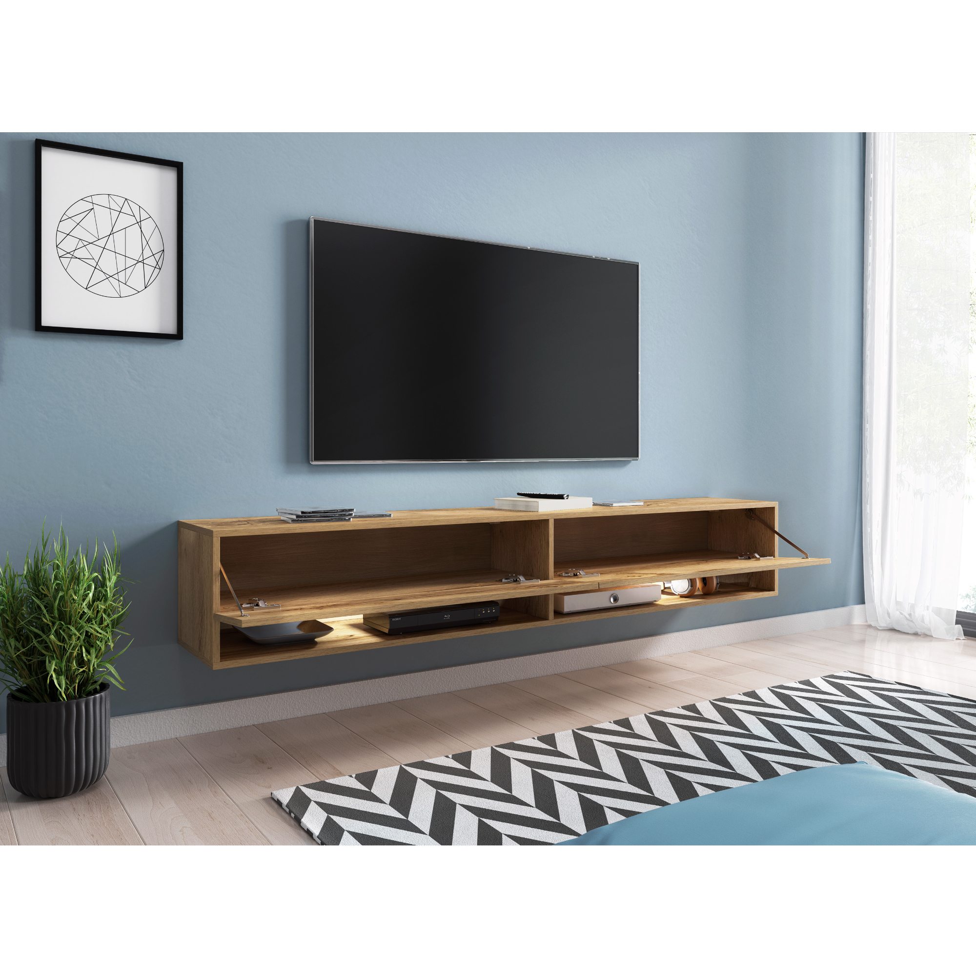 TV komodu AGATHE 180 môžete umiestniť na zem alebo zavesiť na stenu.
