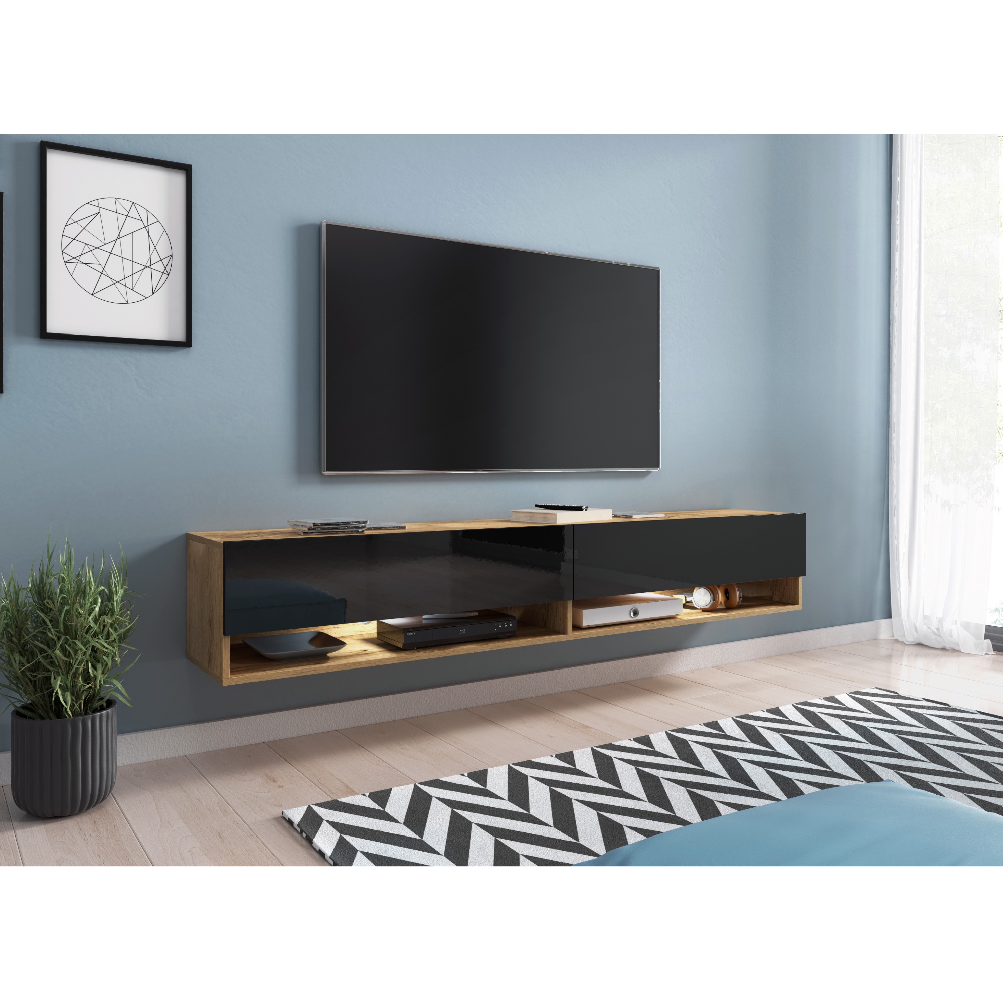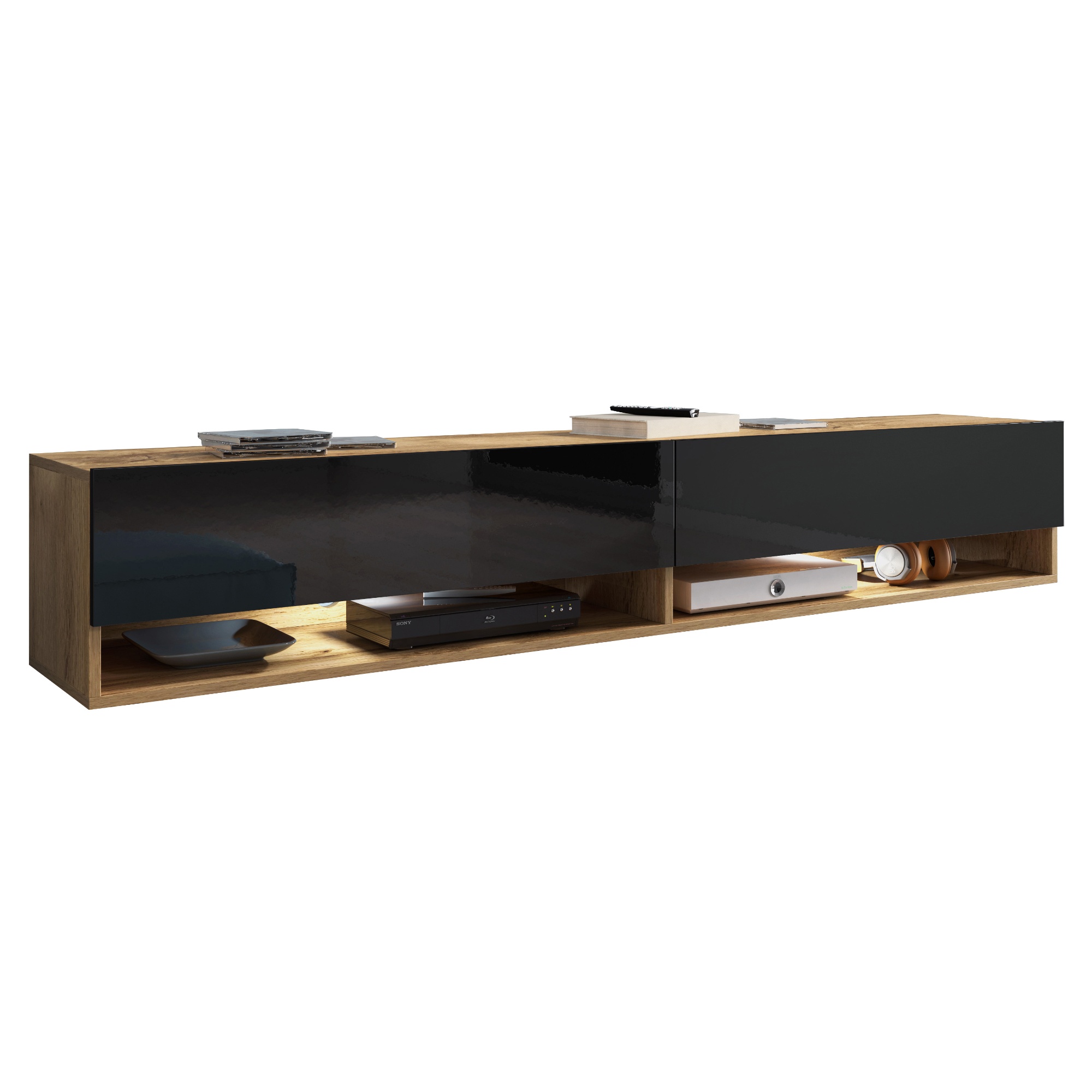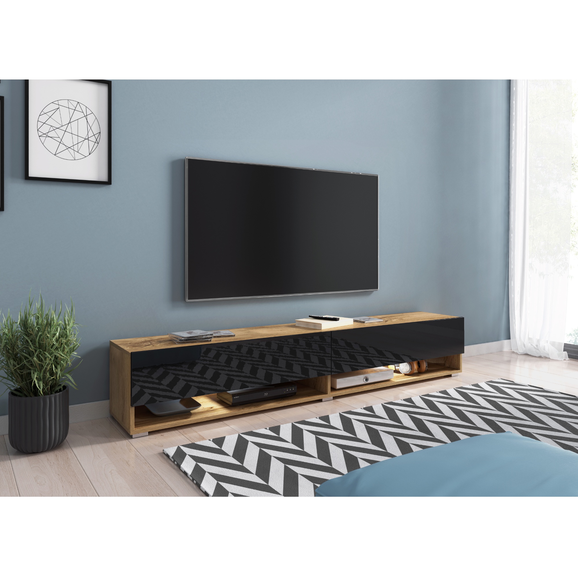 TV komoda AGATHE 180 - dub wotan/čierna lesklá