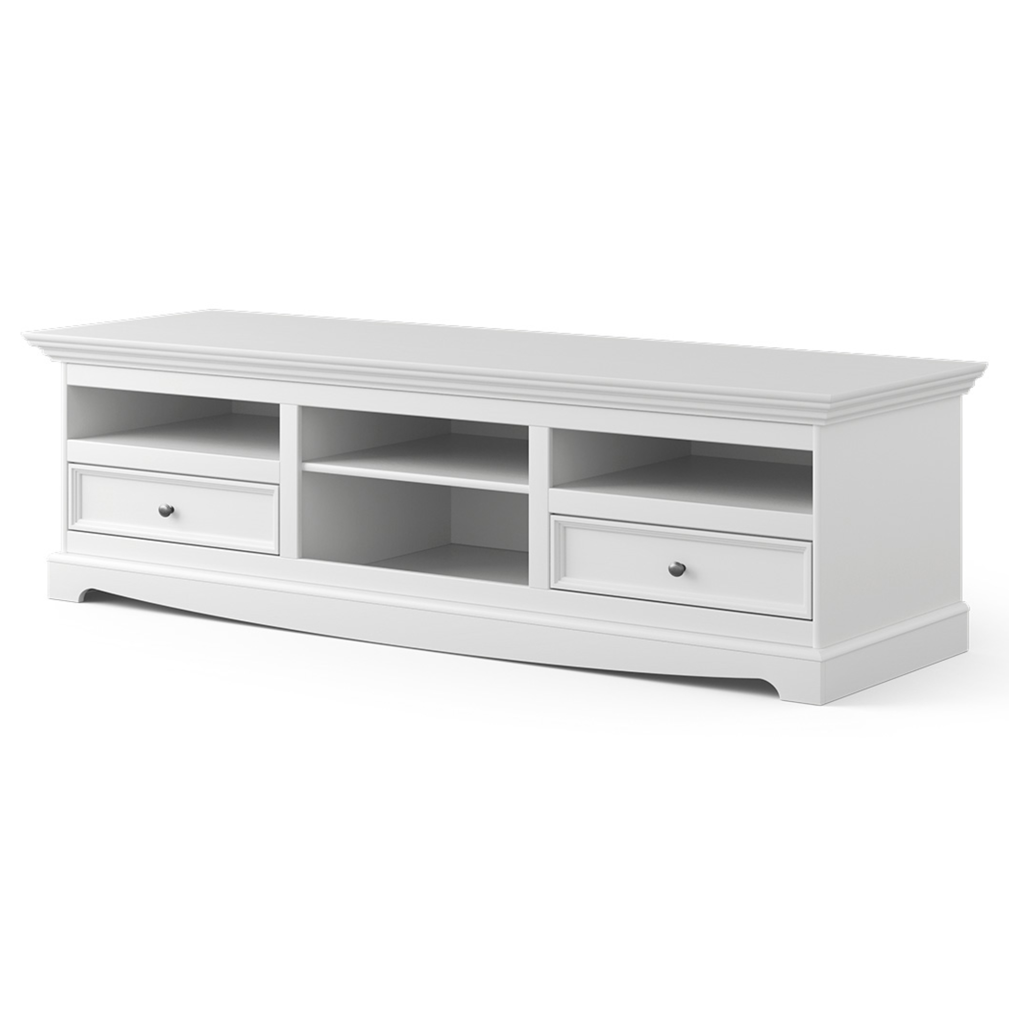 TV komoda BELLU II sa vyznačuje ozdobnými prvkami zdôrazňujúcimi charakter provensálskeho štýlu. Použité drevo fínskej borovice sa vyznačuje vysokou plasticitou a mäkkosťou. Ekologické drevo borovice je ľahko spracovateľné, a pritom odolné.