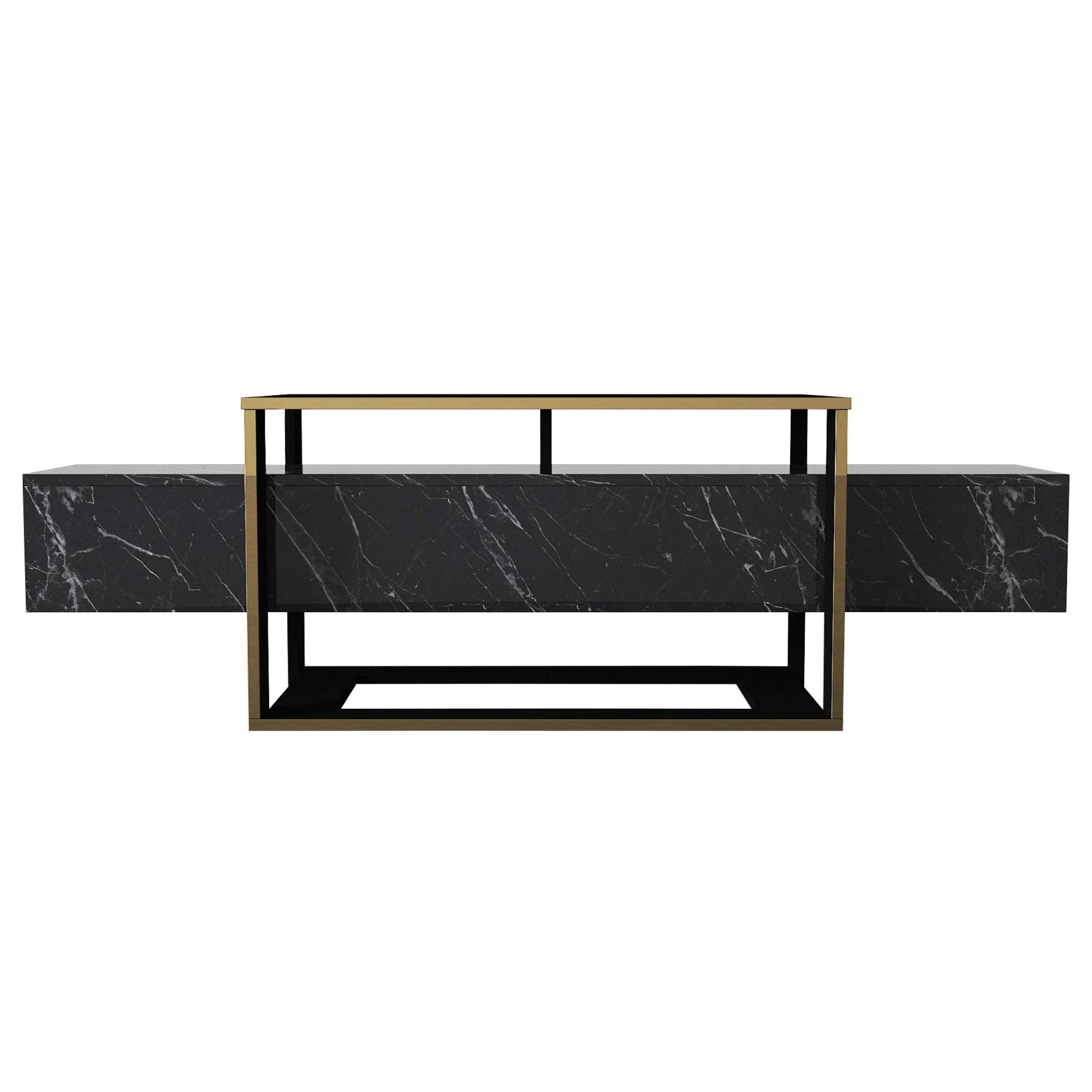 TV komoda BIANCO - čierna/zlatá