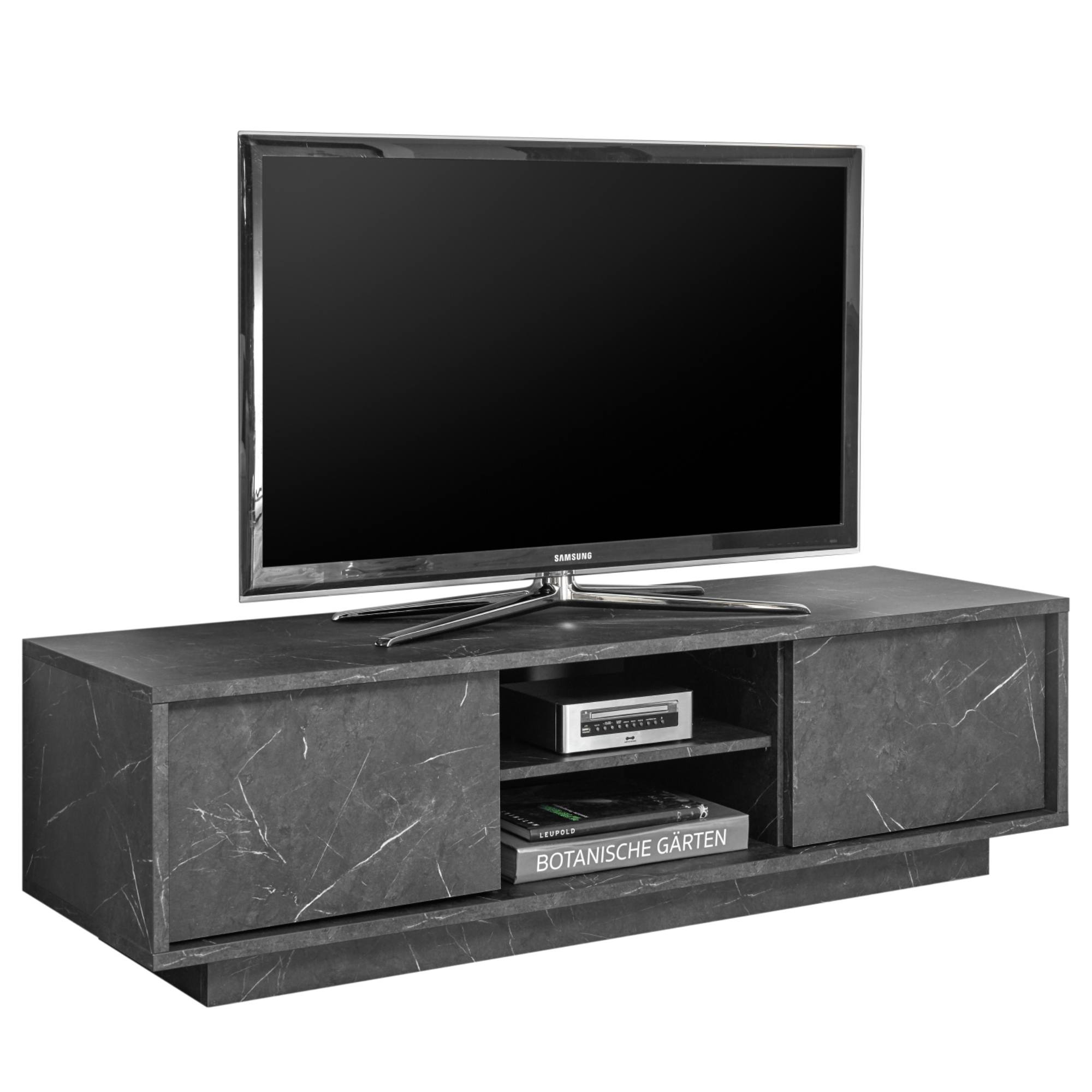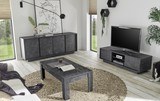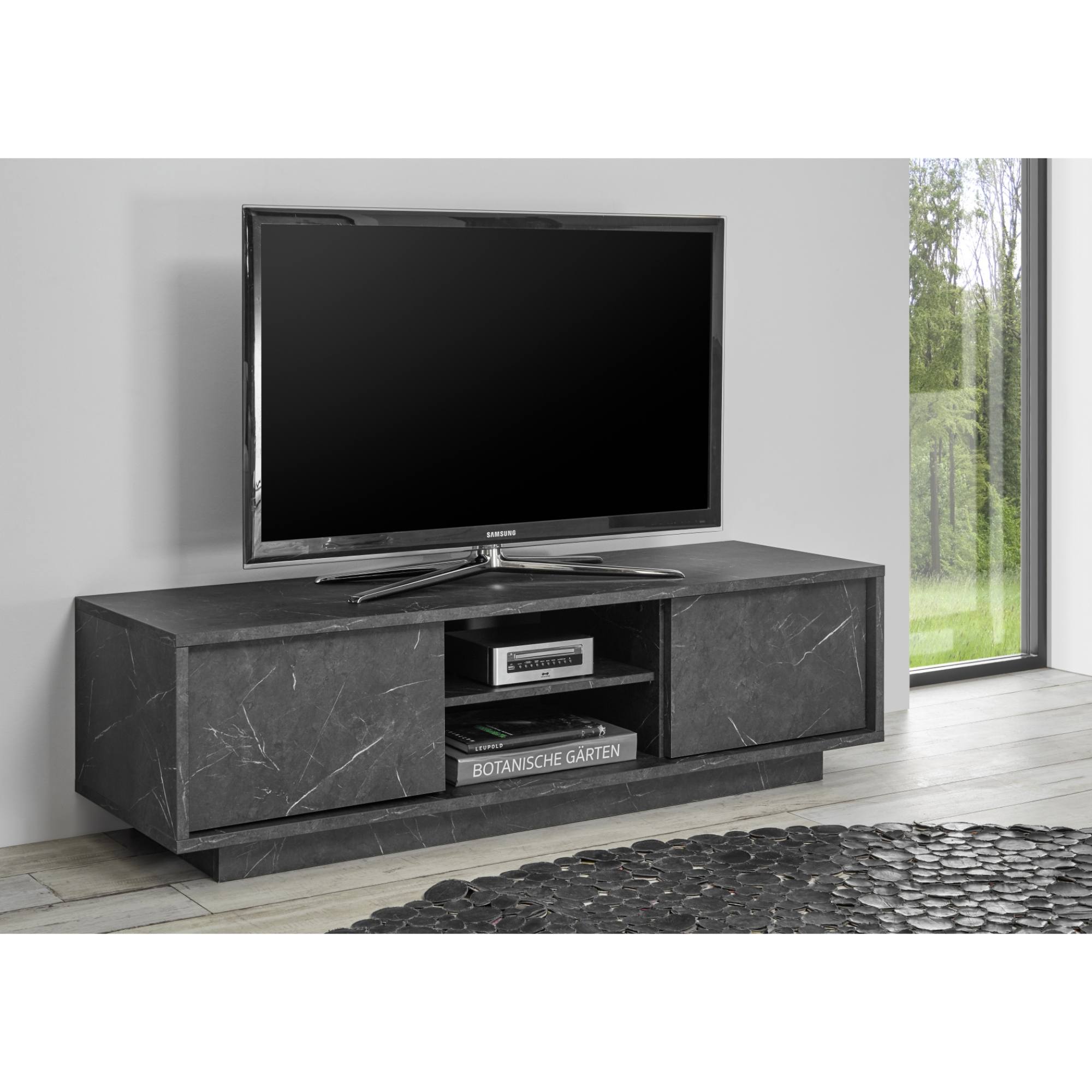 Moderná TV komoda CARRARA 2 hravo zapadne do každej obývacej izby alebo spálne. Mramorový vzhľad v odtieni čiernej farby pridáva na atraktívnosti nábytku.