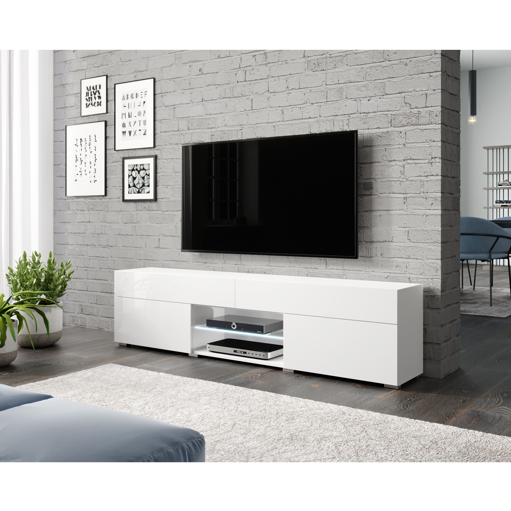 TV komoda CORELLA vybavená praktickým LED osvetlením je skvelou voľbou do každej moderne zariadenej obývacej izby.