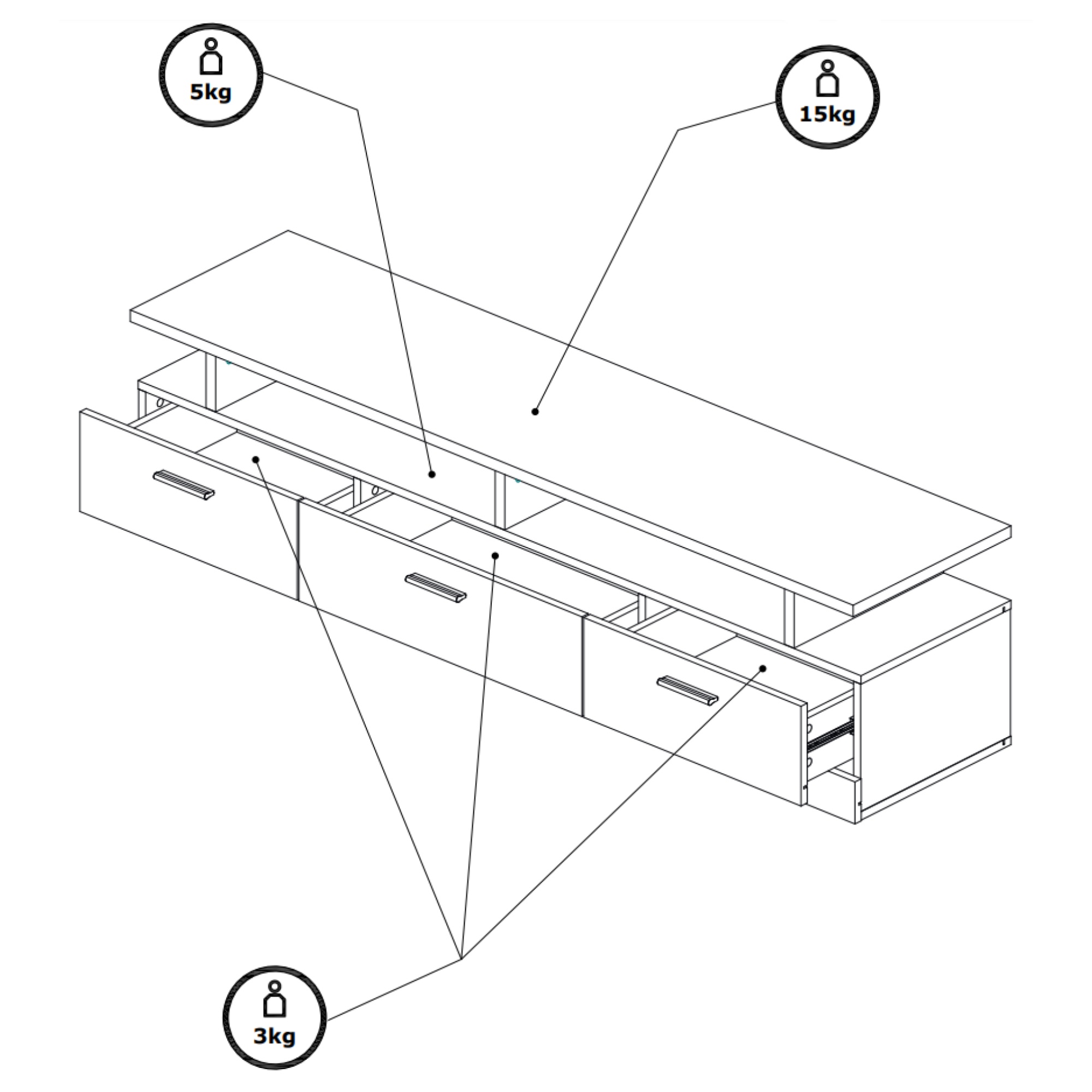 TV komoda DORES DS5 sa stane praktickou súčasťou vášho interiéru. Vďaka delenému úložnému priestoru máte istotu, že všetko potrebné budete mať vždy po ruke. Perfektne tak zapadne do moderne zariadenej domácnosti, v ktorej bude vynikať jej prírodný dekor v kombinácii s bielou farbou. Všetky predmety uložíte do troch zásuviek, otvorená priehradka zase poslúži na vaše TV príslušenstvo. Povrch TV komody sa vyznačuje jednoduchou údržbou.