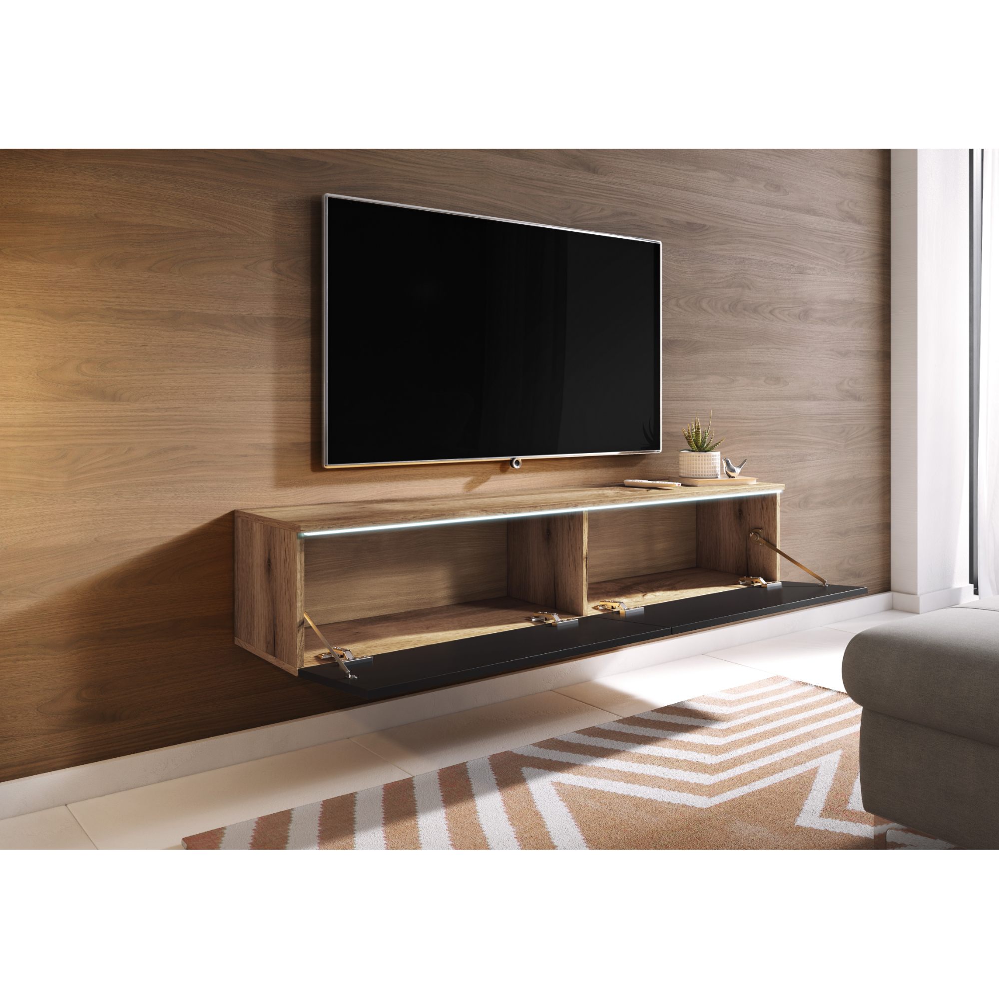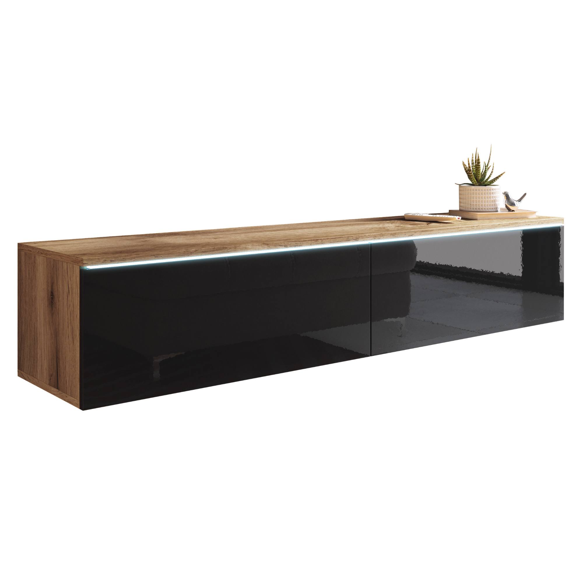 TV komoda DOROTHE 140 - dub wotan/čierna lesklá