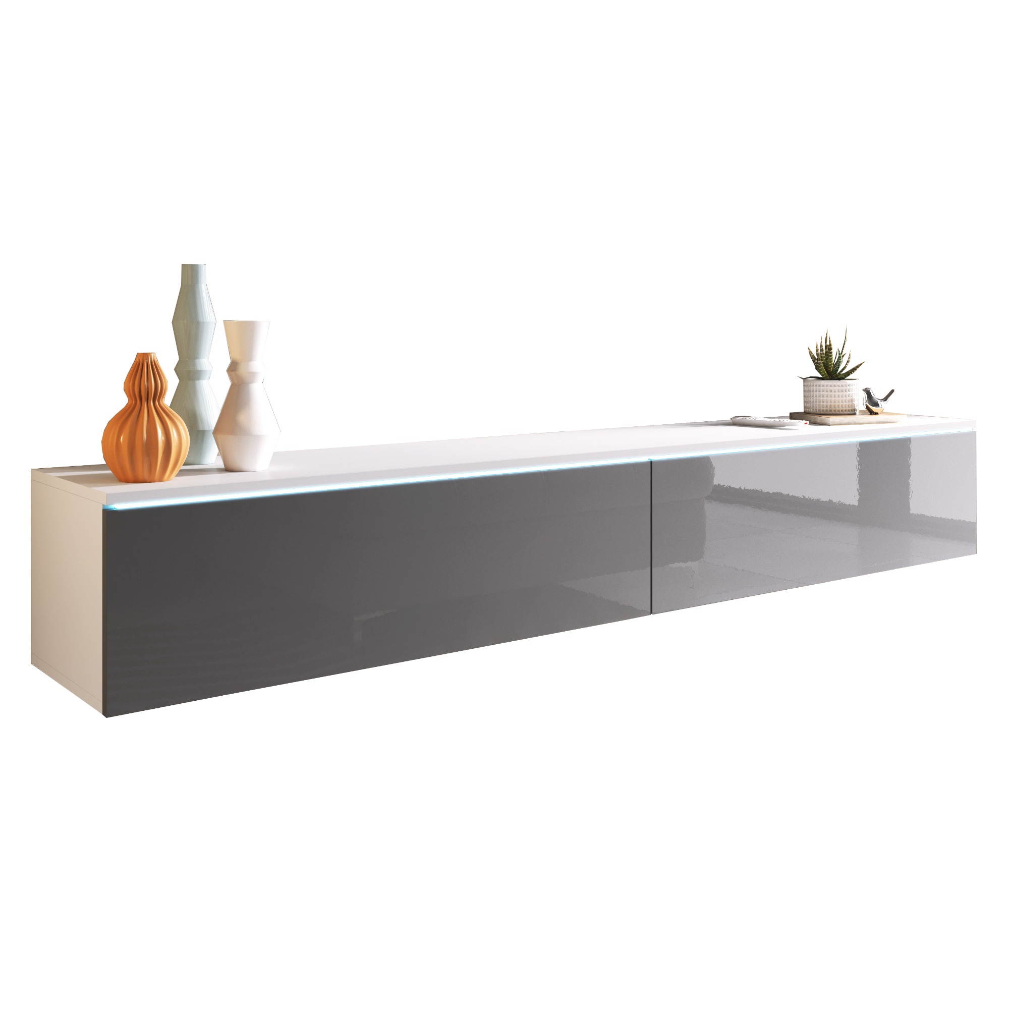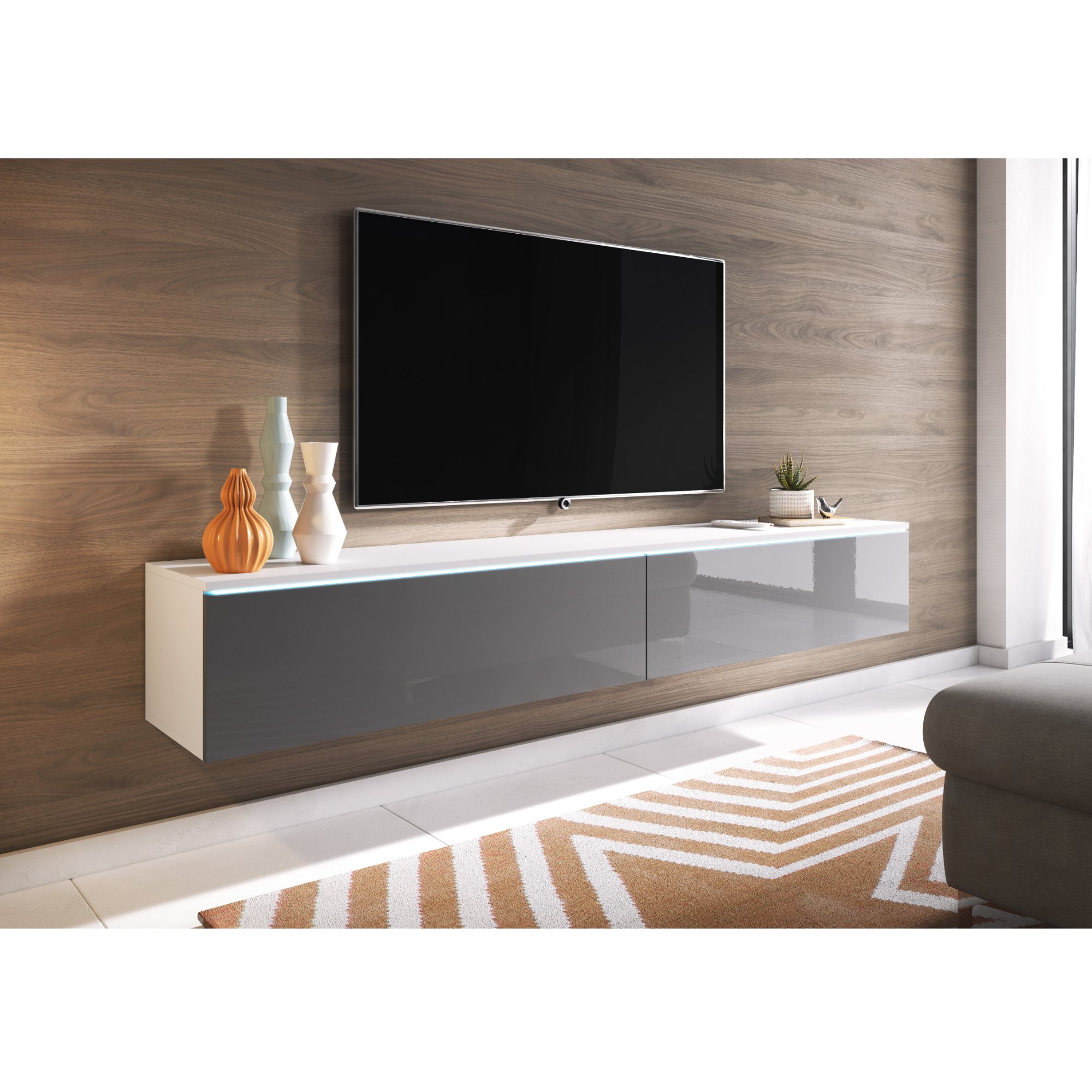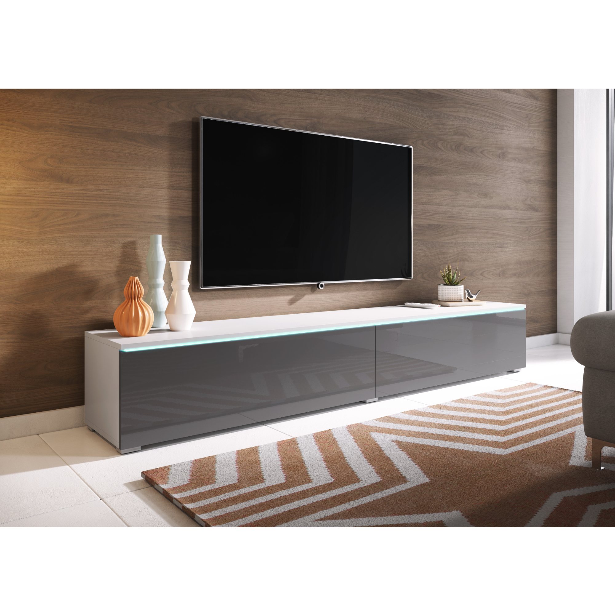 TV komoda DOROTHE 180 - biela/sivá lesklá
