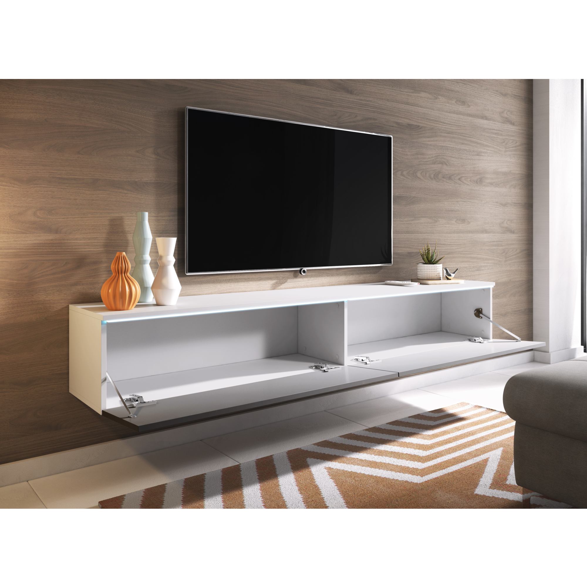 TV komodu DOROTHE 180 môžete umiestniť na zem alebo zavesiť na stenu.