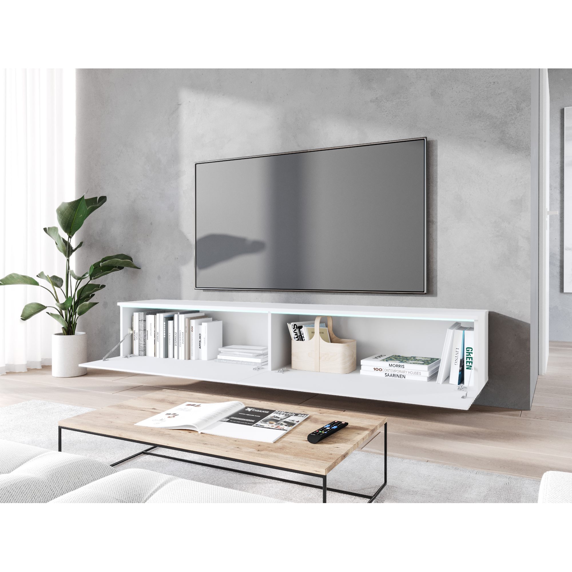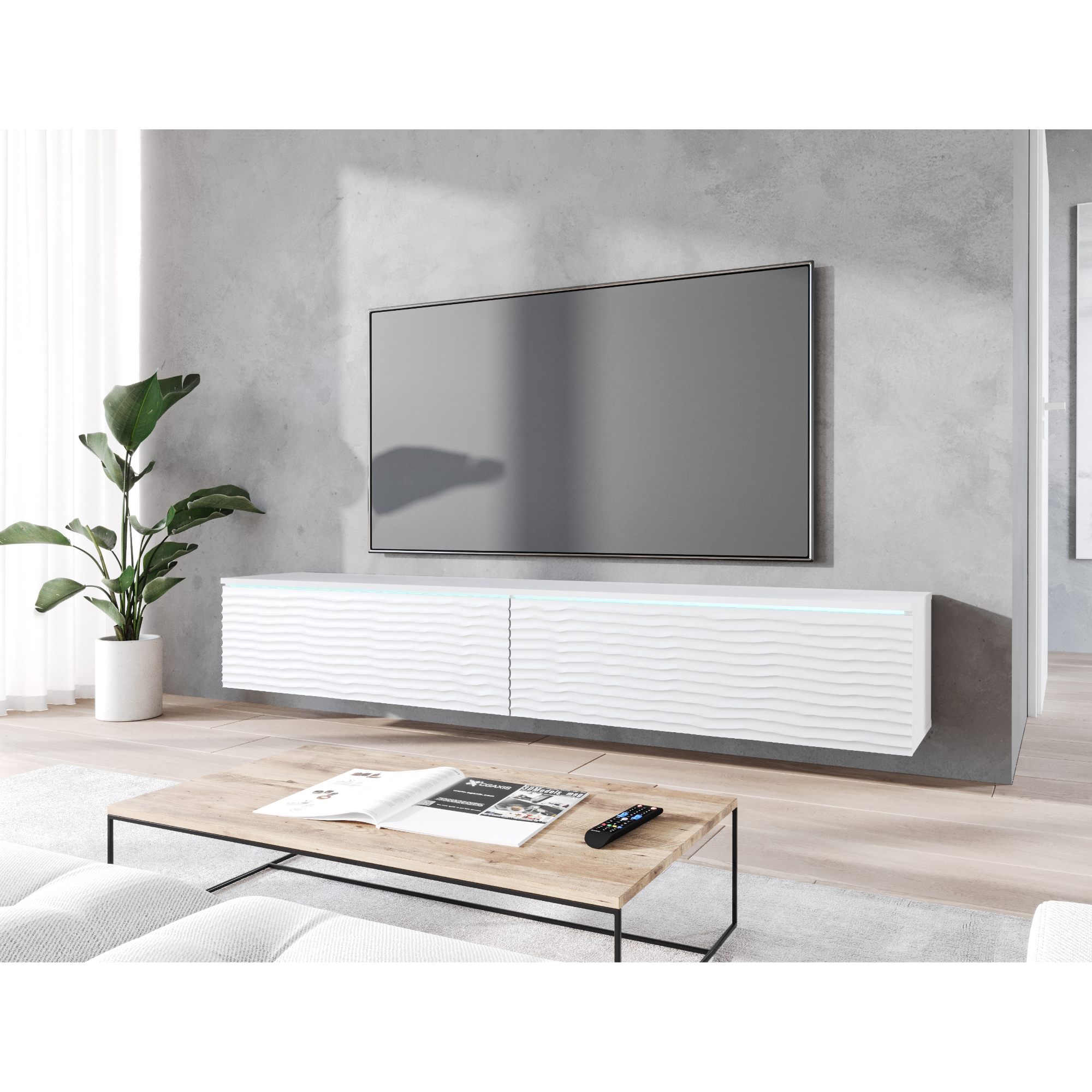 TV komoda DOROTHE 180 vybavená praktickým LED osvetlením je skvelou voľbou do každej moderne zariadenej obývacej izby.