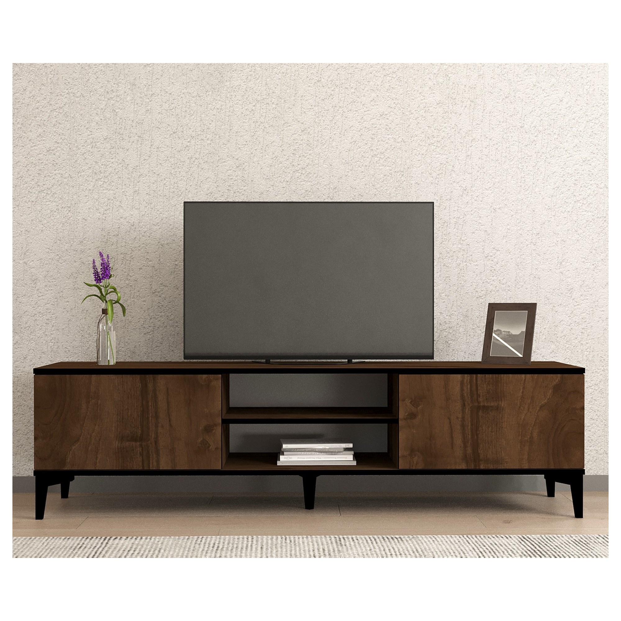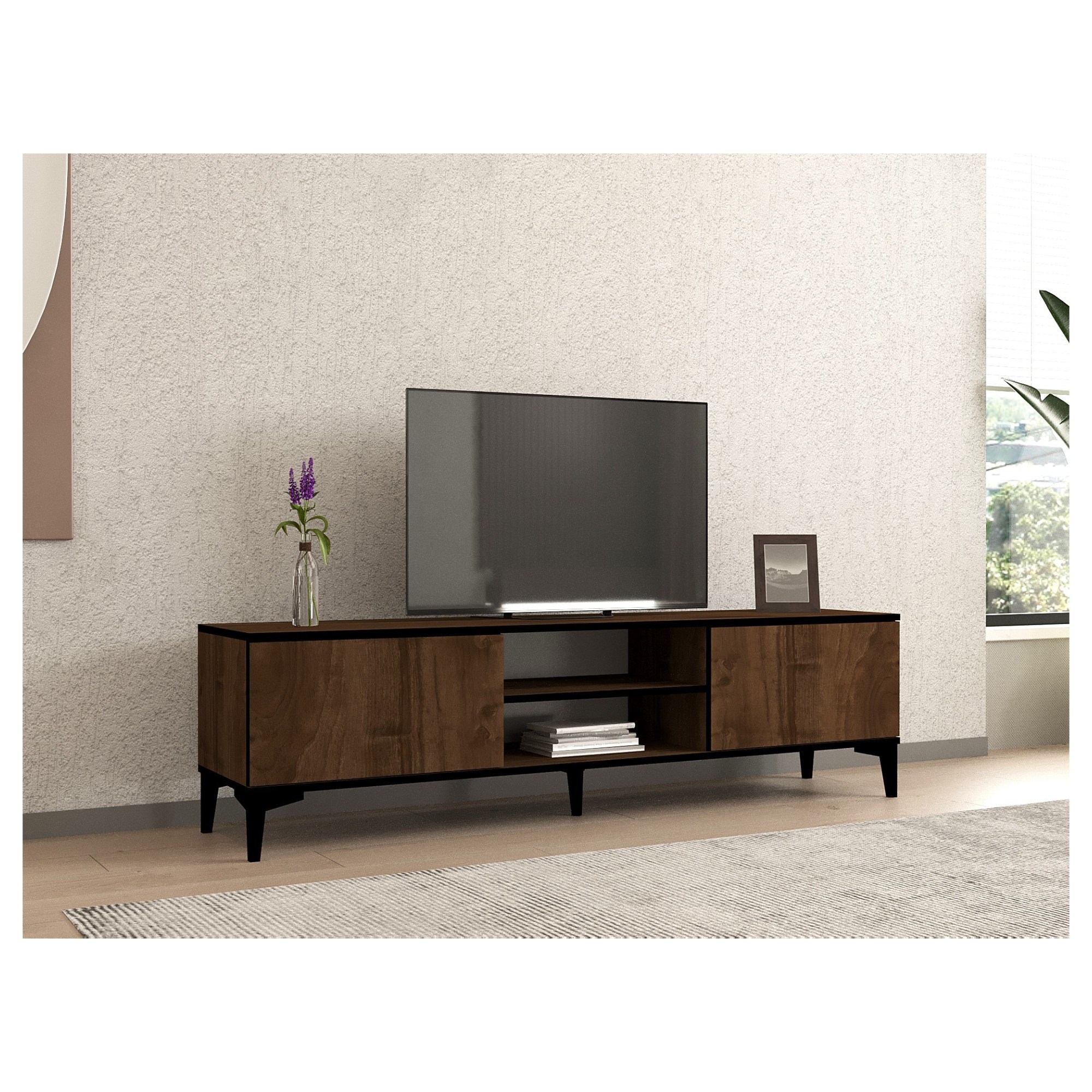 V strede komody sa nachádza otvorený úložný priestor s 1 policou. Tá je ideálna na umiestnenie set-top boxov, DVD prehrávačov a inej elektroniky. Ďalej disponuje 2 otočnými dvierkami, za ktorými nájdete ďalší úložný priestor. Ten poskytuje dostatok miesta na odloženie všetkého, čo potrebujete mať poruke. Vrchná doska so šírkou 180 cm ponúka priestor pre televíziu, ovládače aj dekorácie. Vyhotovenie bez úchytiek podčiarkuje jej moderný vzhľad.