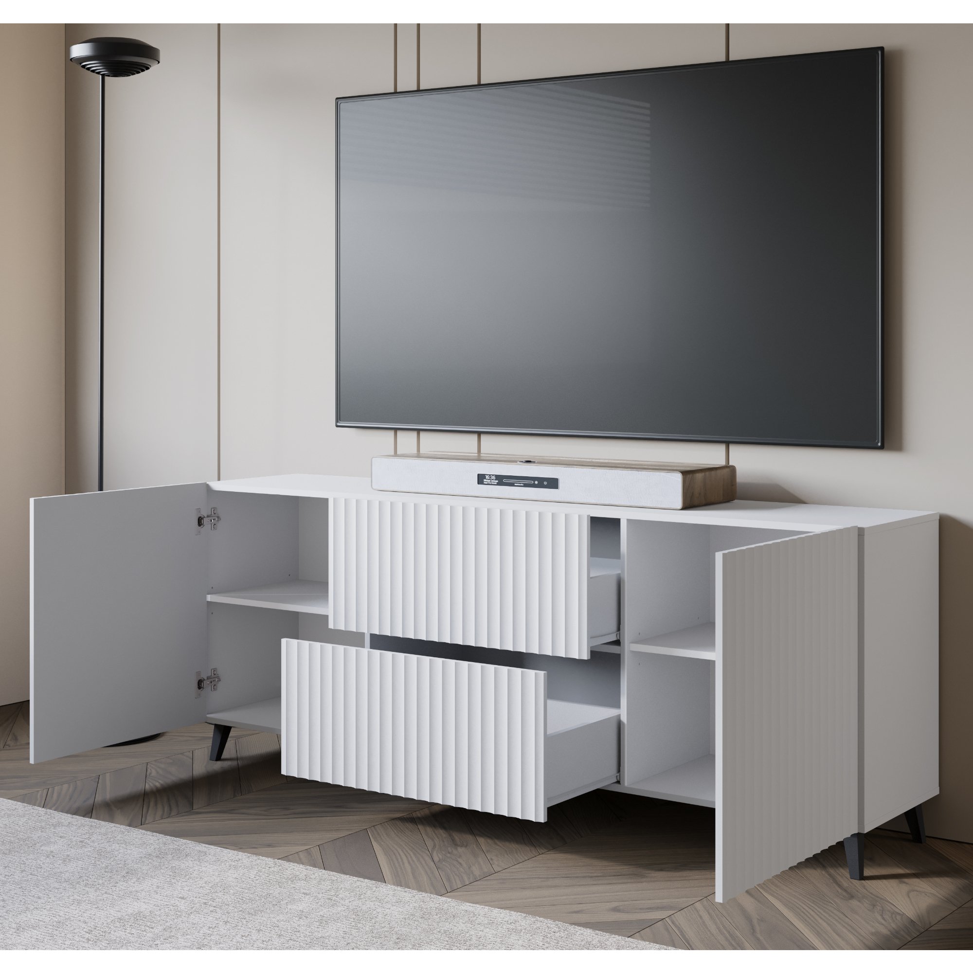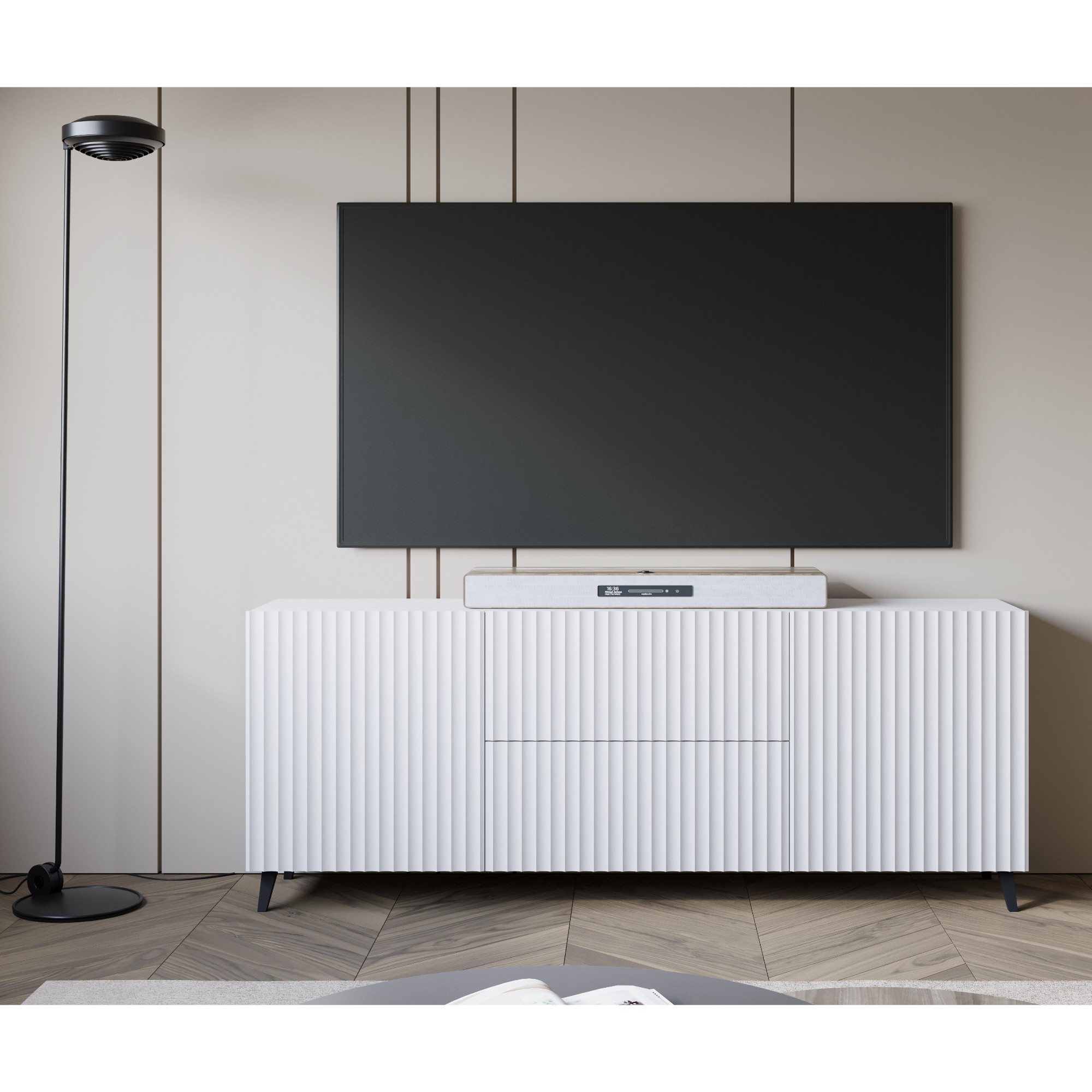 - Vysoké nôžky uľahčujúce upratovanie pod TV komodou