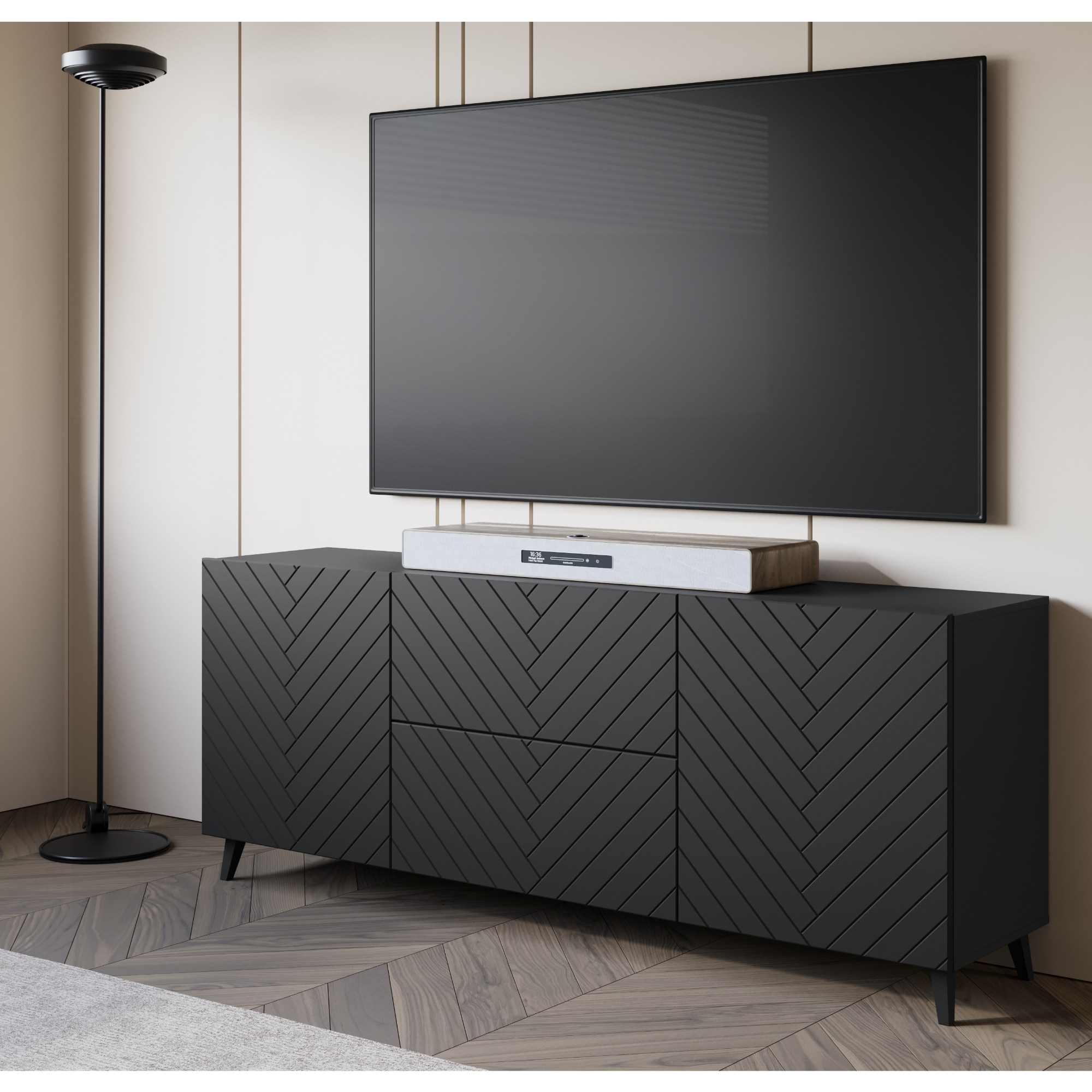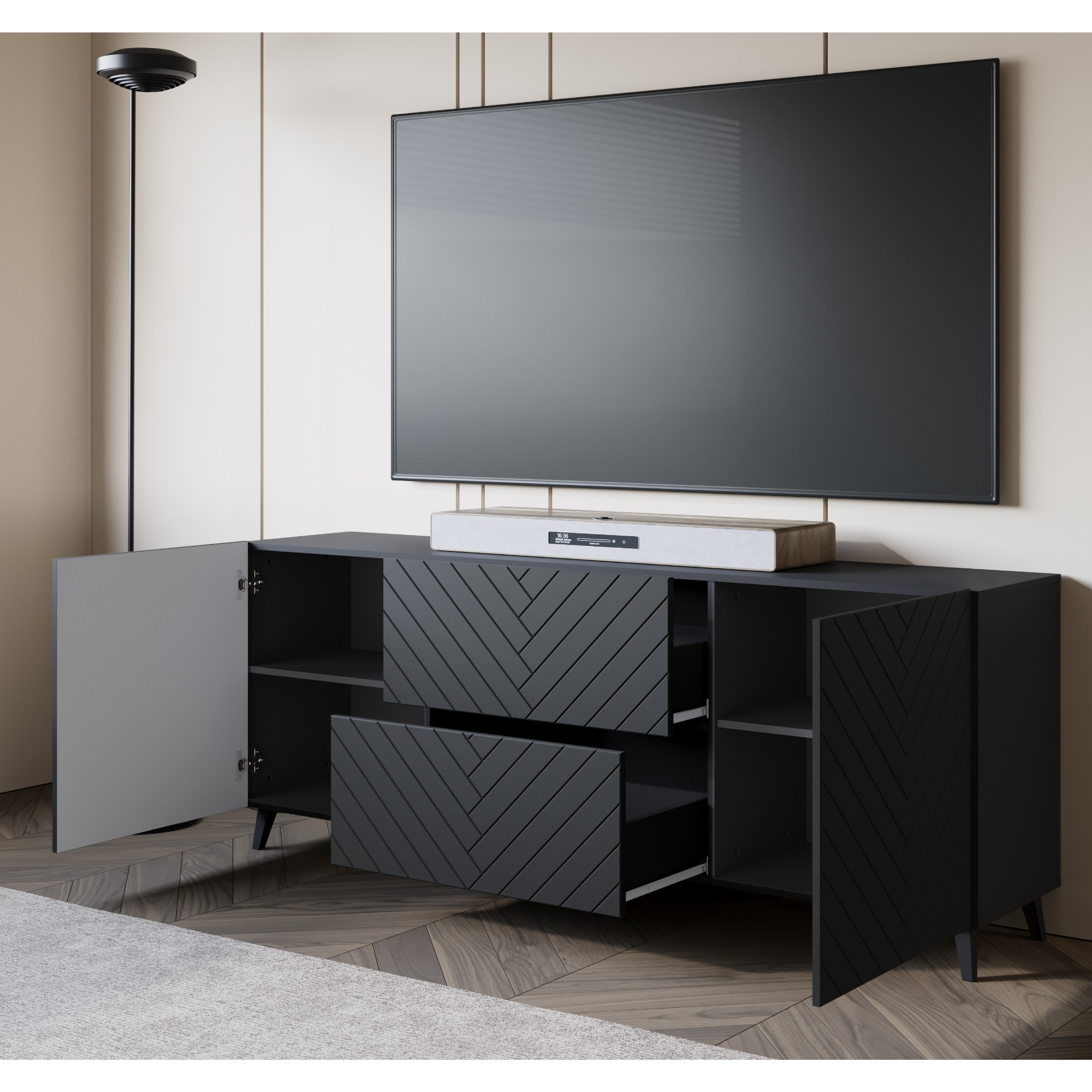 - Vysoké nôžky uľahčujúce upratovanie pod TV komodou