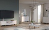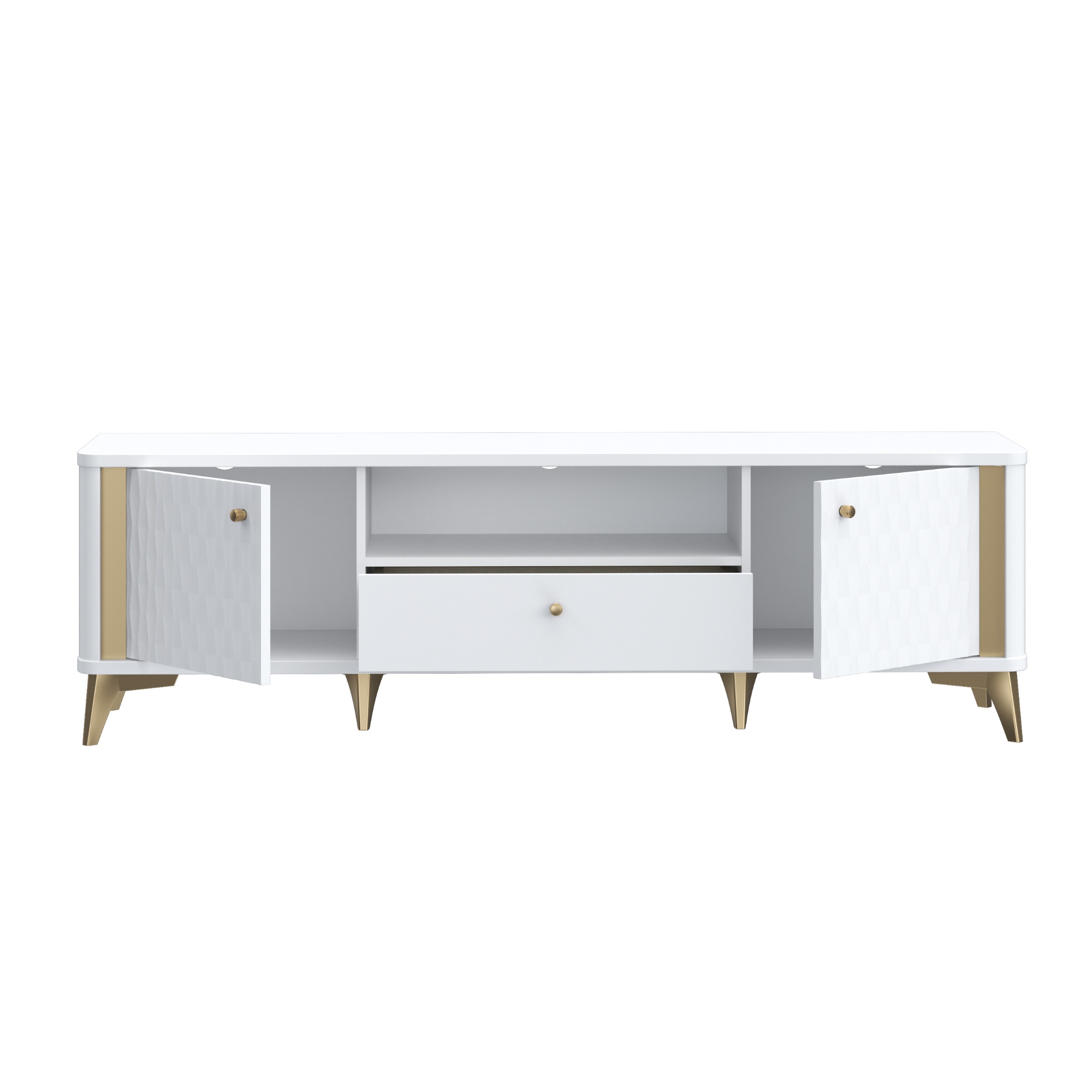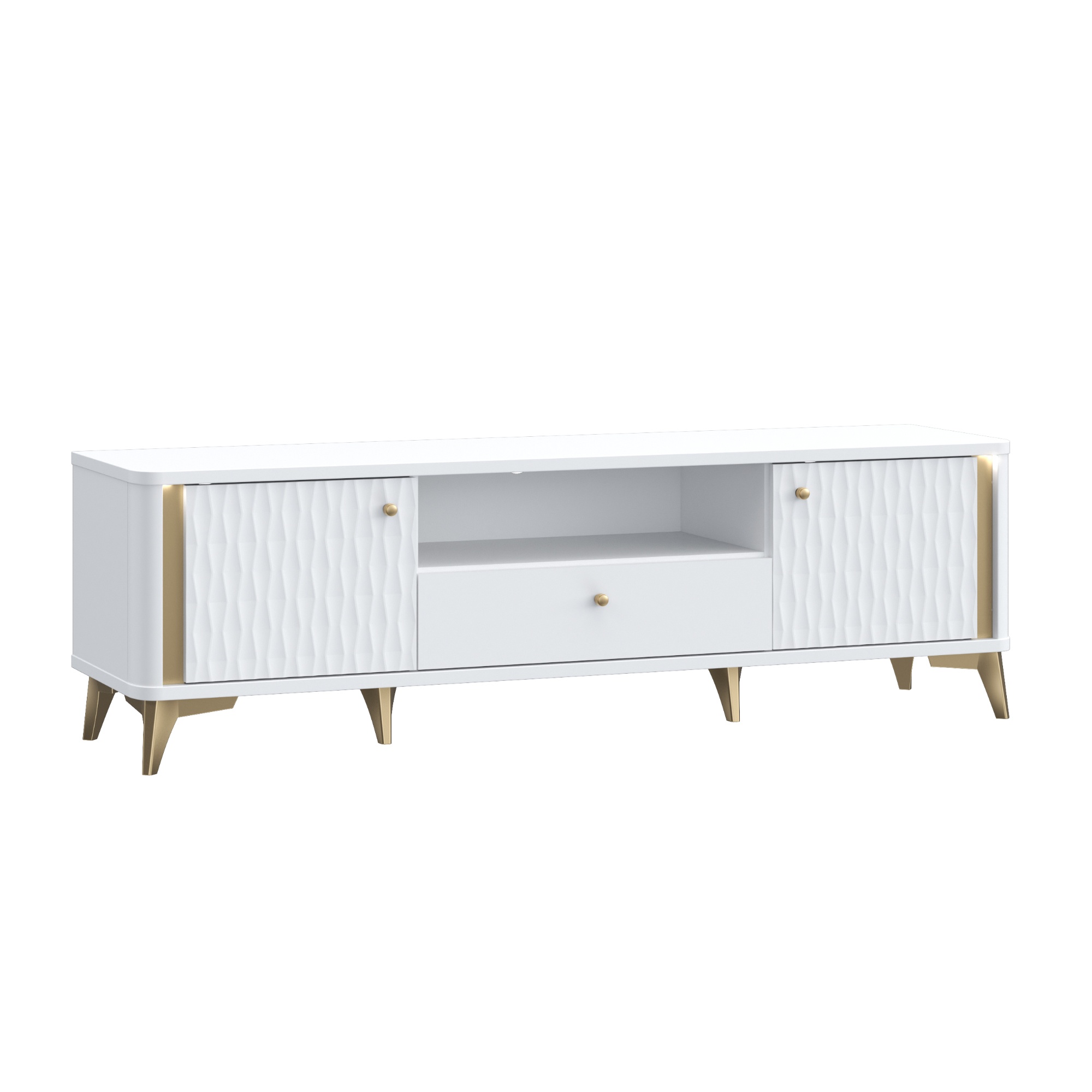 TV komoda FORREST HILLS - biela/zlatá, šírka 161 cm