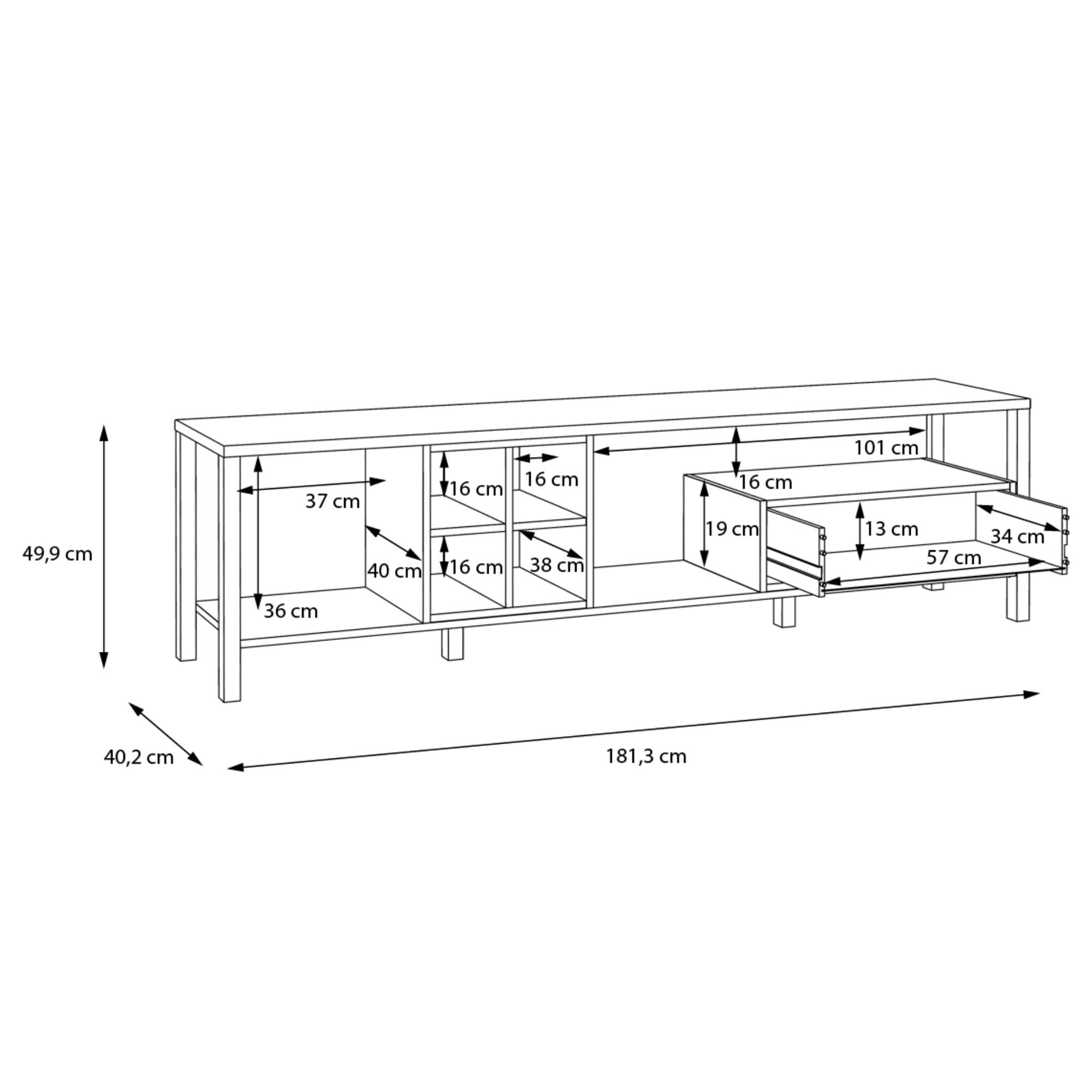 Nájdete tu miesto na vaše TV príslušenstvo, dekorácie, ale aj fotografie. Komoda tiež disponuje uzatvárateľným úložným priestorom, ktorý obsahuje jednu zásuvku. Decentná kovová rúčka vám uľahčí jej manipuláciu. ABS hrany navyše zvyšujú odolnosť celého korpusu, ktorý sa vám bude zároveň jednoducho udržiavať.