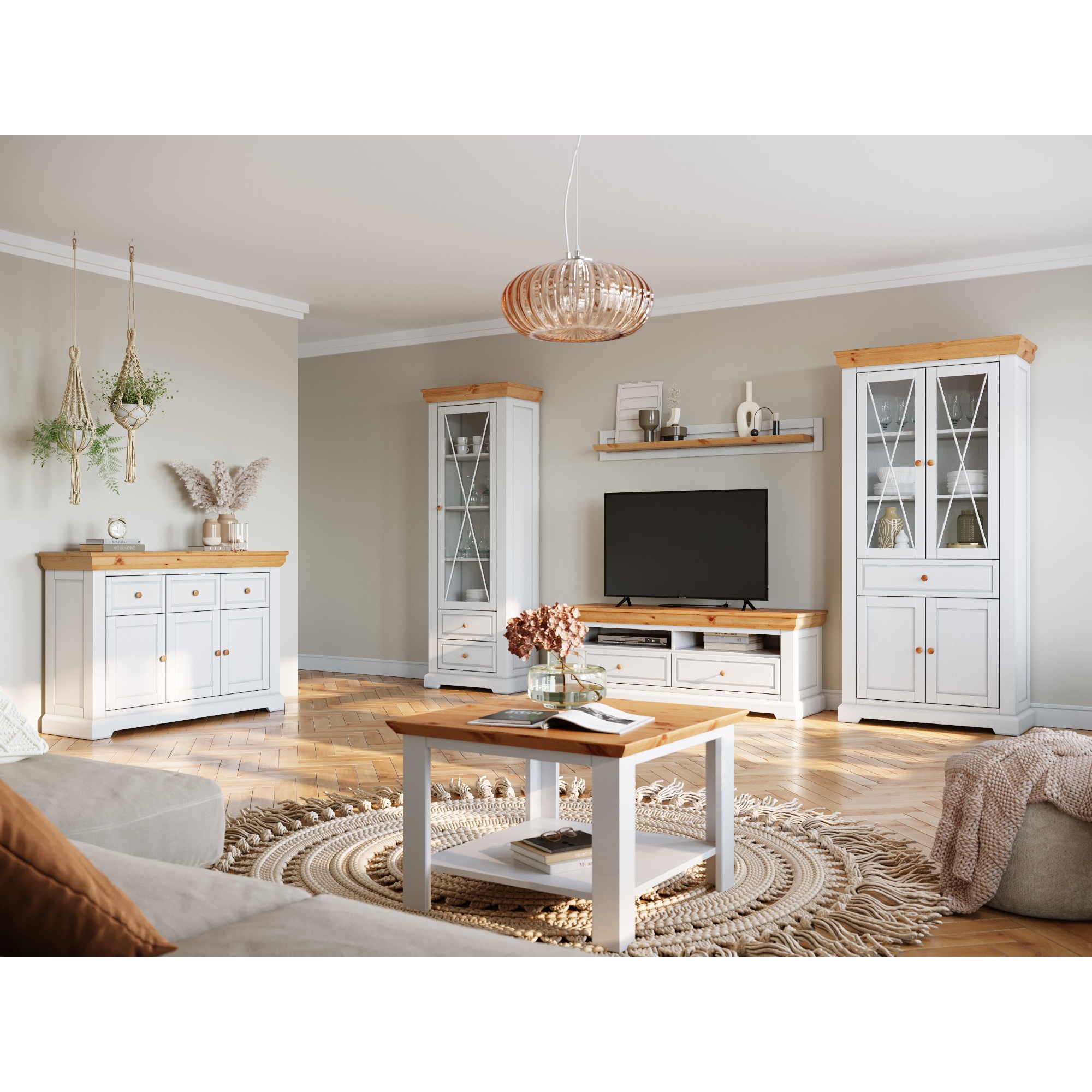 O nerušené sledovanie vašich obľúbených programov sa postará kvalitná TV komoda MARON. Zlatý vršok z masívnej borovice je kombinovaný s bielym telom, čo dokonale odráža provensálsky štýl.