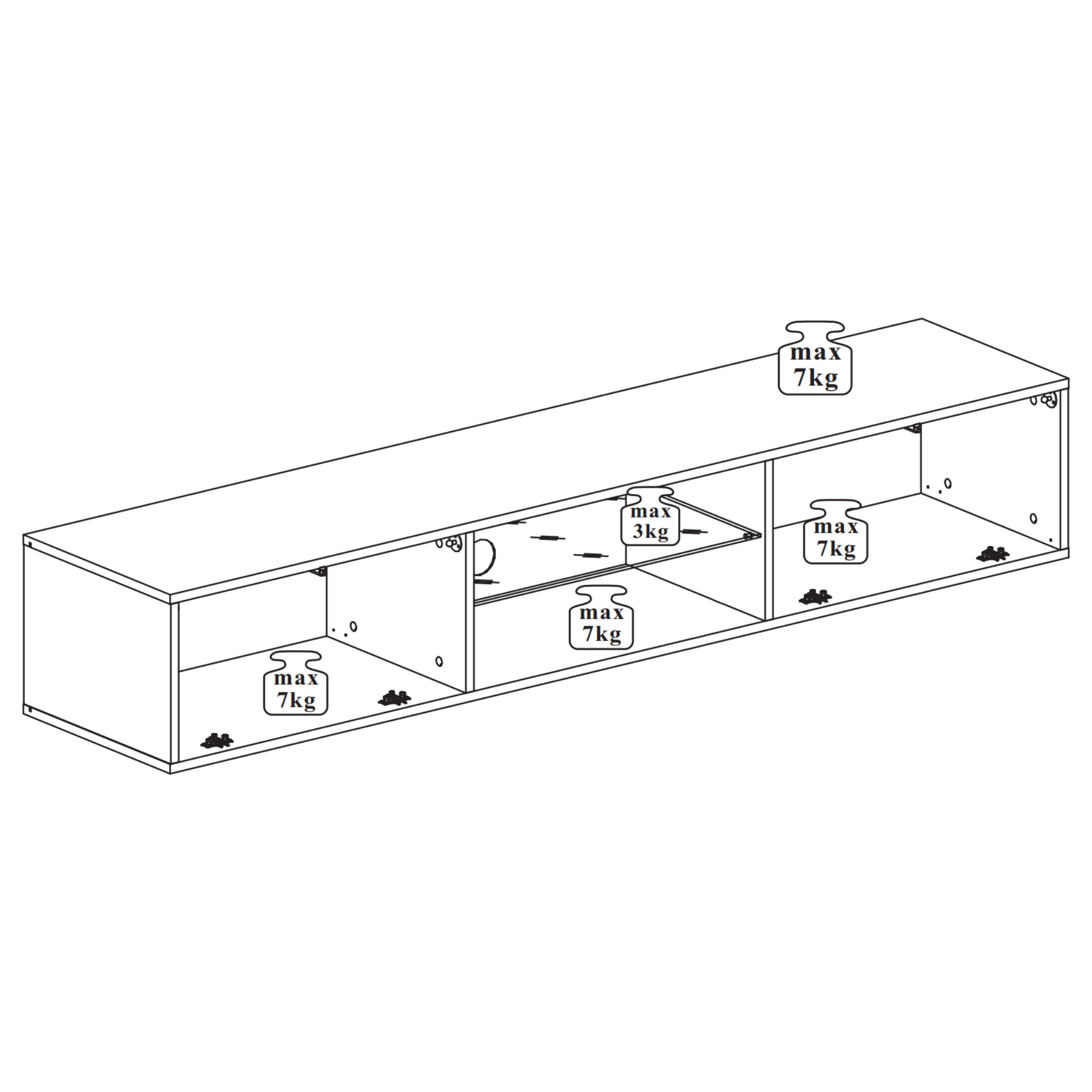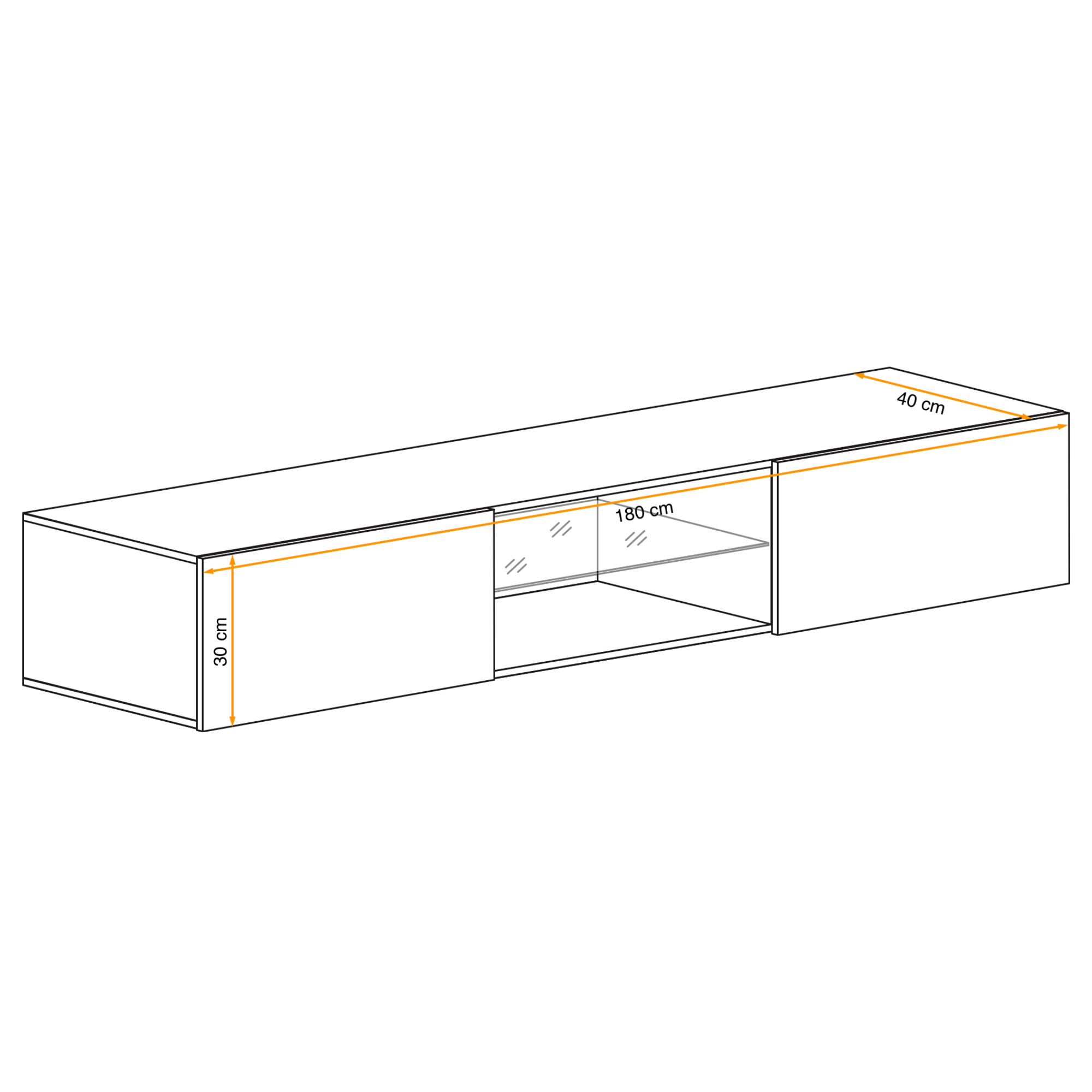 Komoda je vyrobená z laminovaného dreveného materiálu so sklenenou policou a doplnená o LED osvetlenie, ktoré jej dodáva moderný nádych. Postranné priestory ďalej disponujú výklopnými dvierkami, kde všetko potrebné budete mať hneď po ruke. Nástenné vyhotovenie bez nôh a rúčok pridáva na praktickosti a čistom vzhľade.