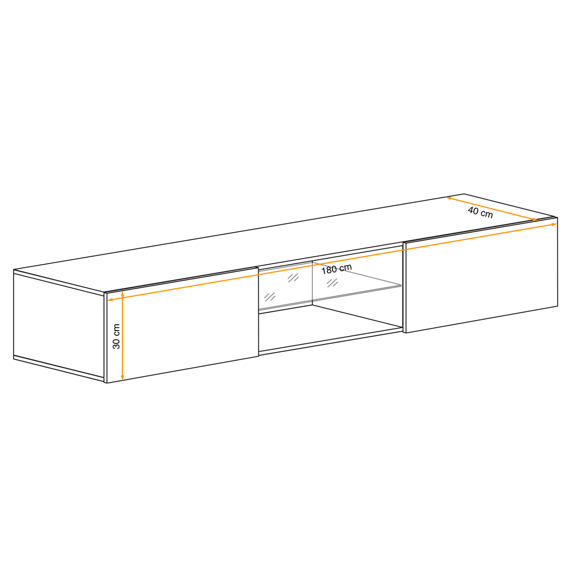 Komoda je vyrobená z laminovaného dreveného materiálu so sklenenou policou a doplnená o LED osvetlenie, ktoré jej dodáva moderný nádych. Postranné priestory ďalej disponujú výklopnými dvierkami, kde všetko potrebné budete mať hneď po ruke. Nástenné vyhotovenie bez nôh a rúčok pridáva na praktickosti a čistom vzhľade.
