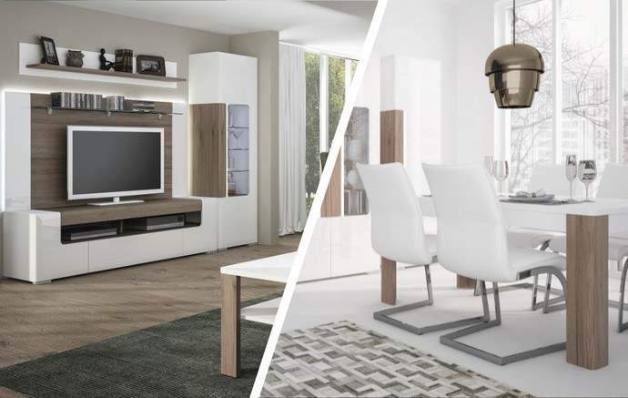 Dizajnová TV komoda MILANO dokáže zmeniť váš televízny kútik na reprezentatívnu časť domu. Je krásnou kombináciou bielej farby a dekora duba sanremo. Ponúka dostatok úložného priestoru v podobe zásuvky a dvoch otočných dvierok. Otvorená polica je vybavená ventilačnými otvormi, ktoré zaistia konštantnú cirkuláciu vzduchu okolo elektroniky a zároveň uľahčia nastavenie televízneho vybavenia. Telo komody je vyrobené z lamina a čelo z MDF dosky potiahnutej vysoko kvalitným PVC v bielej farbe s jemným leskom. Dvierka aj zásuvka sú v bezrúčkovom vyhotovení s pozvoľným uzatváraním vďaka systému soft-close. Nôžky komody sú z kvalitného plastu. Zároveň vám chceme odporučiť možnosť kombinácie s ďalšími prvkami z rovnomenného programu.
