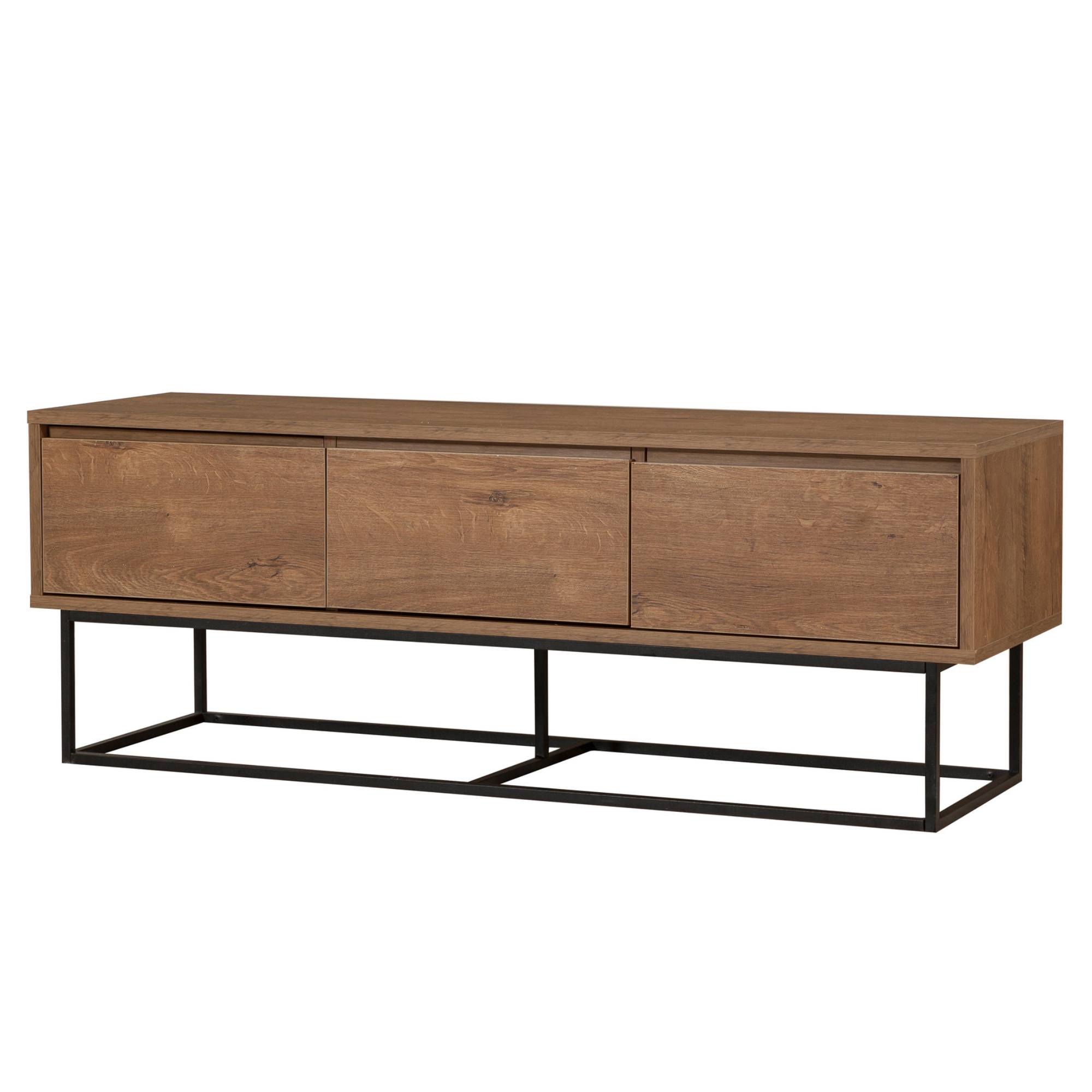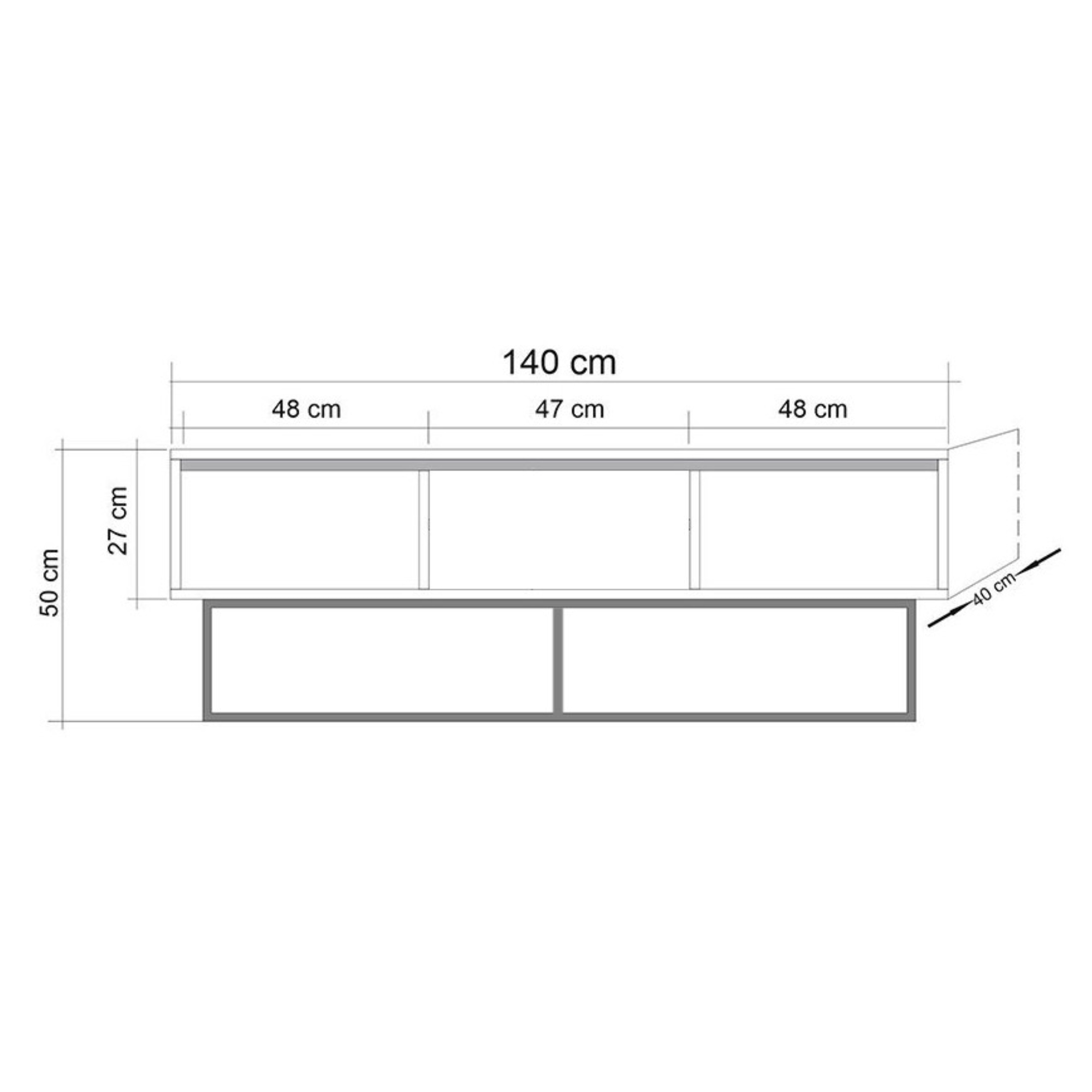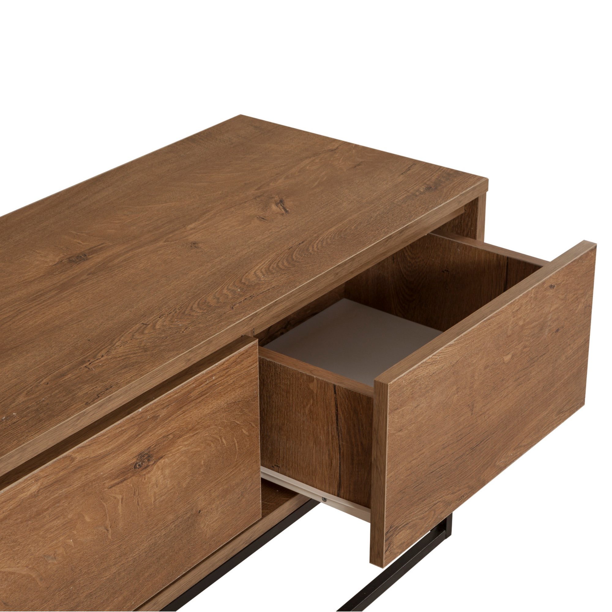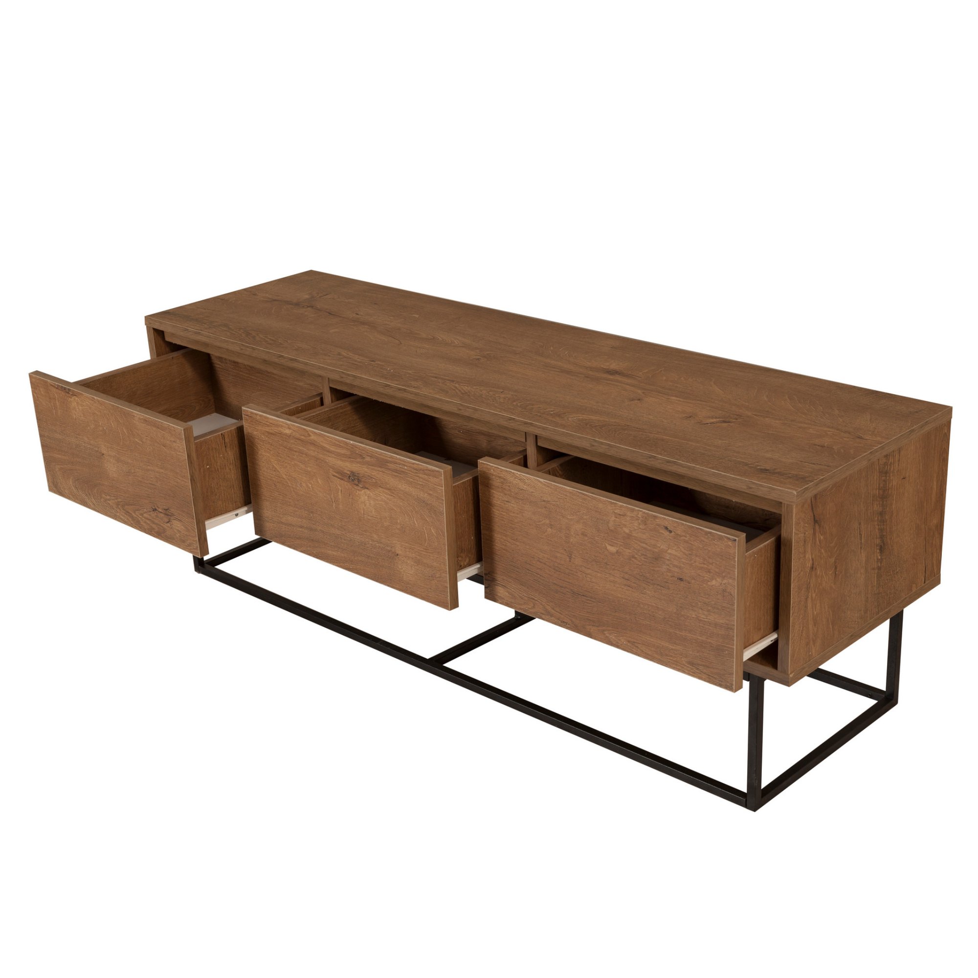 Disponuje 3 zásuvkami, ktoré vytvárajú dostatok priestoru na odloženie všetkého, čo potrebujete mať po ruke. Vrchná doska so šírkou 140 cm ponúka priestor na televíziu aj dekorácie. Vyhotovenie bez úchytiek podčiarkuje jej čistý vzhľad, zatiaľ čo kovová konštrukcia nožičiek zabezpečuje jej stabilitu. Dekor orecha dodá teplú a útulnú atmosféru do miestnosti.