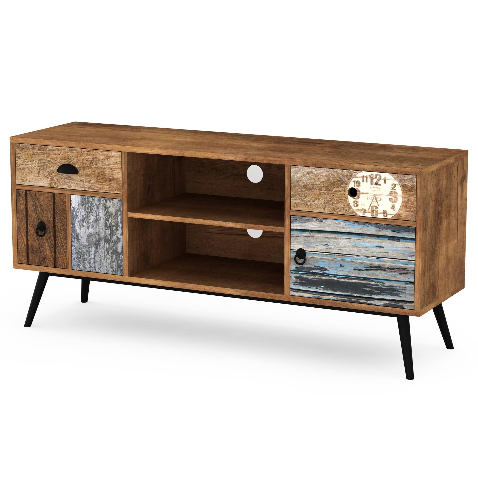 Kombinácia pestrých farieb a motívov, kde všetky tieto prvky sú zakomponované do jedného nábytku? Tak si možno predstaviť TV komodu MIZU, ktorá bude vo vašom interiéri zaručene vynikať. Dostanete tak plno miesta na uloženie potrebného TV príslušenstva alebo vystavenie dekorácií. Obsahuje priestor za dvierkami, dve priehradky a štyri zásuvky s dekoratívnymi rúčkami. Vysoké nohy zaisťujú potrebnú pevnosť a stabilitu. Materiál je nenáročný na údržbu.