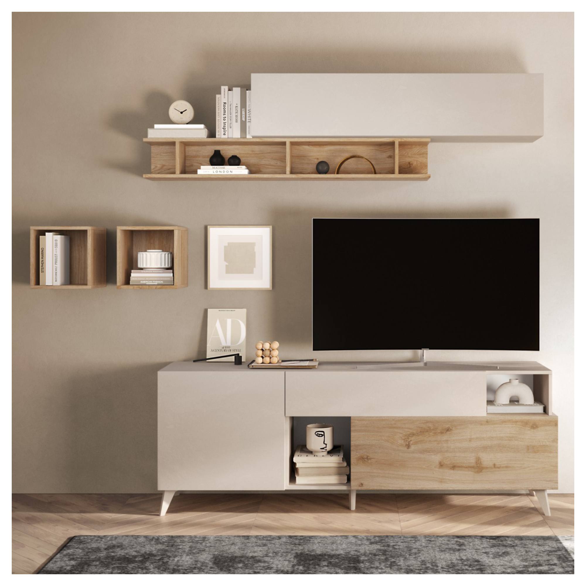 TV komoda MONOCA je funkčným kusom nábytku, ktorý ponúka kombinovaný úložný priestor. Spracovanie v nadčasovej kombinácii prírodného dekora a neutrálnej farby skvele zapadne do moderných aj klasicky ladených interiérov.