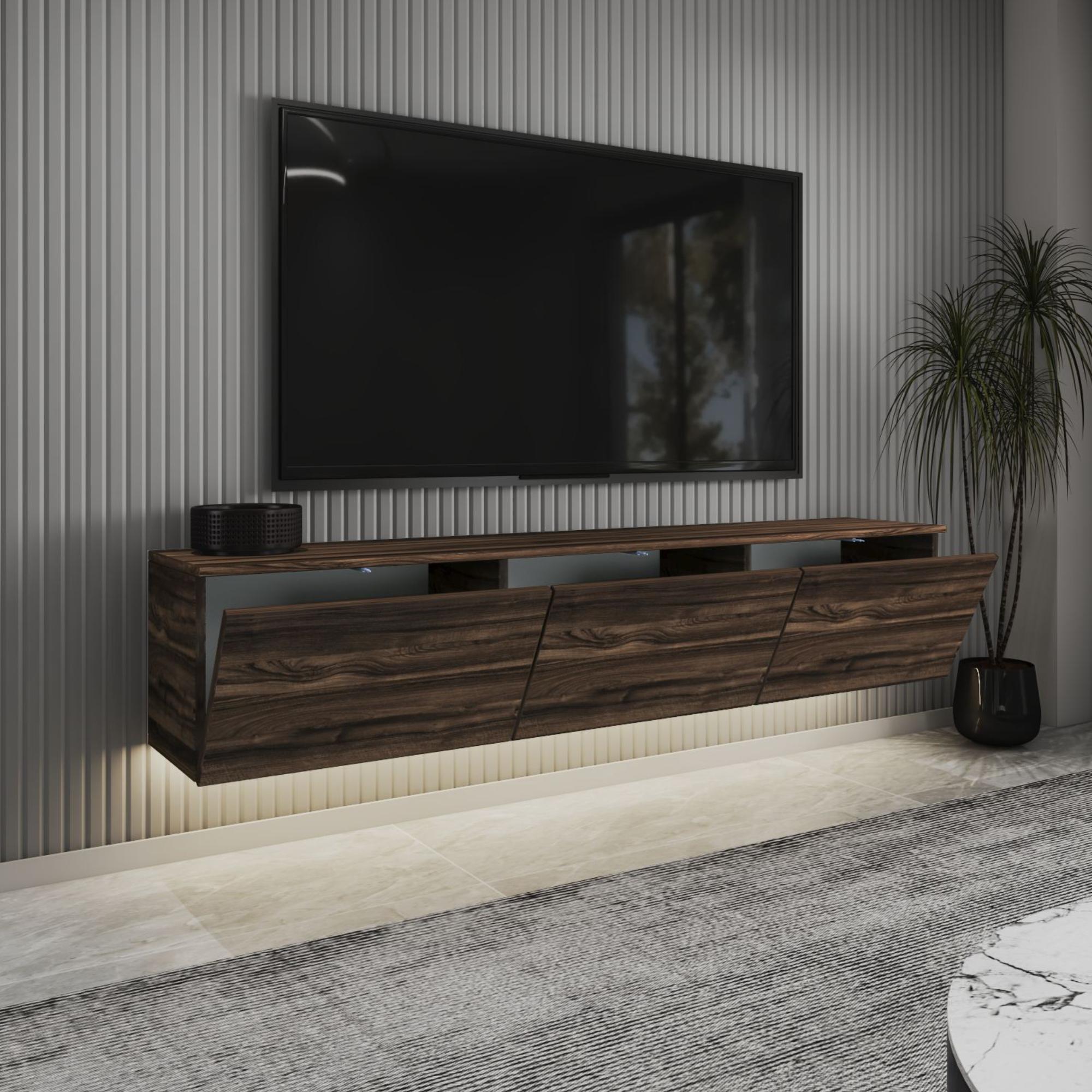 Za dvierkami komody sa nachádza dostatok odkladacieho priestoru, a tak do nej môžete uložiť nielen TV príslušenstvo, ale aj ďalšie potrebné predmety. Nechýba ani štýlové LED osvetlenie.