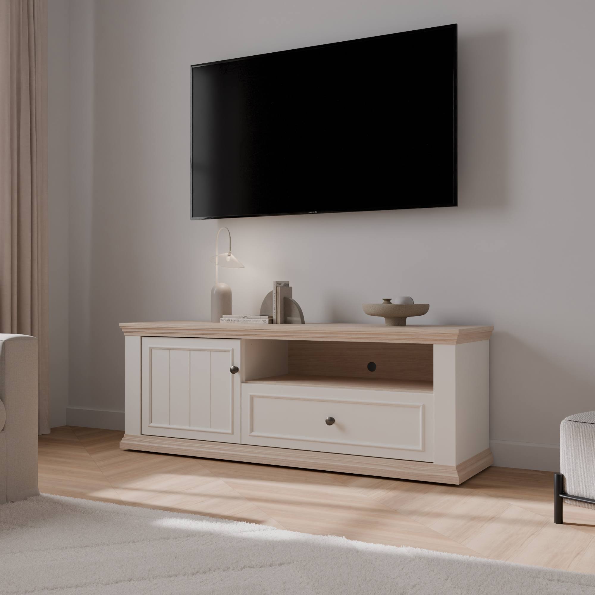 TV komoda PONTYPOOL - biela/dub riva, šírka 150 cm