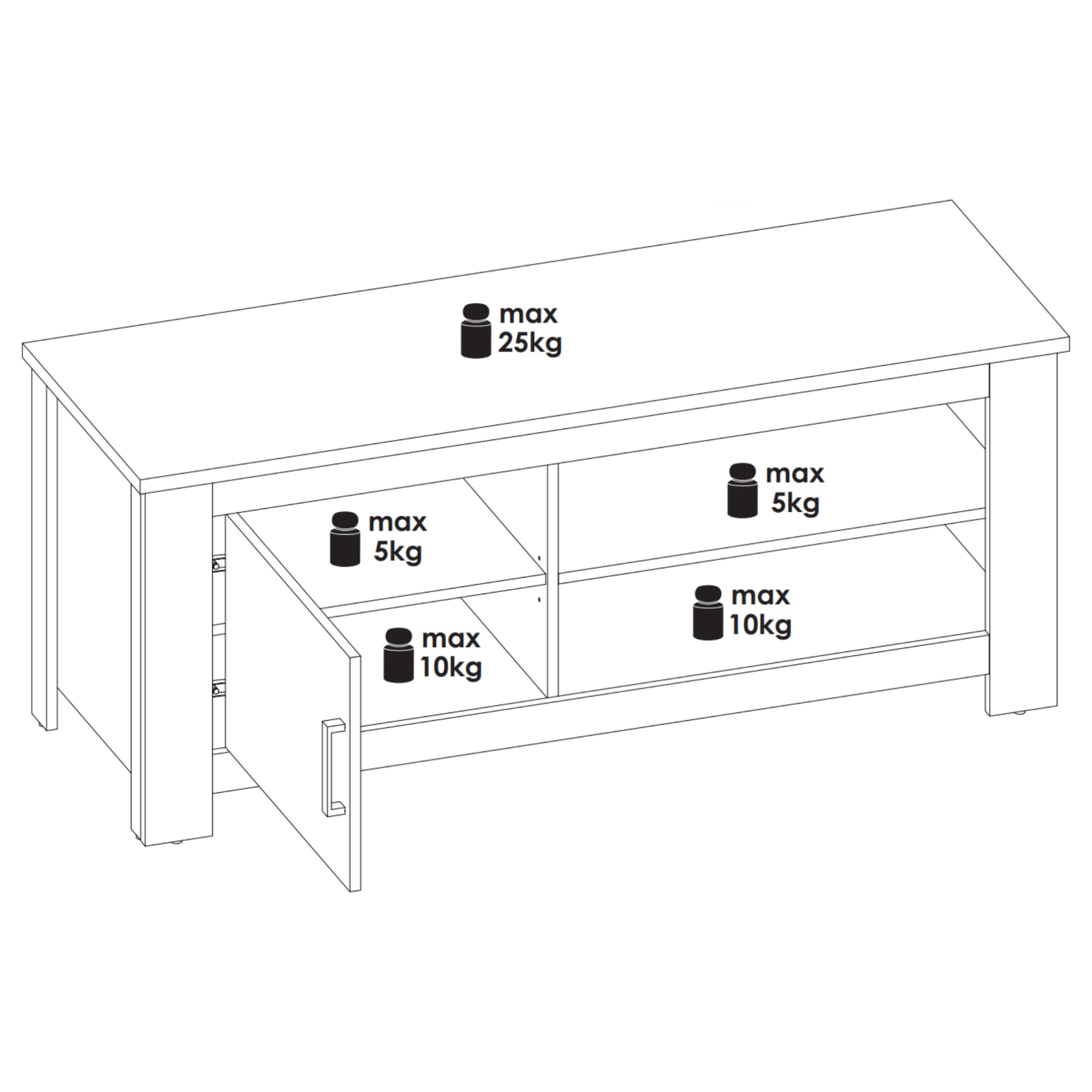 Elegantná TV komoda RAPALLO necháva vyniknúť výraznú kresbu dreva. Vďaka orámovaniu pripomína klasický drevený nábytok. Pôsobí masívnym dojmom a očarí vás svojím surovým vzhľadom. Kombinácia plných dvierok a otvoreného priestoru poskytuje dostatok miesta na multimediálne zariadenia. V kombinácii s policou môže TV komoda RAPALLO vytvoriť jednoduchú plne funkčnú zostavu, ktorá zvládne optimálne využiť aj malý priestor vašej obývačky, izby pre hostí, prípadne študentskej izby.