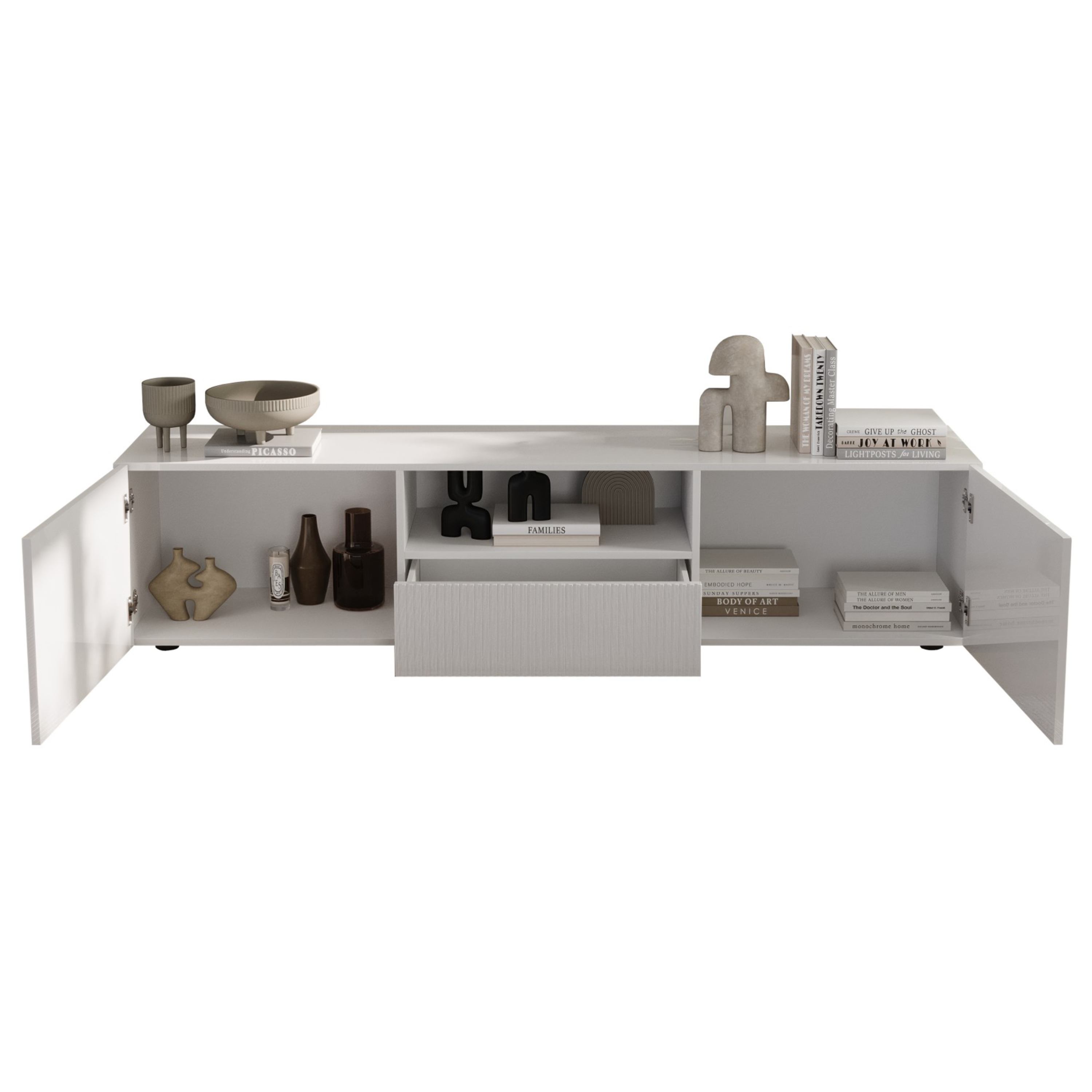Komoda je vybavená zásuvkou a priestorom za dvierkami. Otvorenú priehradku využijete na TV príslušenstvo. Vďaka tomu poskytuje dostatok úložného priestoru, ktorý určite využijete vo vašej domácnosti. Komoda sa vyznačuje jednoduchou údržbou.