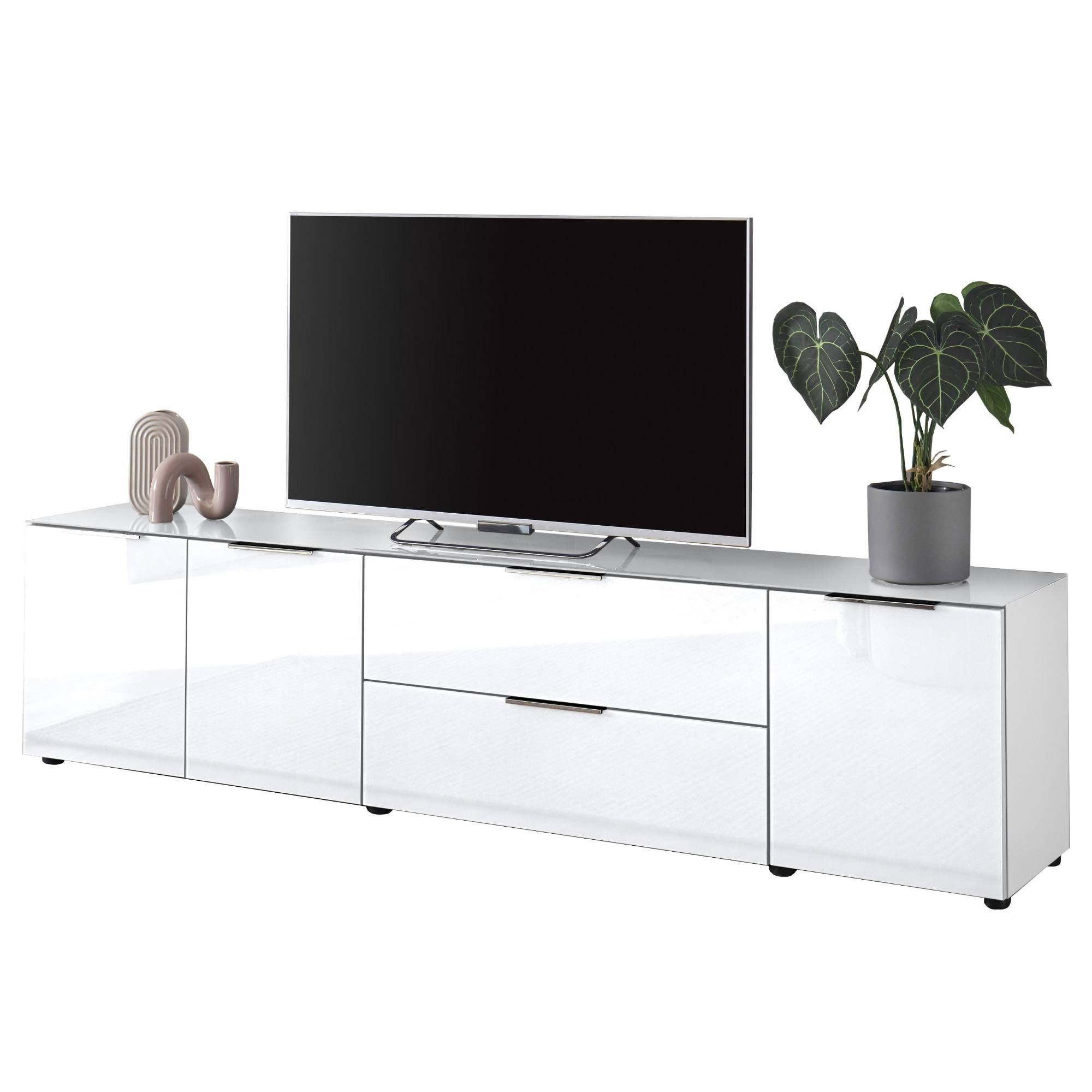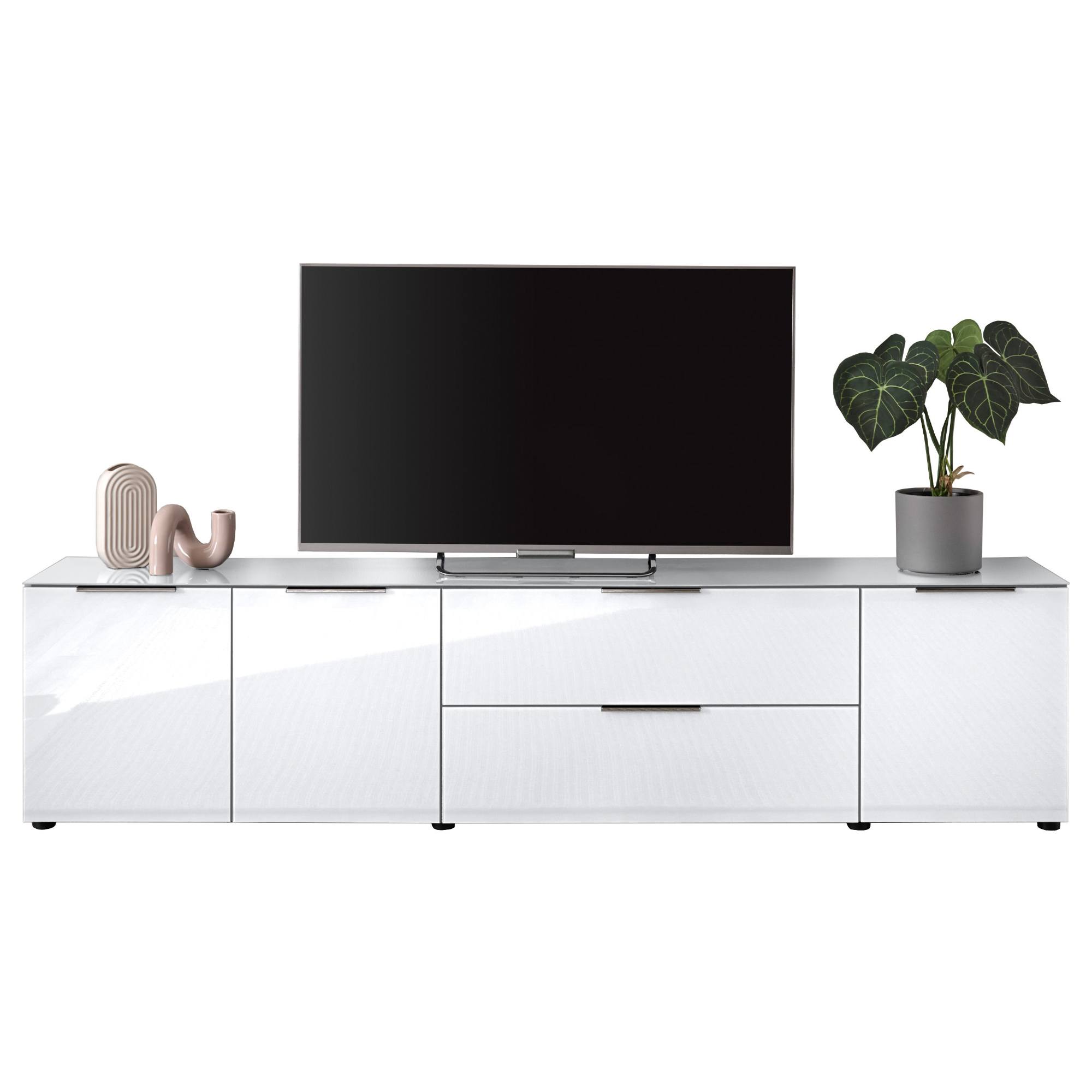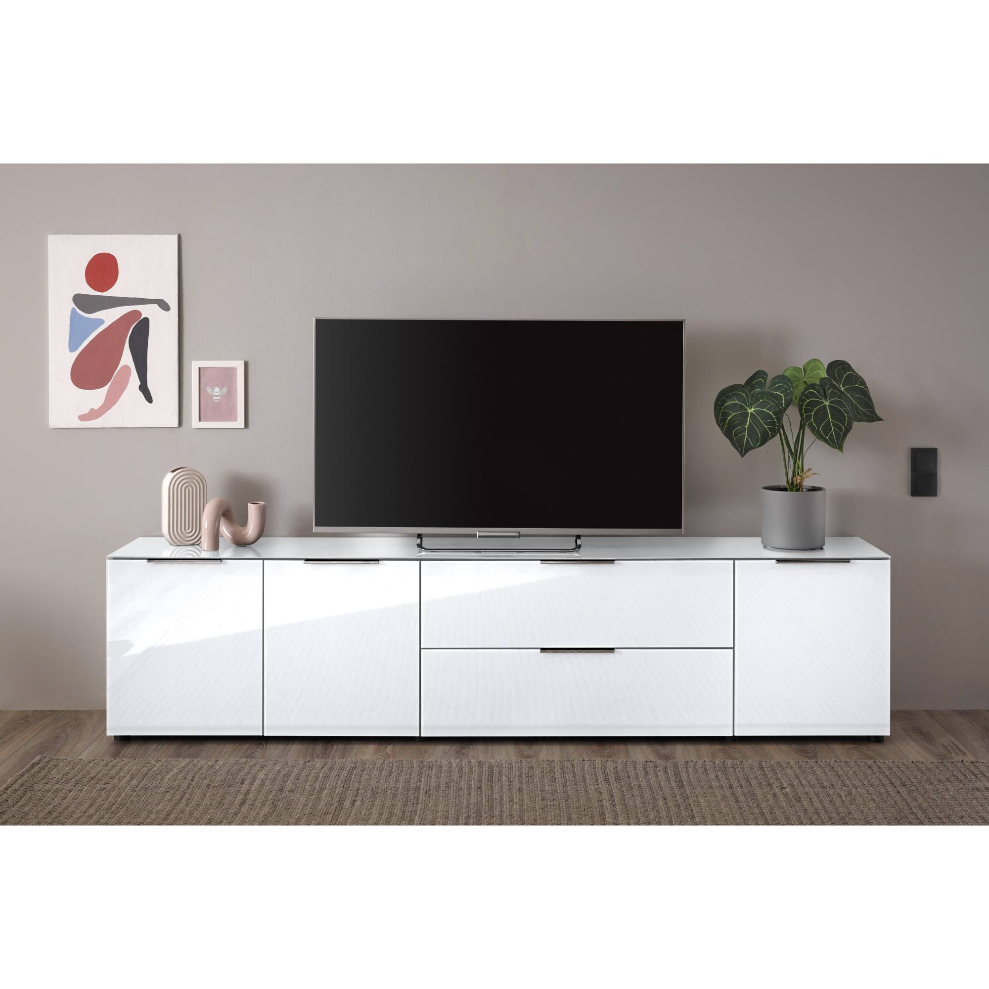 TV komoda SANTORIN 7 kombinuje moderný dizajn a praktickosť. Sklenené vyhotovenie predných častí a hornej dosky ozvláštni vašu domácnosť a dodá jej atraktívny nádych. Je ideálnym kusom nábytku do moderne ladených interiérov.