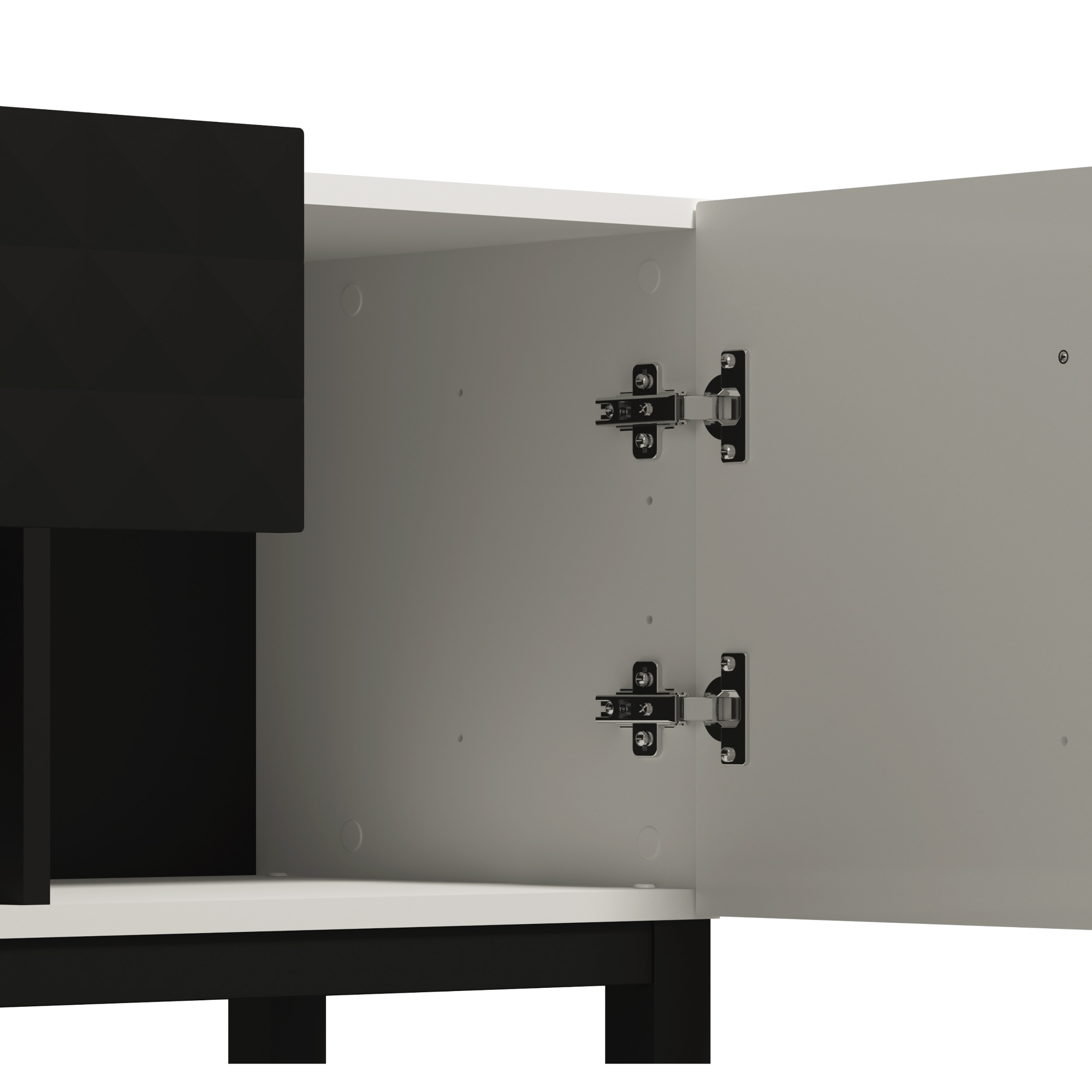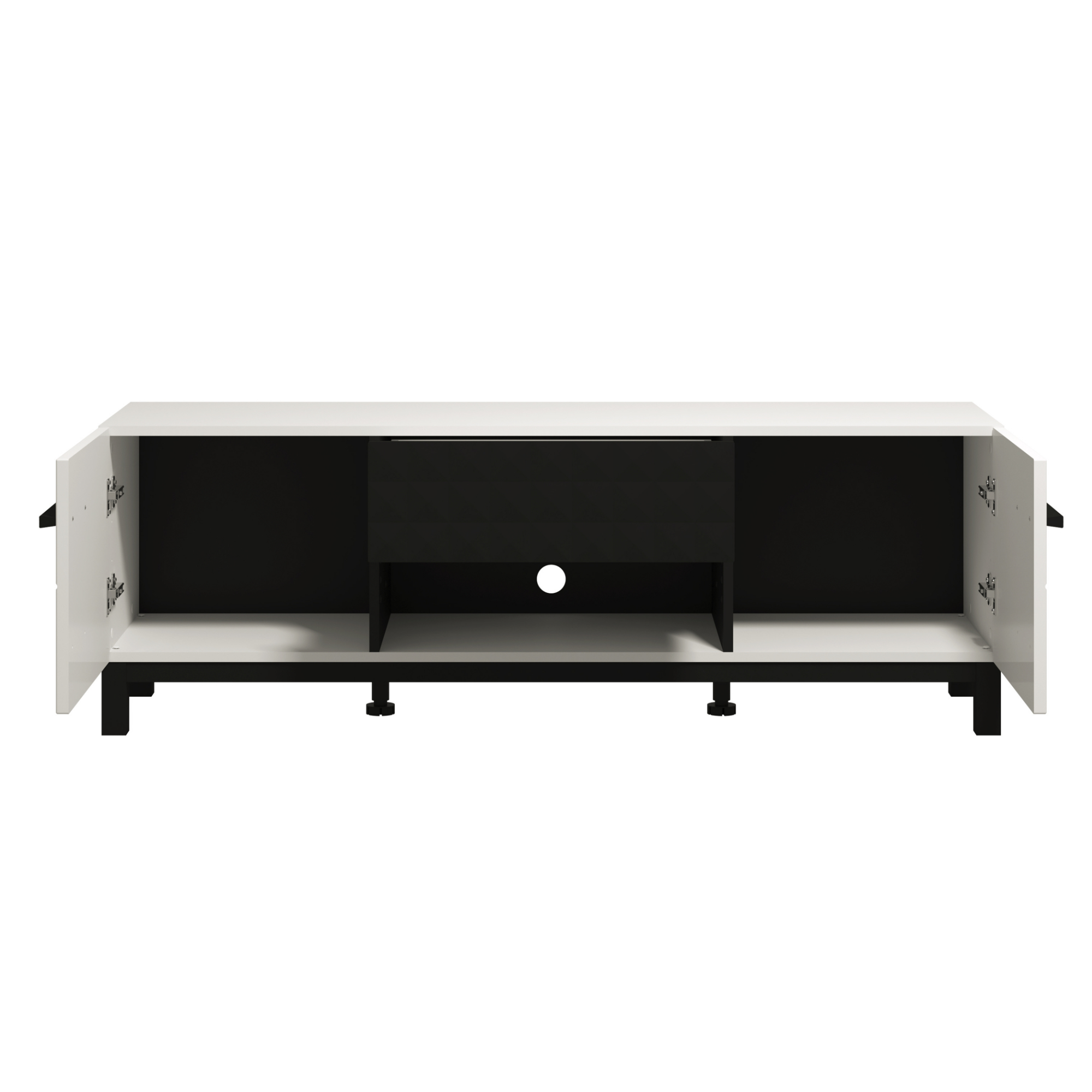 Kombinácia bielej a čiernej fólie sa bude vynímať v moderne zariadenej domácnosti. Vďaka dvom priestorom za dvierkami a jednou zásuvkou budete mať vždy prehľad o vašich uložených veciach. Do otvorenej priehradky zase môžete uložiť vaše TV príslušenstvo.