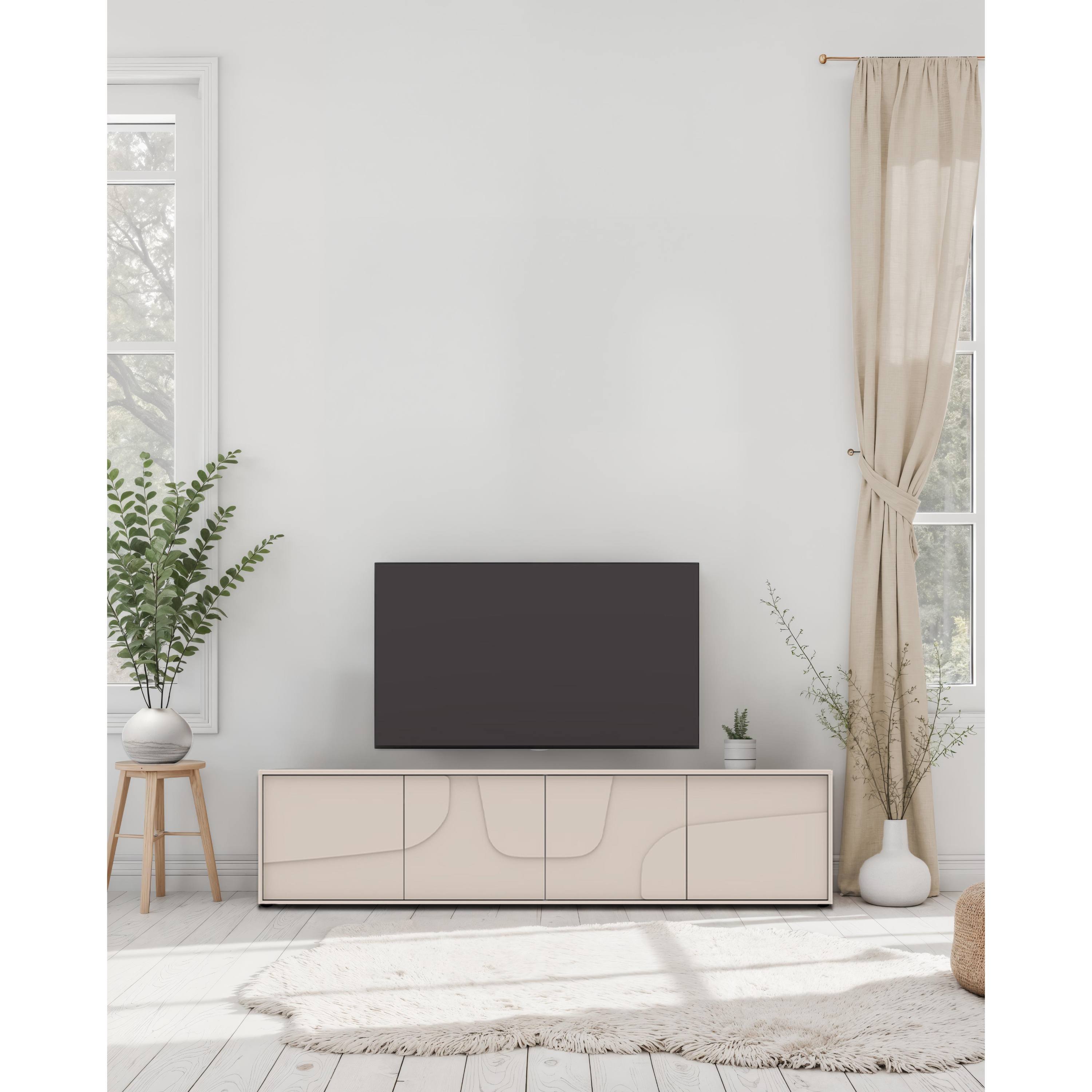 TV komoda STONE 4DV s minimalistickými prvkami perfektne zapadne do každej modernej domácnosti.