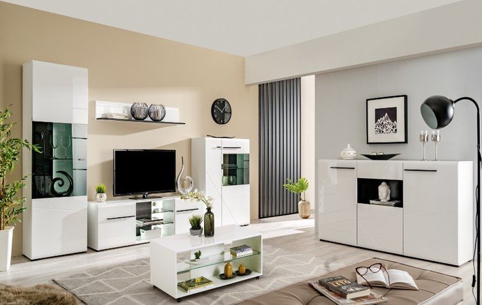 TV komoda TRENTINO - biela/biela vysoký lesk